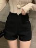 Pantalones cortos elásticos negros de moda para mujer, de pierna ancha, cintura alta, corte A, ajustados, adelgazantes, para verano de 2023
