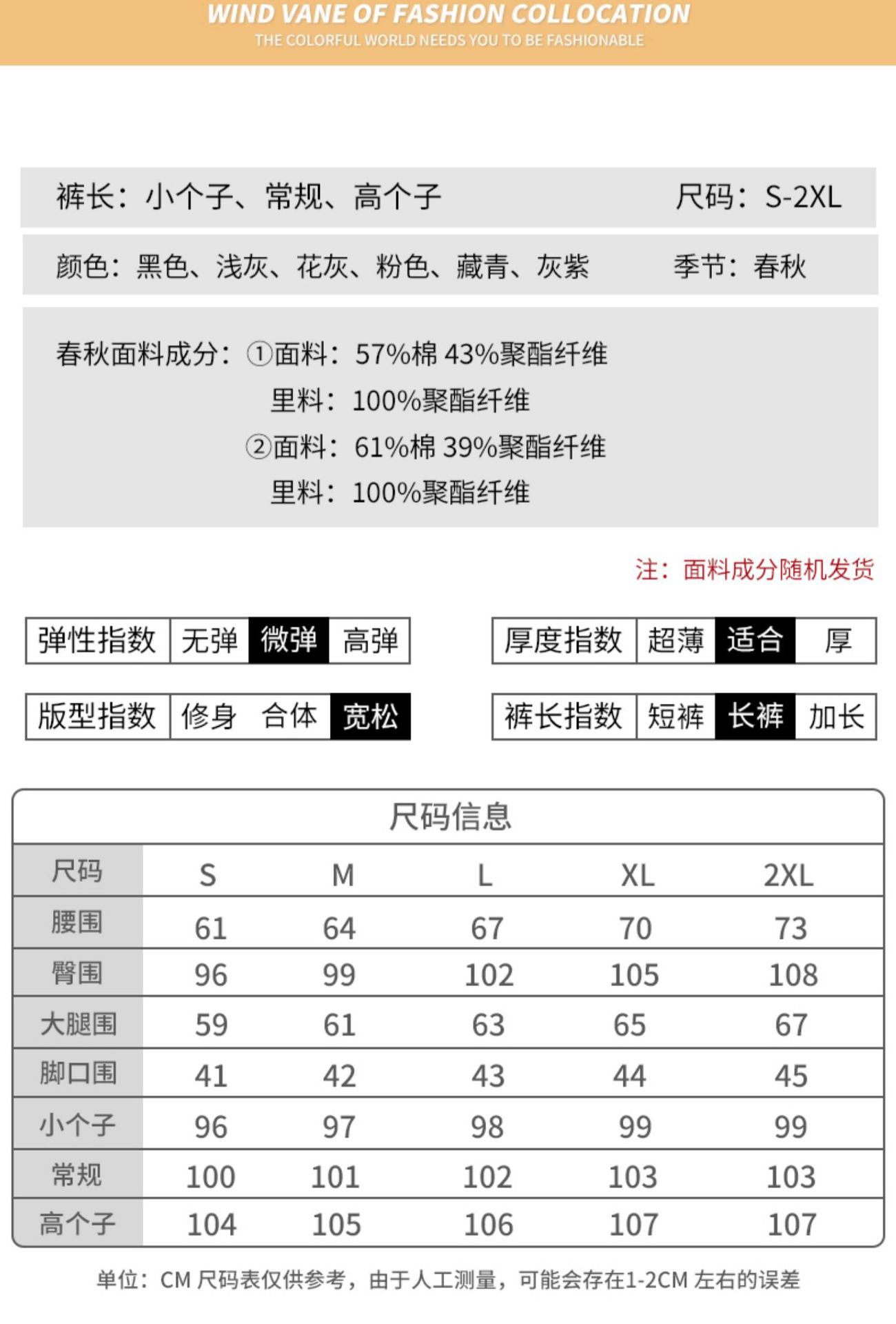 S, M, L, XL, 2XL