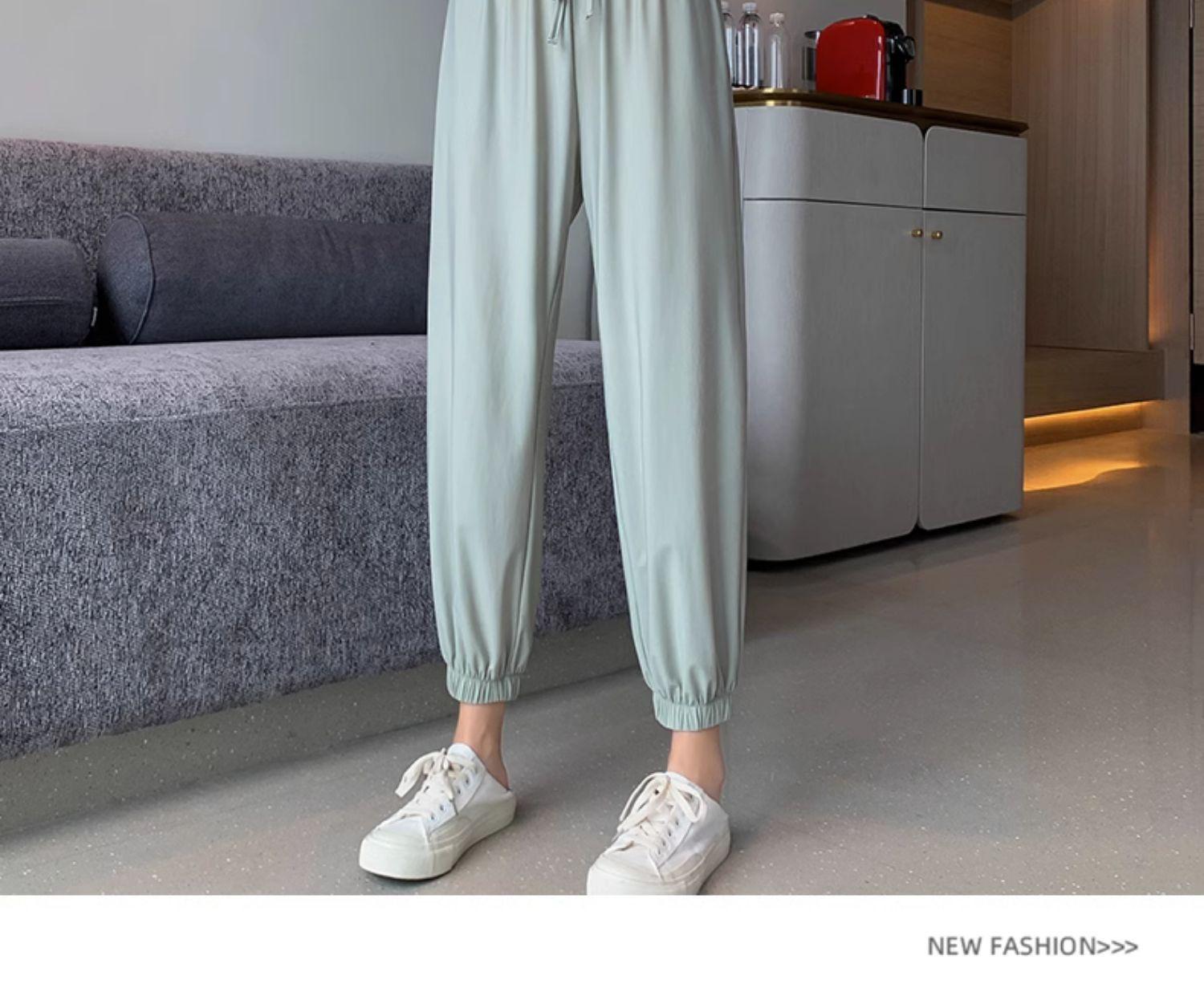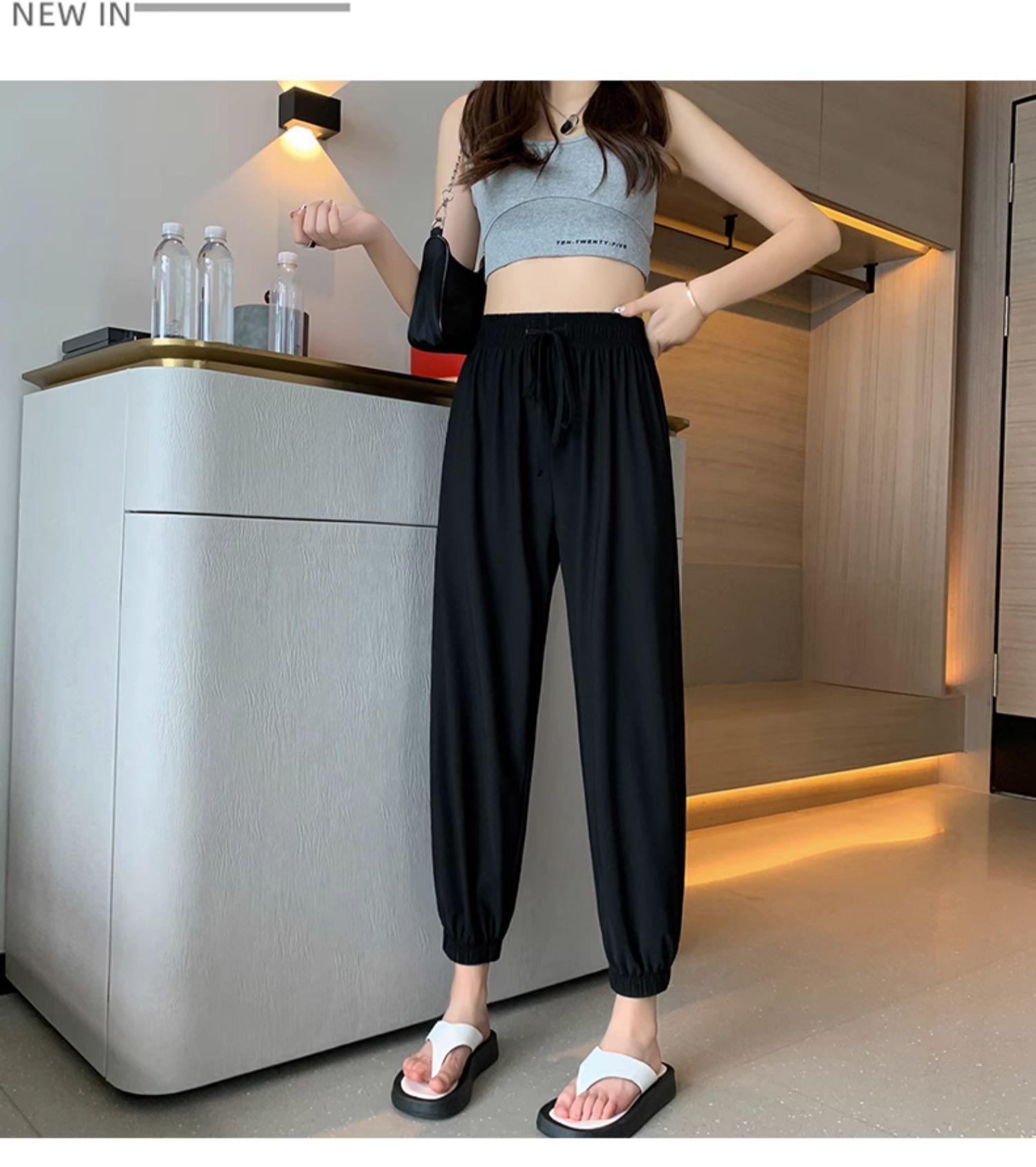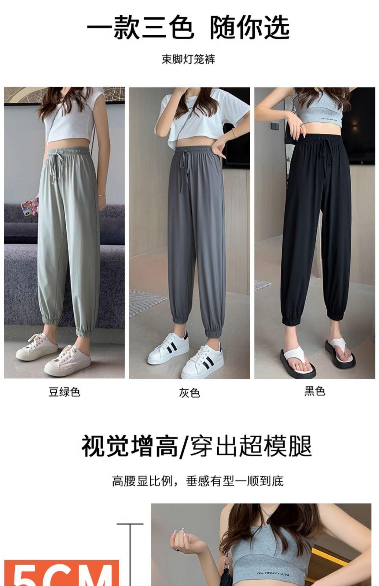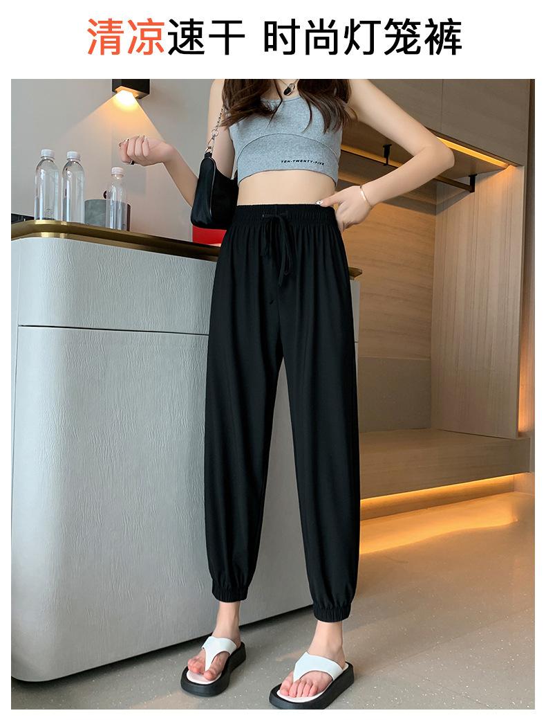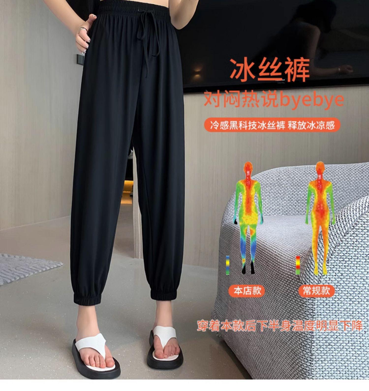 Pantalones deportivos casuales finos de verano con protección solar para mujer, pantalones deportivos tipo farol de seda helada de nueve puntos, pantalones holgados adelgazantes frescos de secado rápido