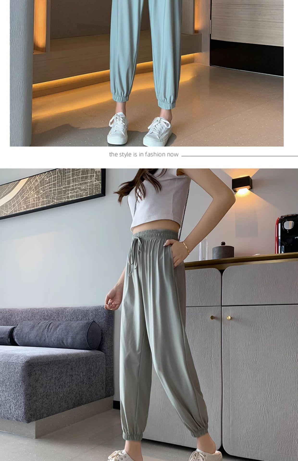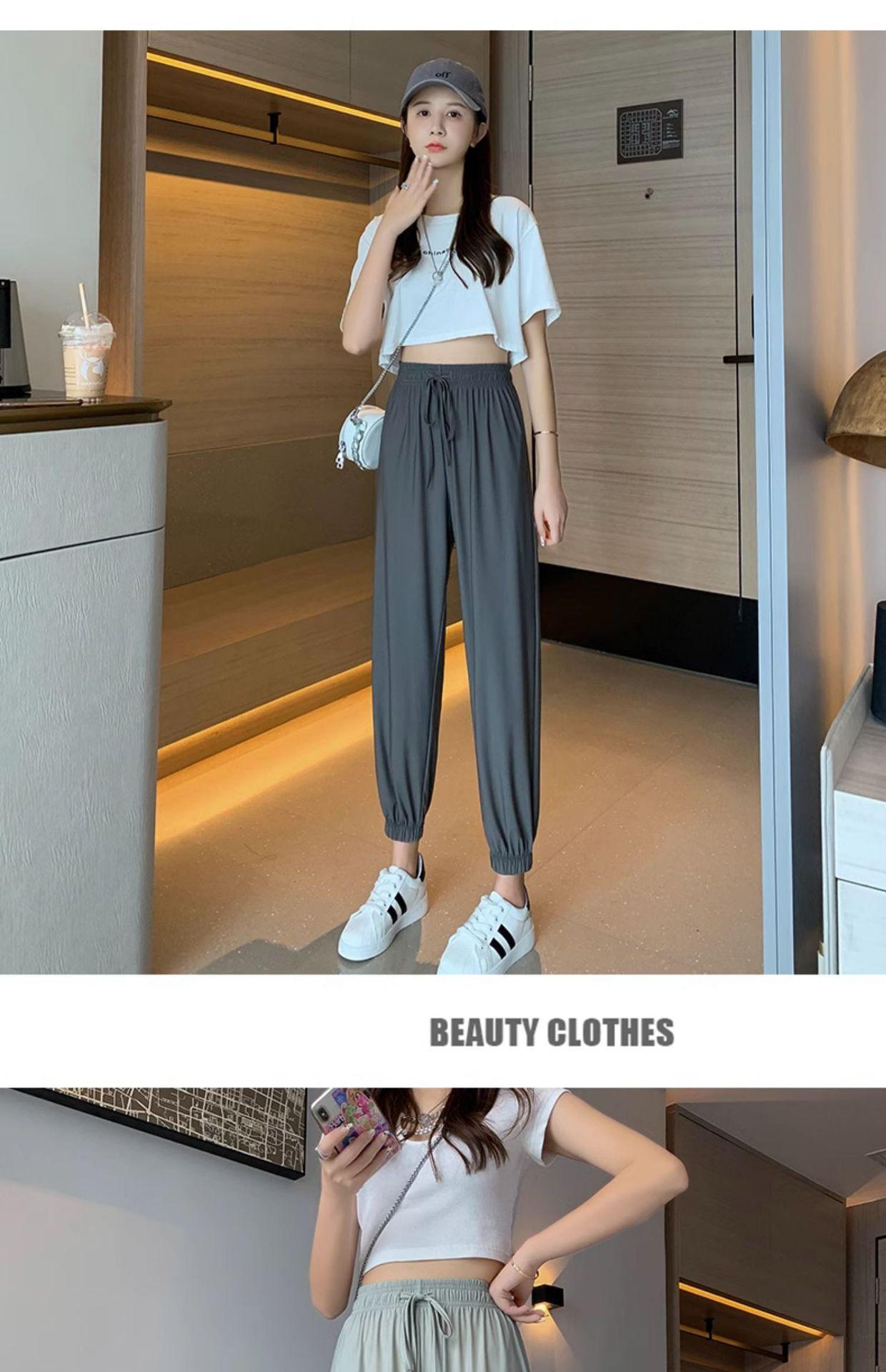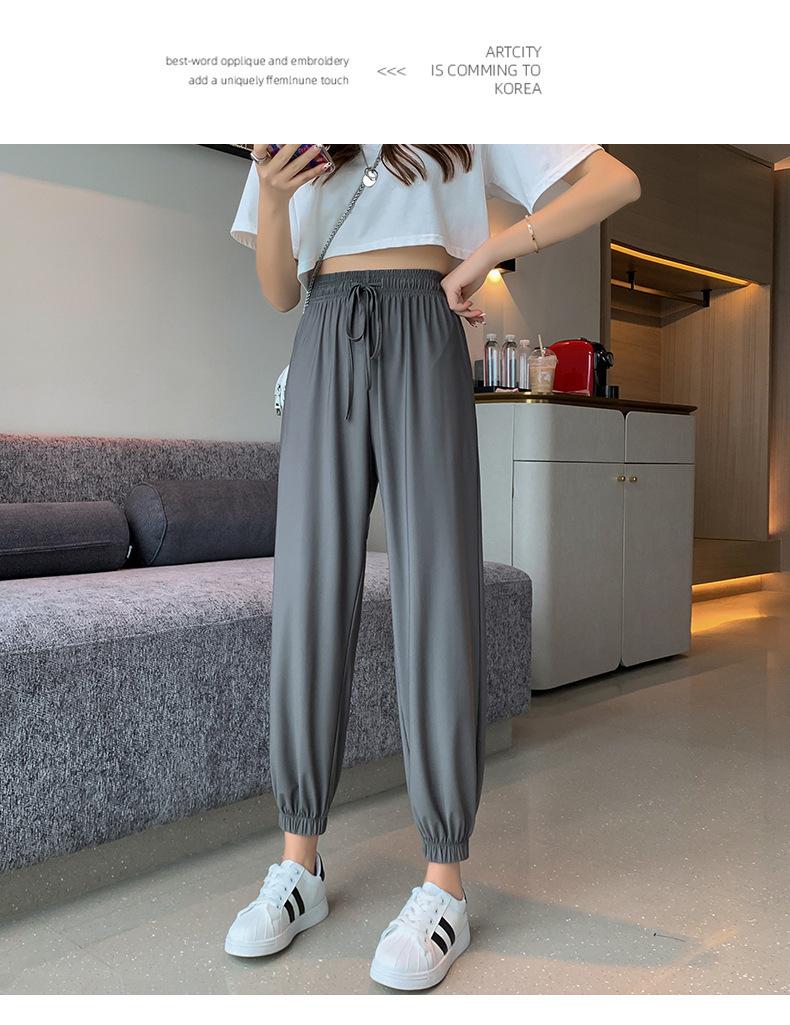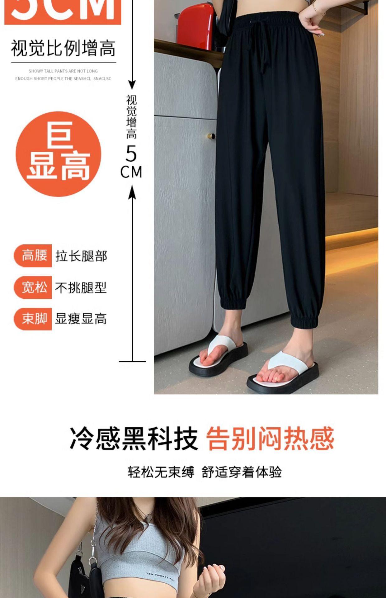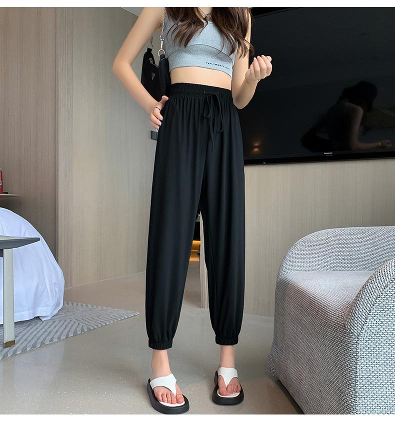 Pantalones deportivos casuales finos de verano con protección solar para mujer, pantalones deportivos tipo farol de seda helada de nueve puntos, pantalones holgados adelgazantes frescos de secado rápido
