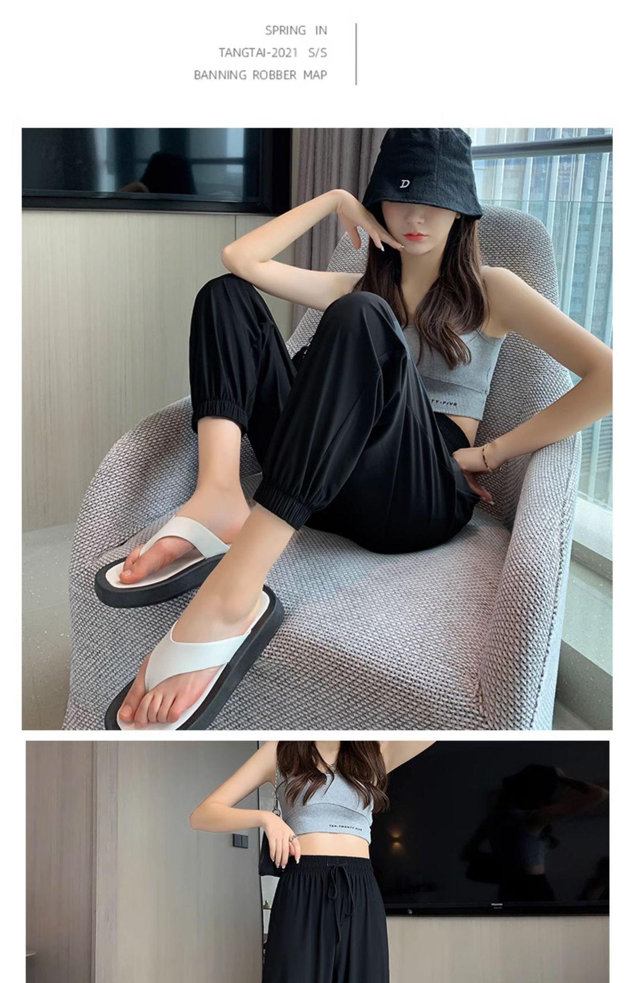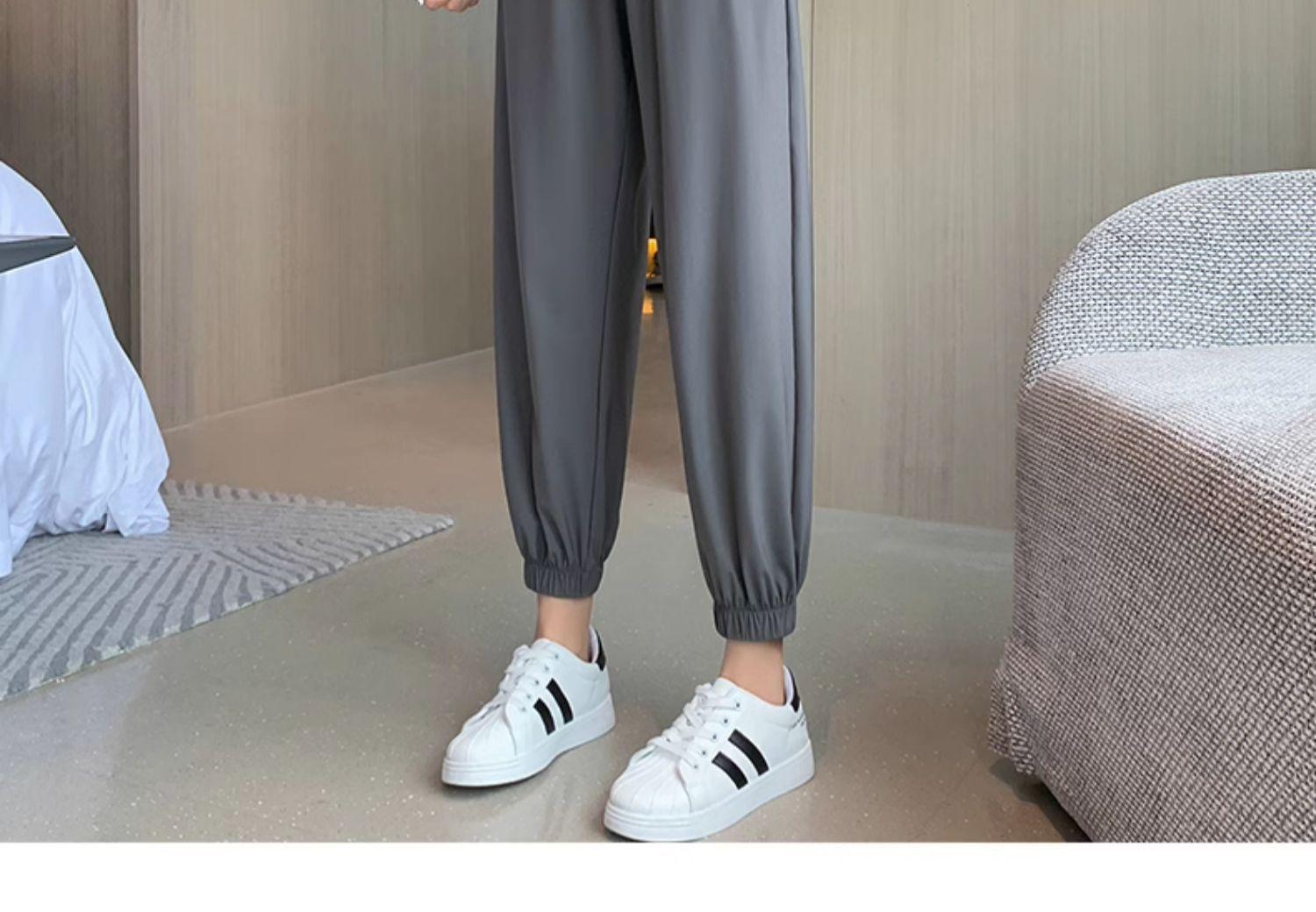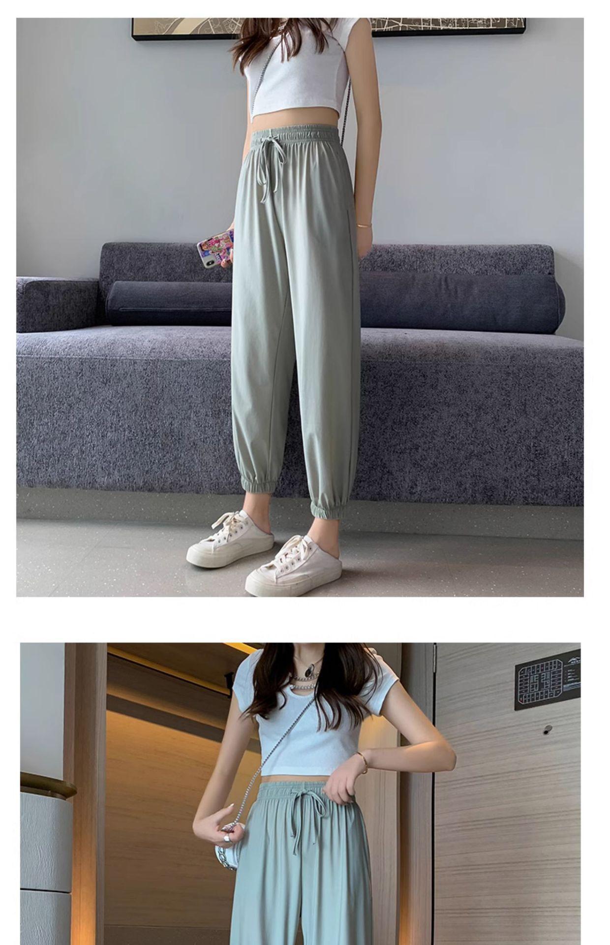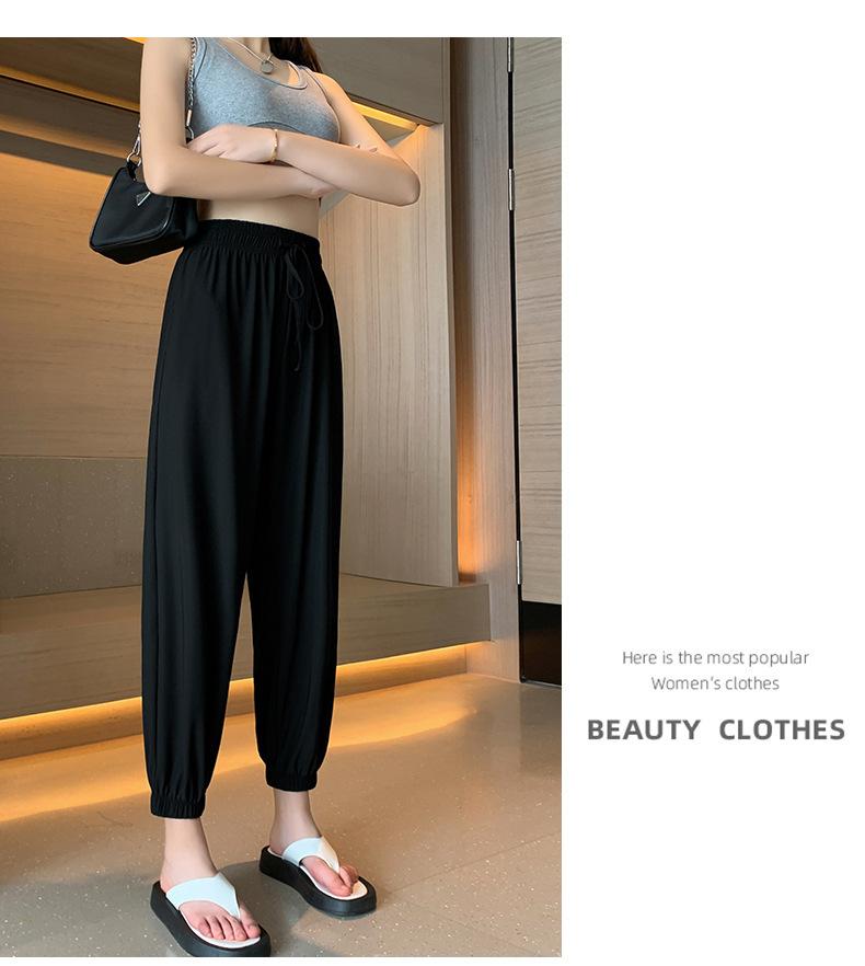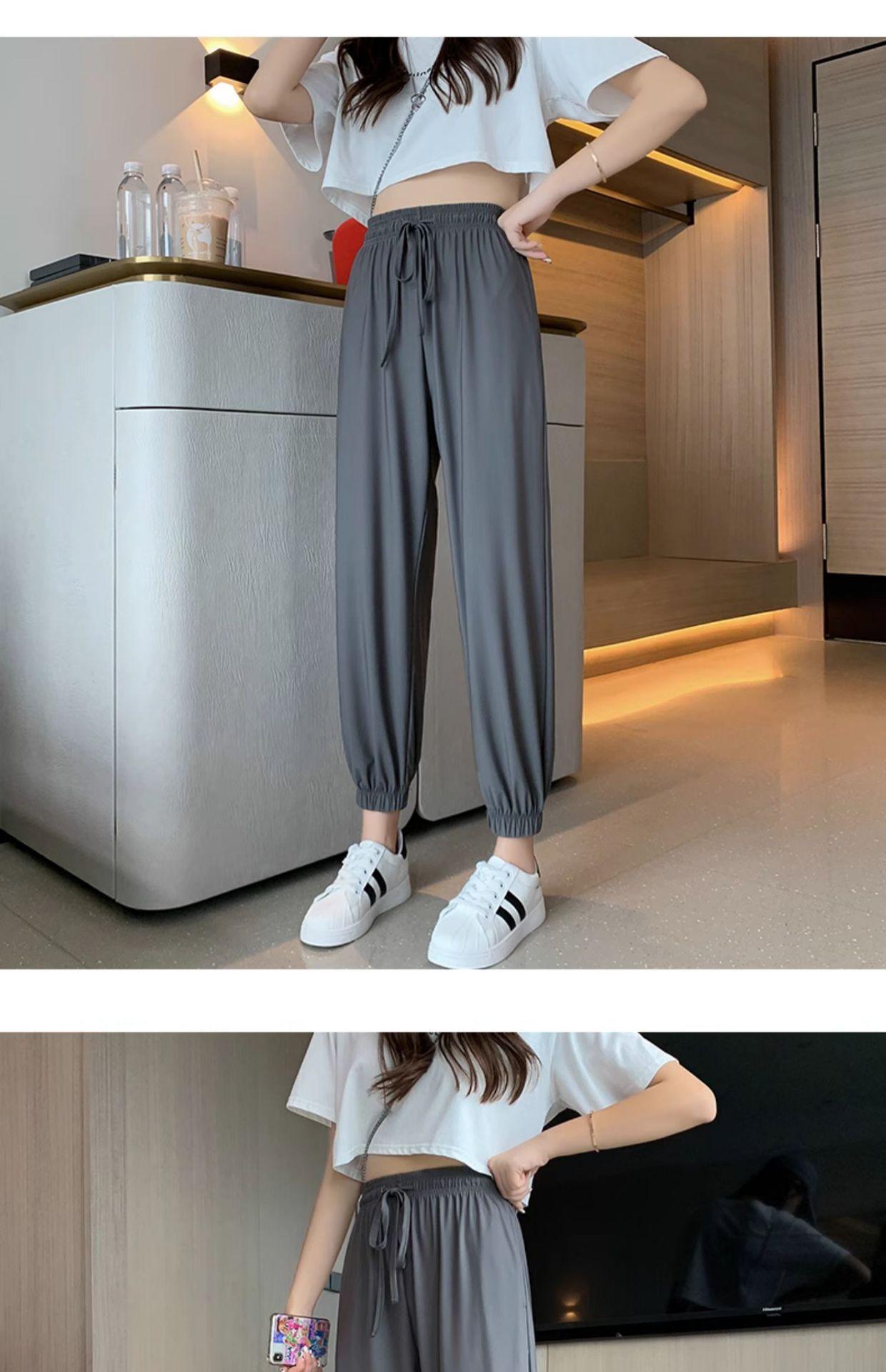 Pantalones deportivos casuales finos de verano con protección solar para mujer, pantalones deportivos tipo farol de seda helada de nueve puntos, pantalones holgados adelgazantes frescos de secado rápido