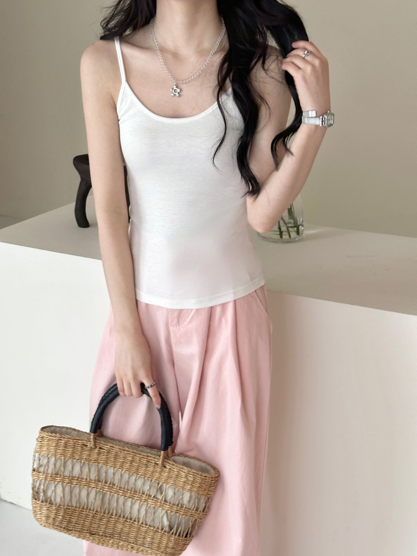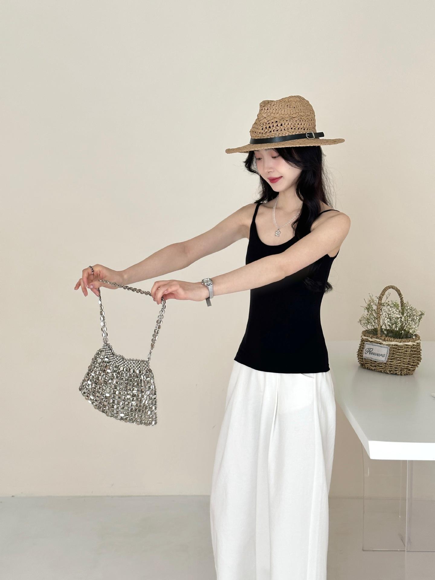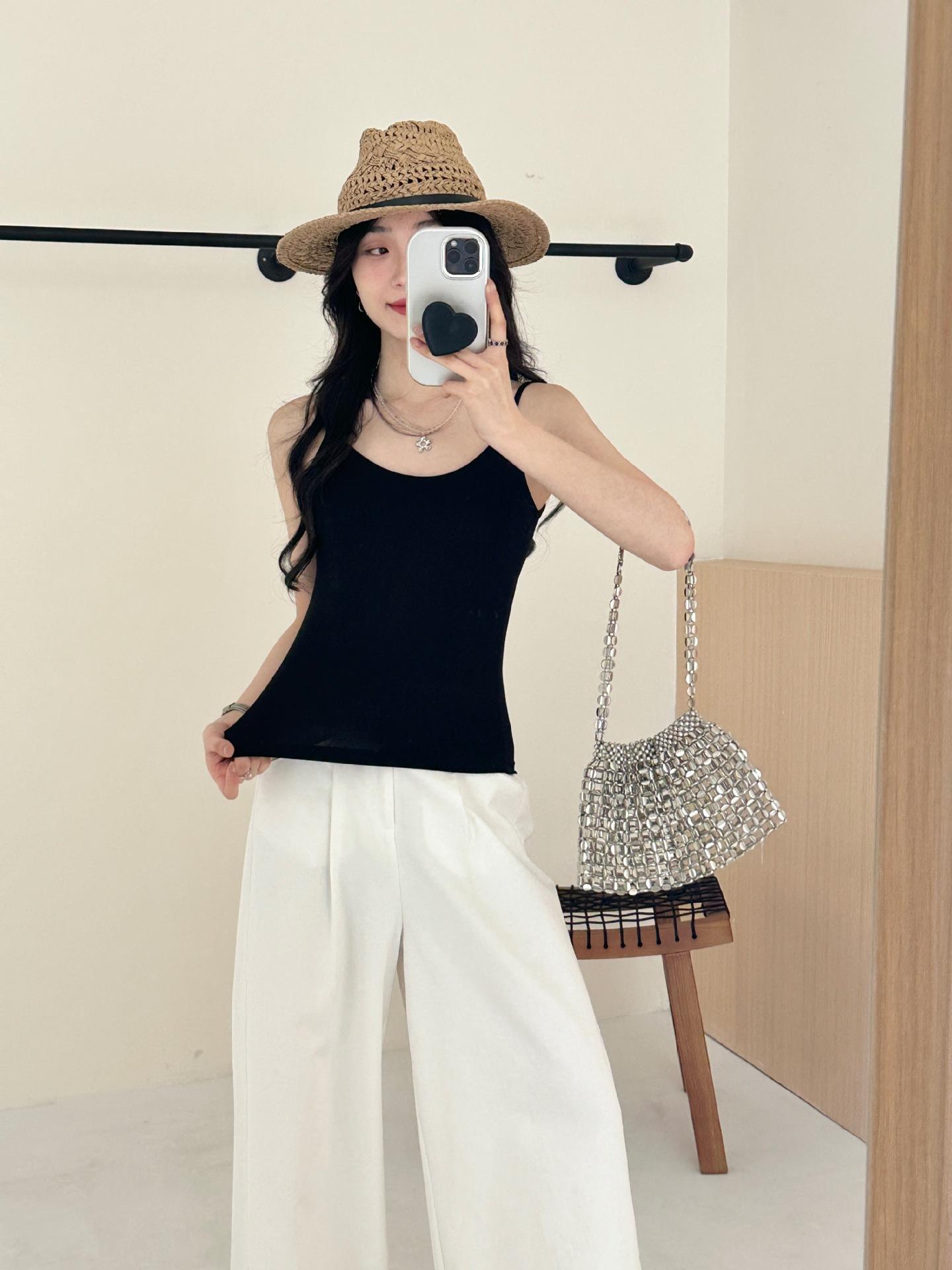Camisola pequeña para mujer, prenda exterior básica, sin mangas, parte superior elástica alta, combinable, sexy, en blanco y negro, sin tirantes, ropa interior para estudiantes.