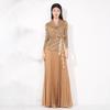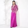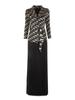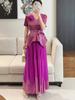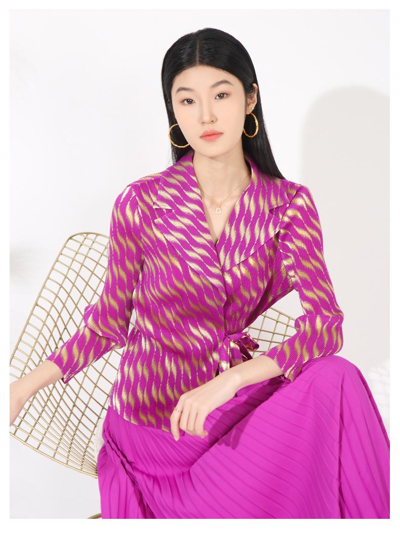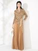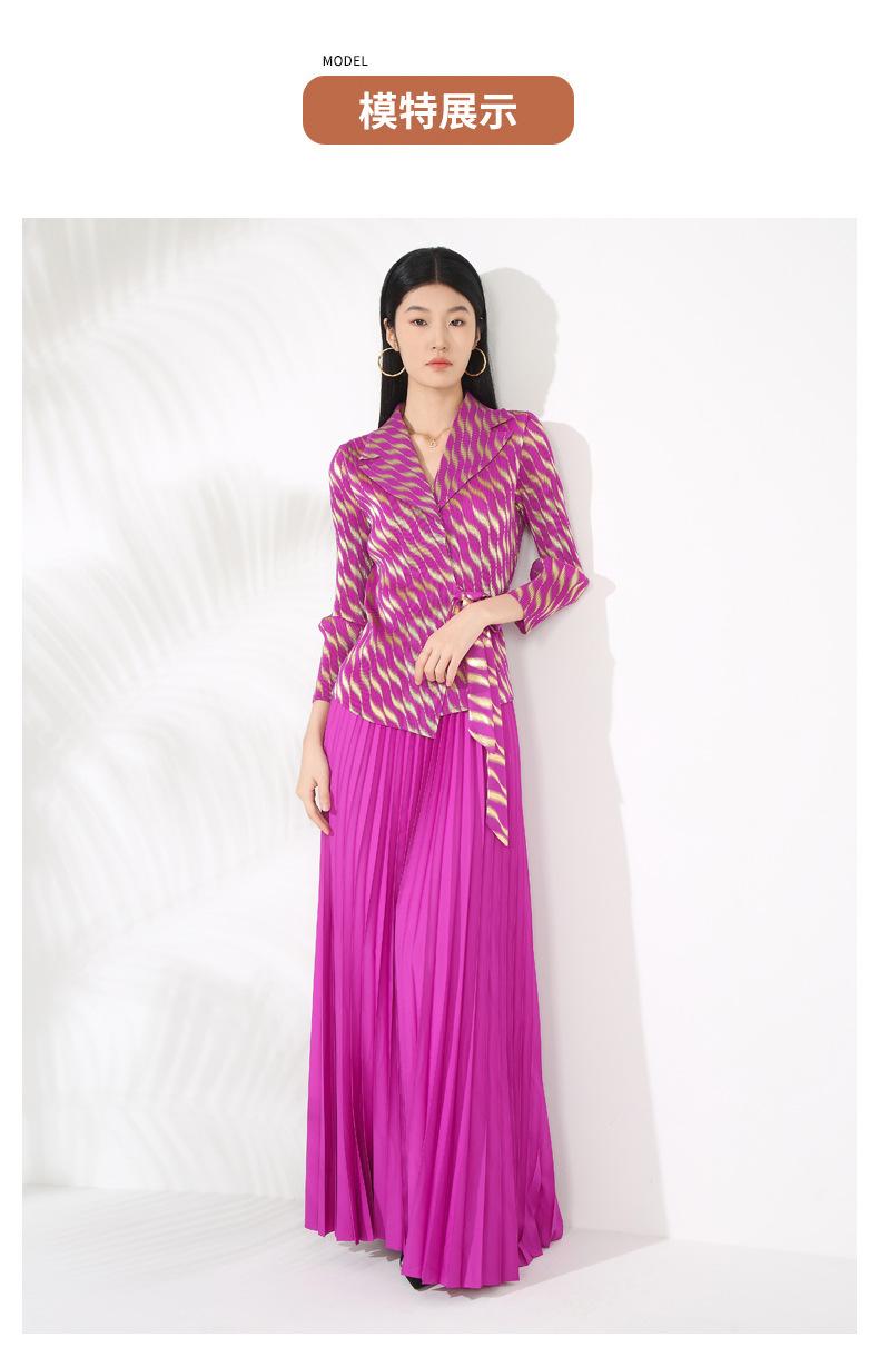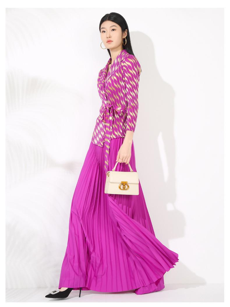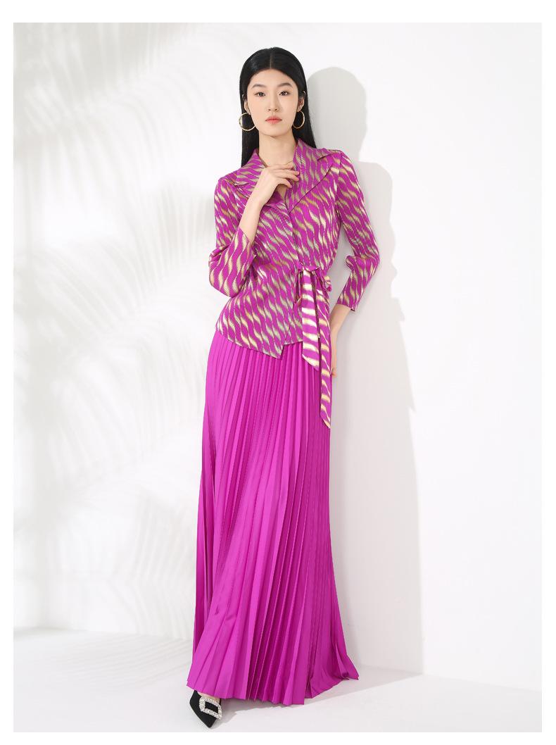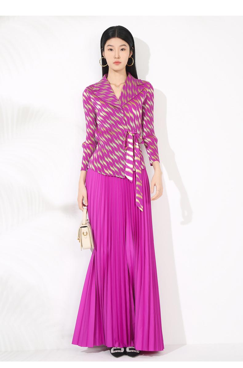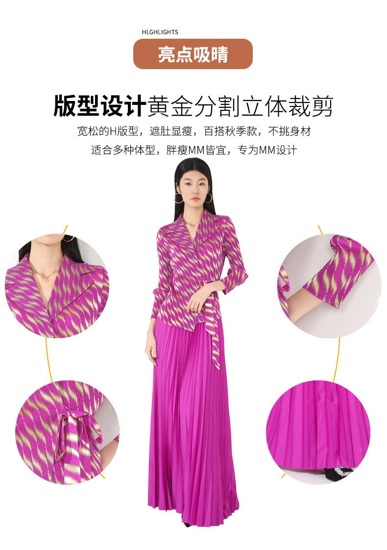 Traje plisado de temperamento de alta gama para mujer, moda, traje con cuello dorado, abrigo de manga larga, falda larga de talle alto, conjunto de dos piezas