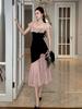 Vestido de hoja de loto con escote en V y cintura de color sólido para mujer transfronteriza de 2022 para Europa y Estados Unidos.