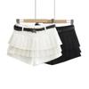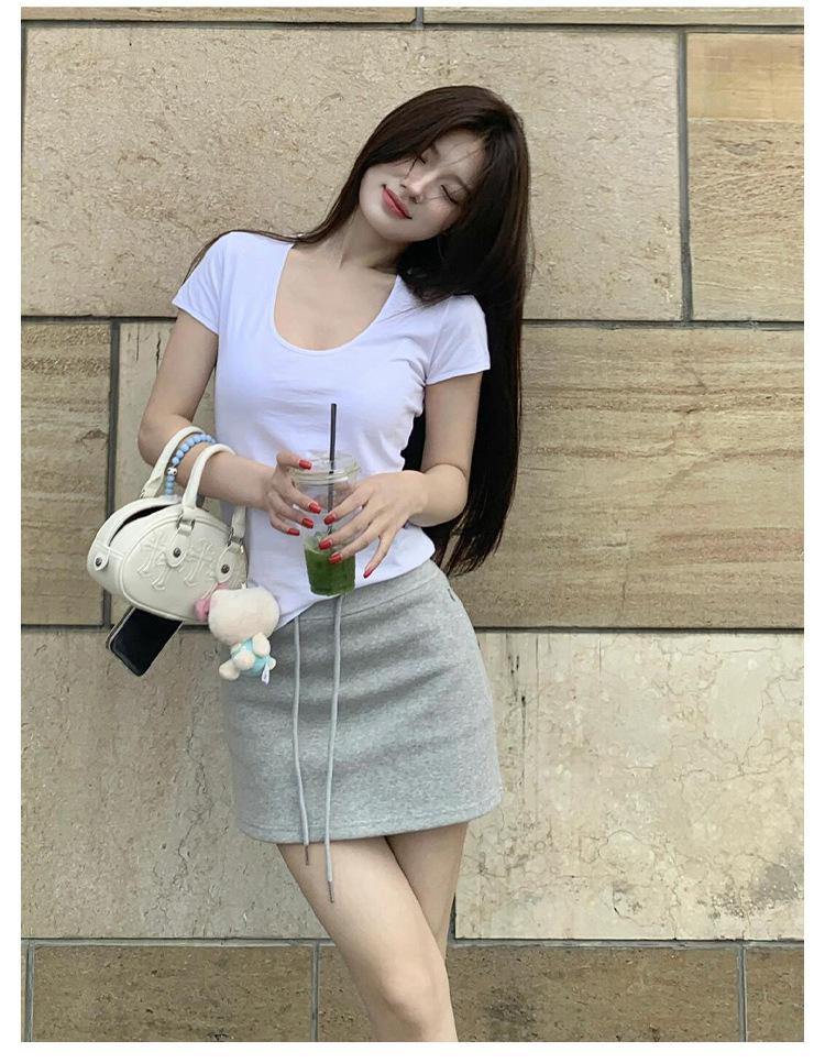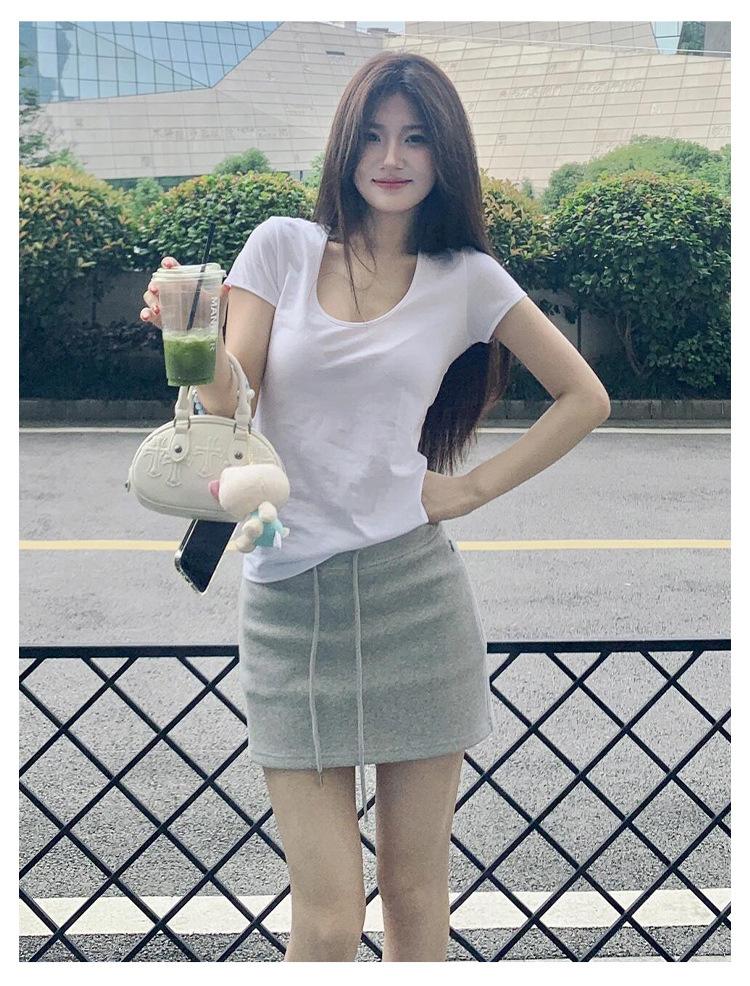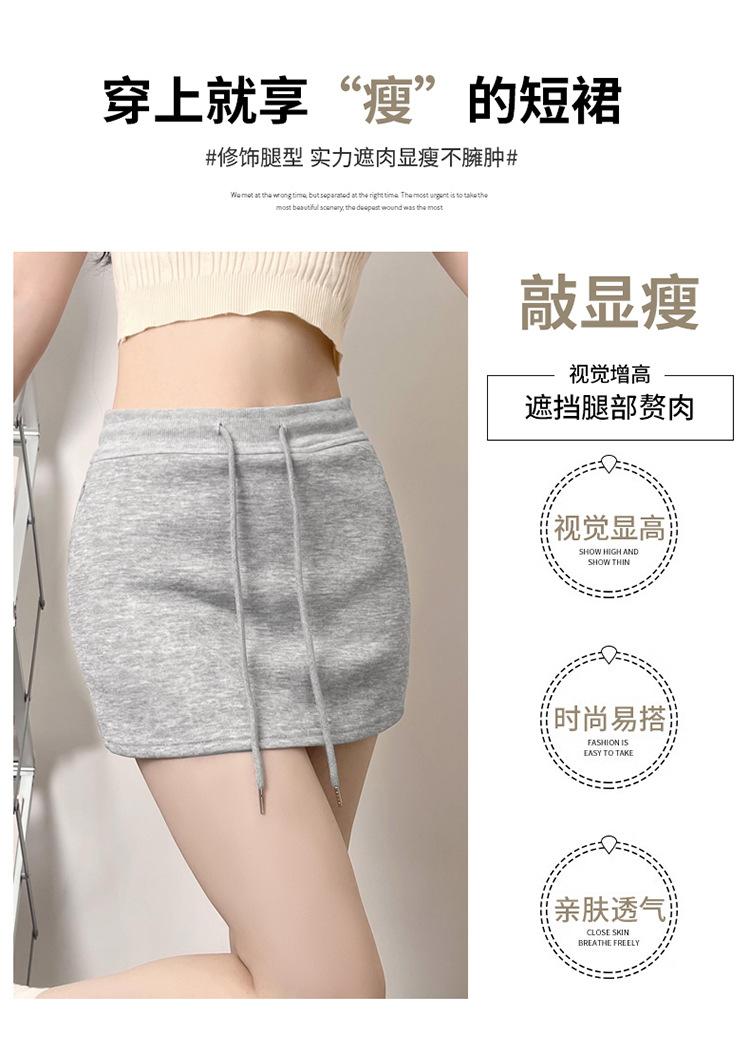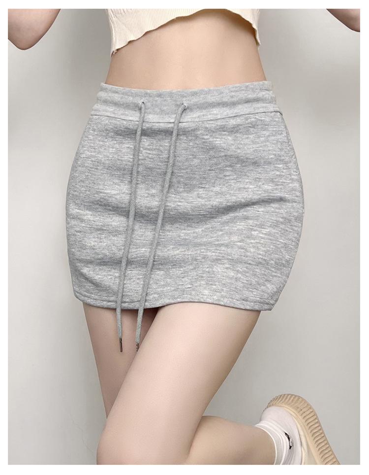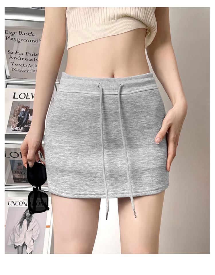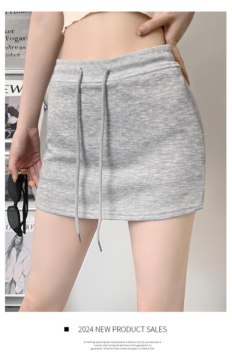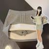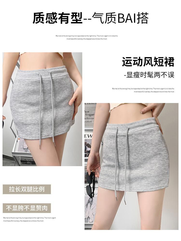 Falda deportiva gris de media longitud para mujer, primavera y otoño, verano, cintura alta, antideslumbrante, pequeña, línea A, pantalones, falda cruzada en la cadera