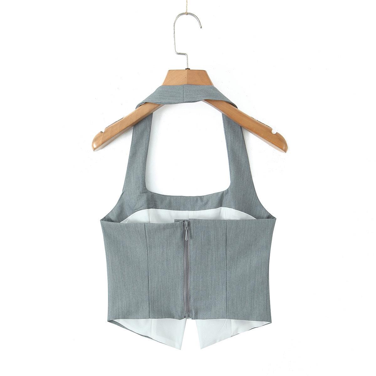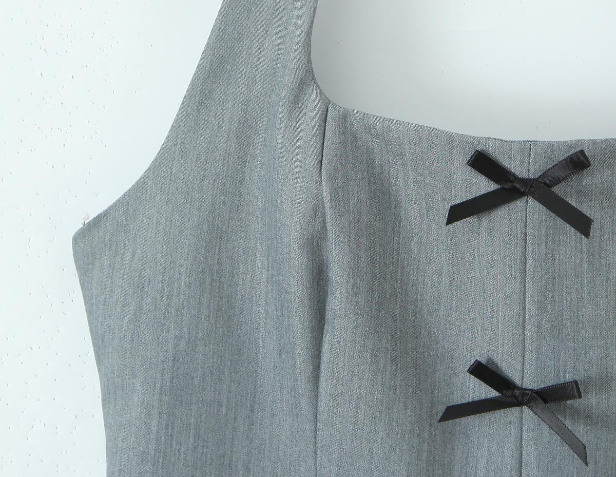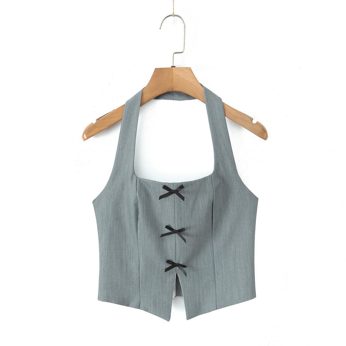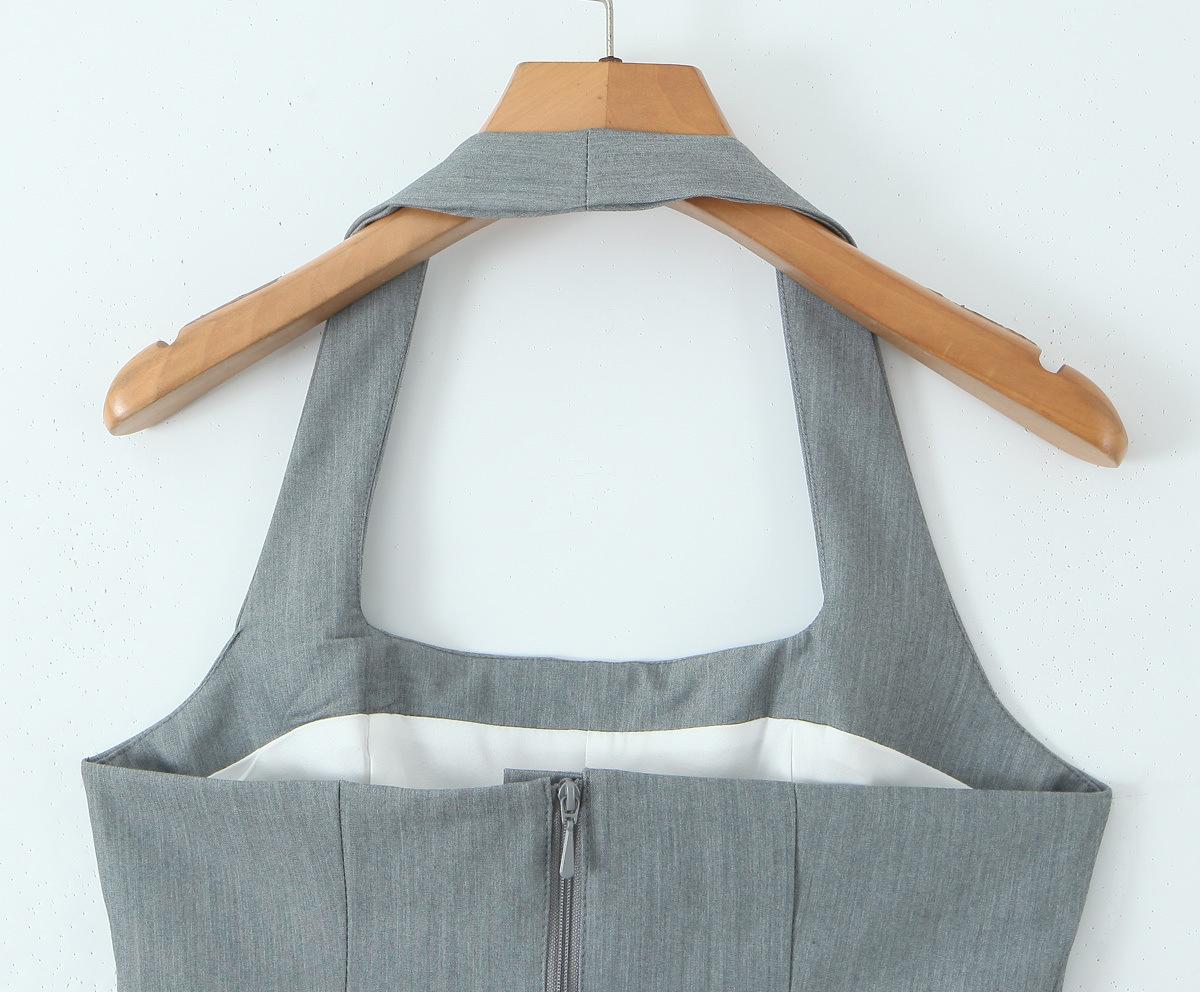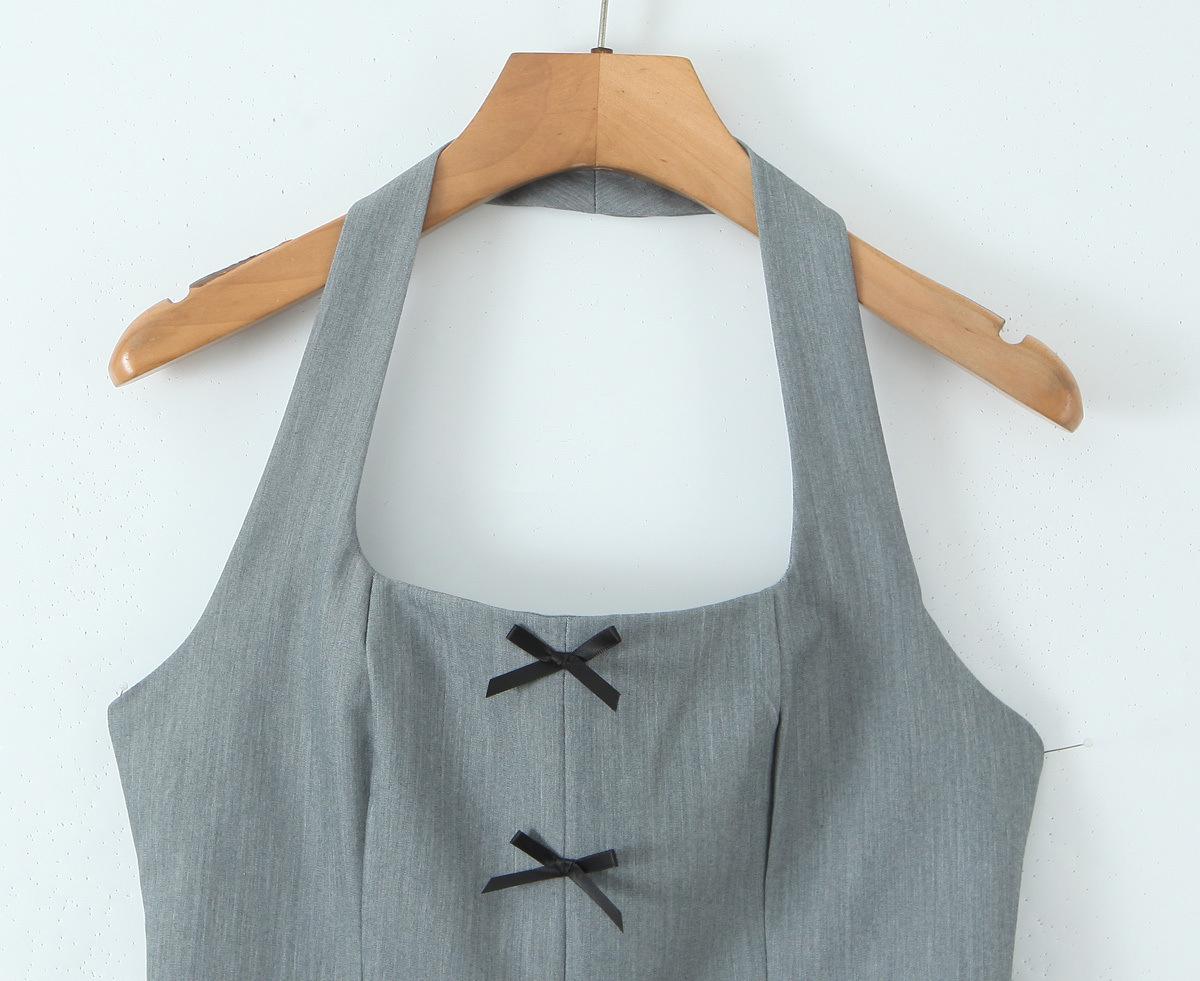 8087-25 Primavera Nuevo Estilo Europeo y Americano Chica Sexy Ajustado Lazo Halter Cuello Camisola Falda Traje