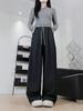 Pantalones de pierna ancha de seda de hielo negra para mujer, nuevo estilo Primavera/Verano 2026, dobladillo curvo drapeado, pantalones deportivos petite, pantalones de secado rápido para caminar