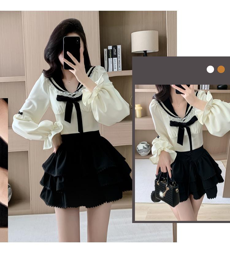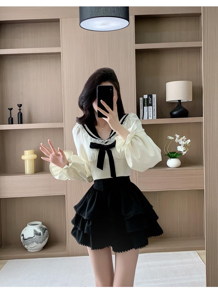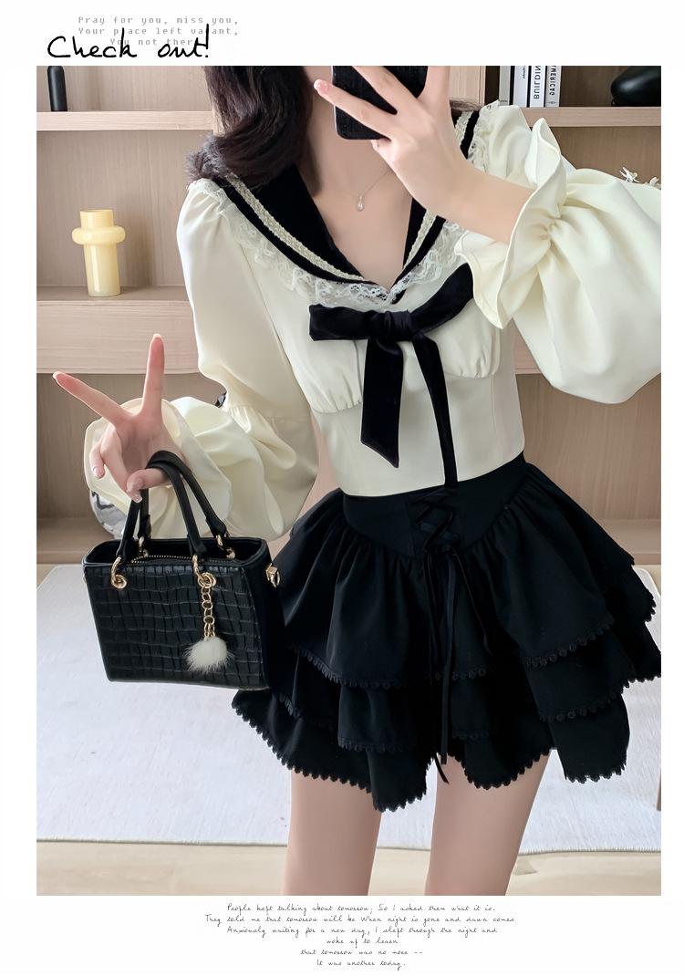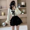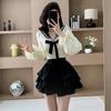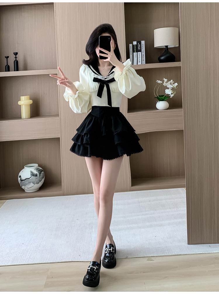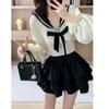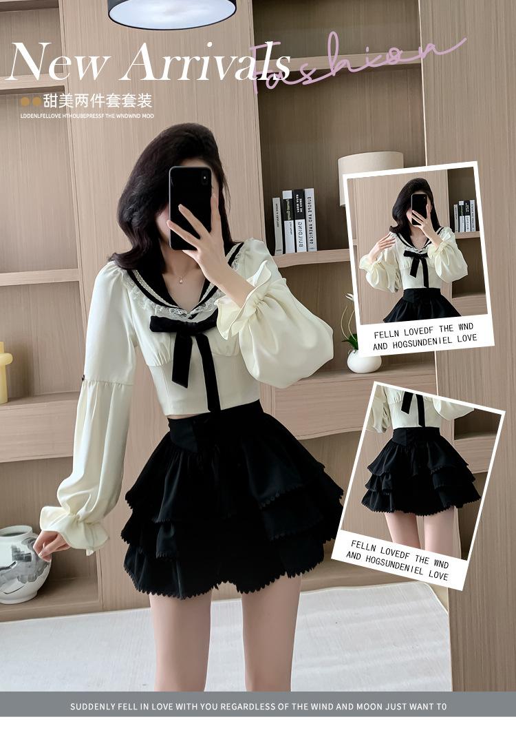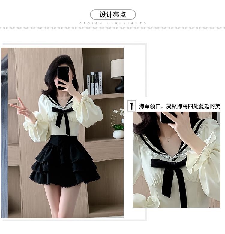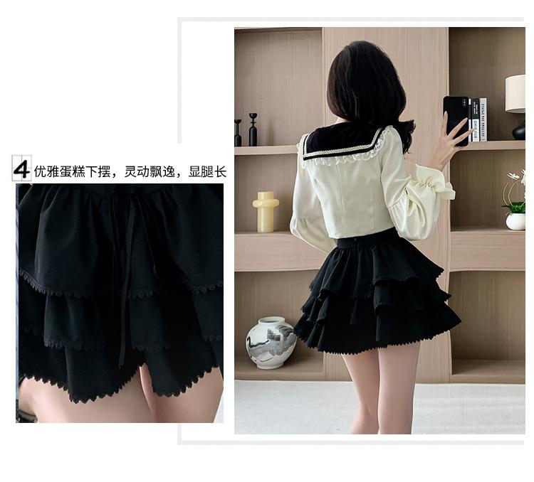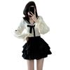 Primavera y verano 2025 Nueva marca de moda Vestido de mujer Camisa dulce pequeña Falda de cintura alta en forma de A Conjunto de dos piezas