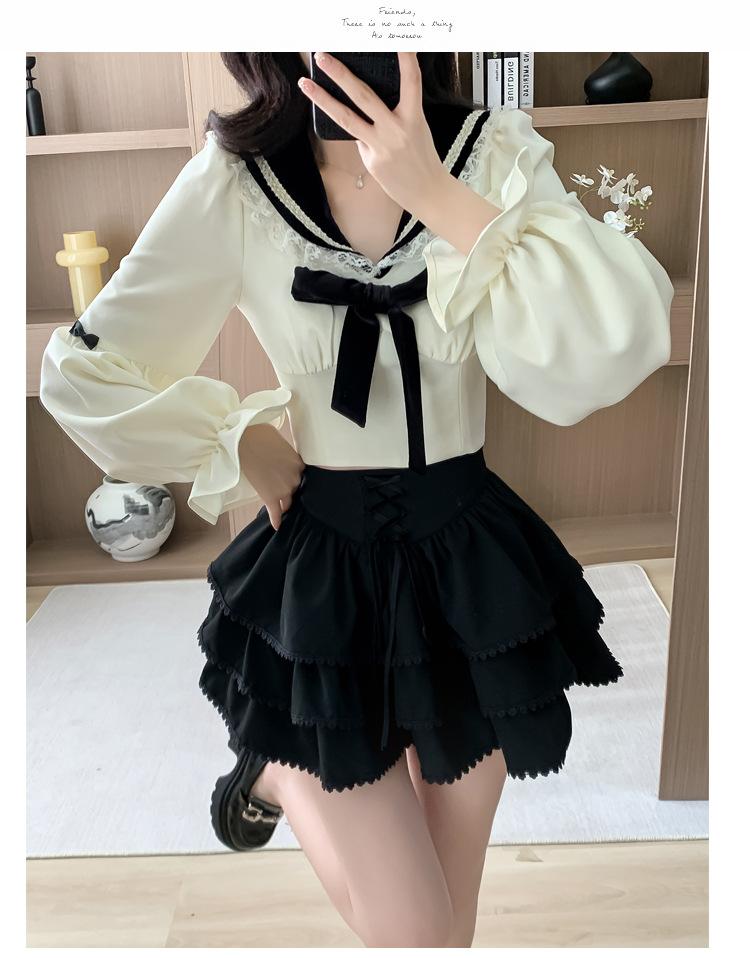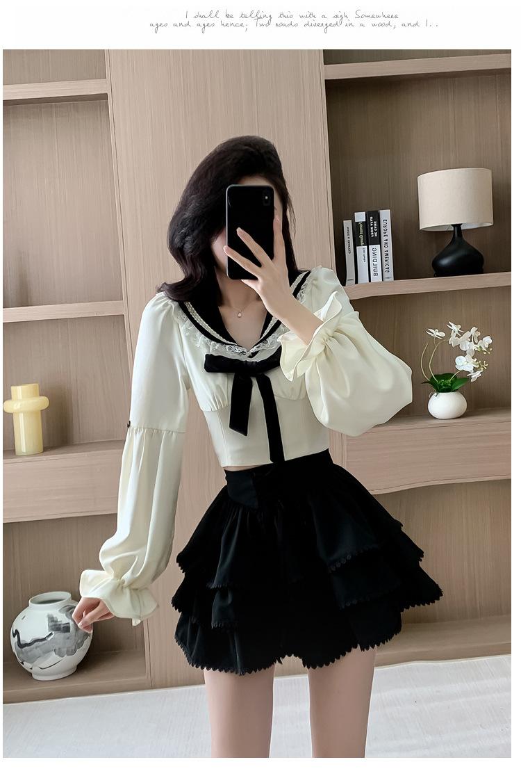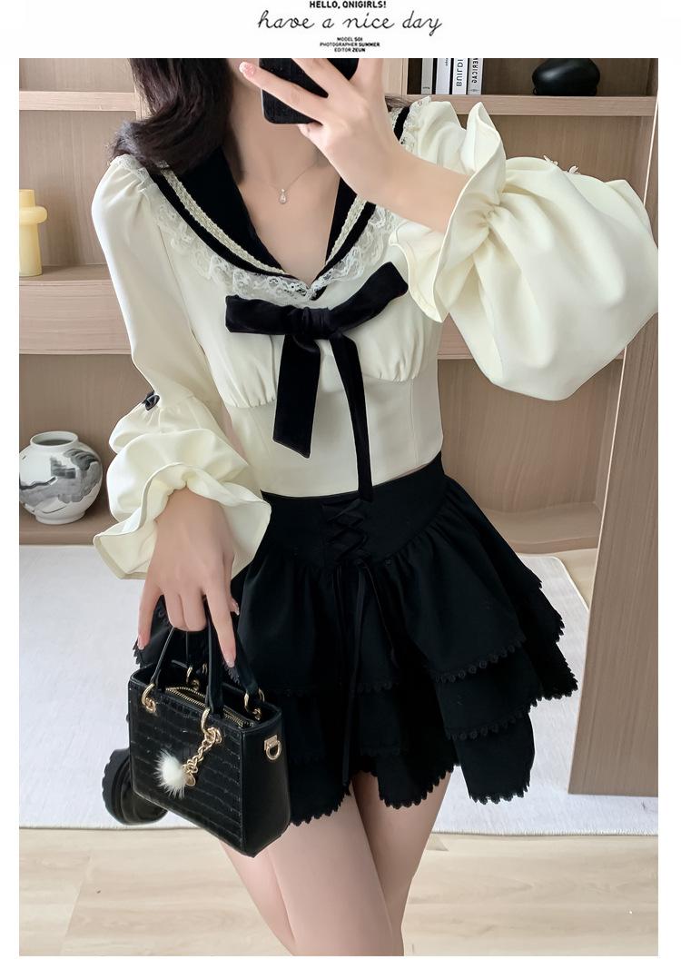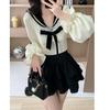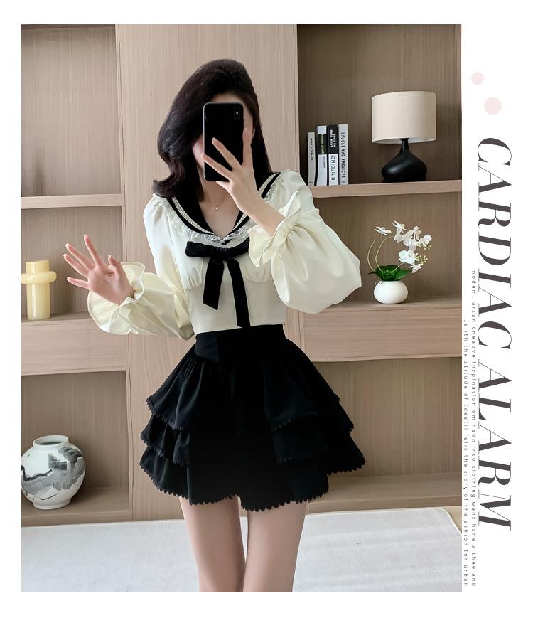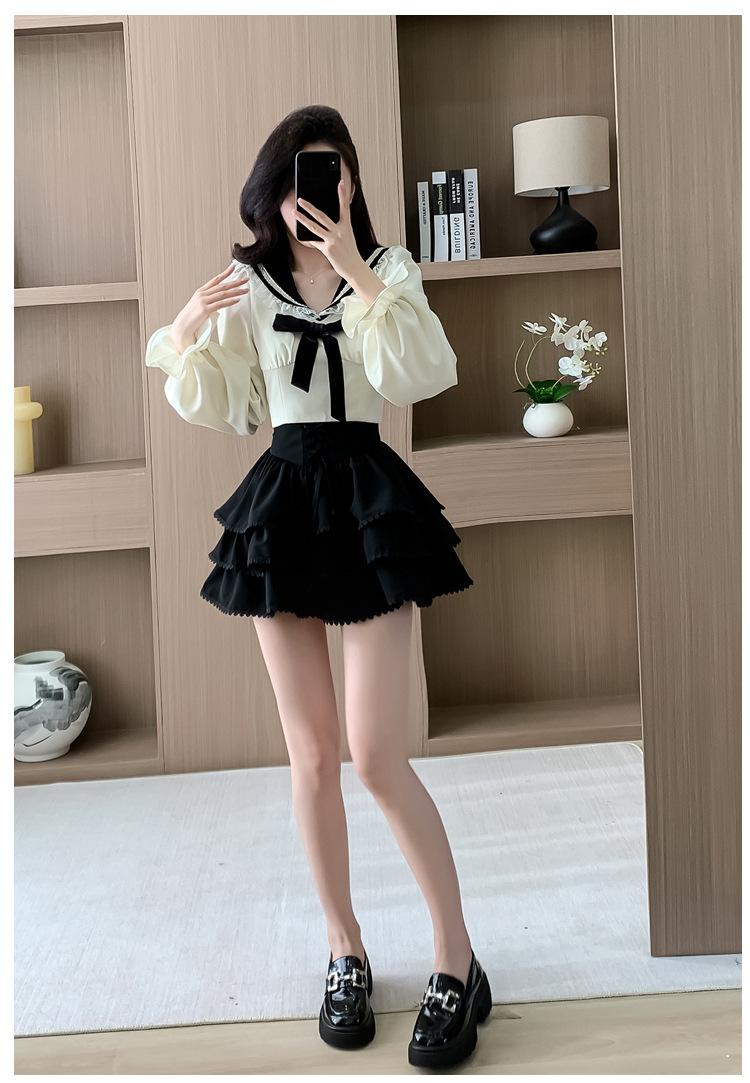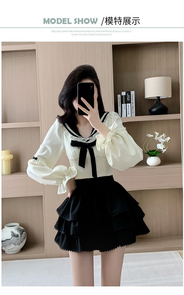 Primavera y verano 2025 Nueva marca de moda Vestido de mujer Camisa dulce pequeña Falda de cintura alta en forma de A Conjunto de dos piezas