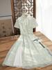 Qiao Niang Fish Green Mejorado Nuevo Cheongsam Chino para Mujer Primavera y Verano 2025 Nuevo Elegante Sencillo y Elegante Que Las Damas Pueden Usar A Diario