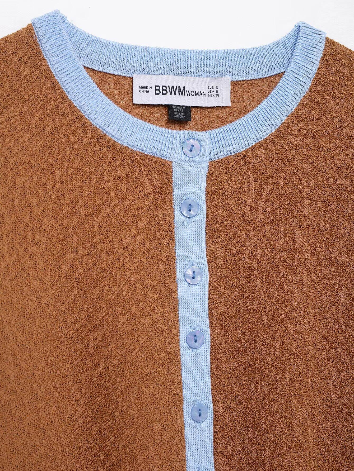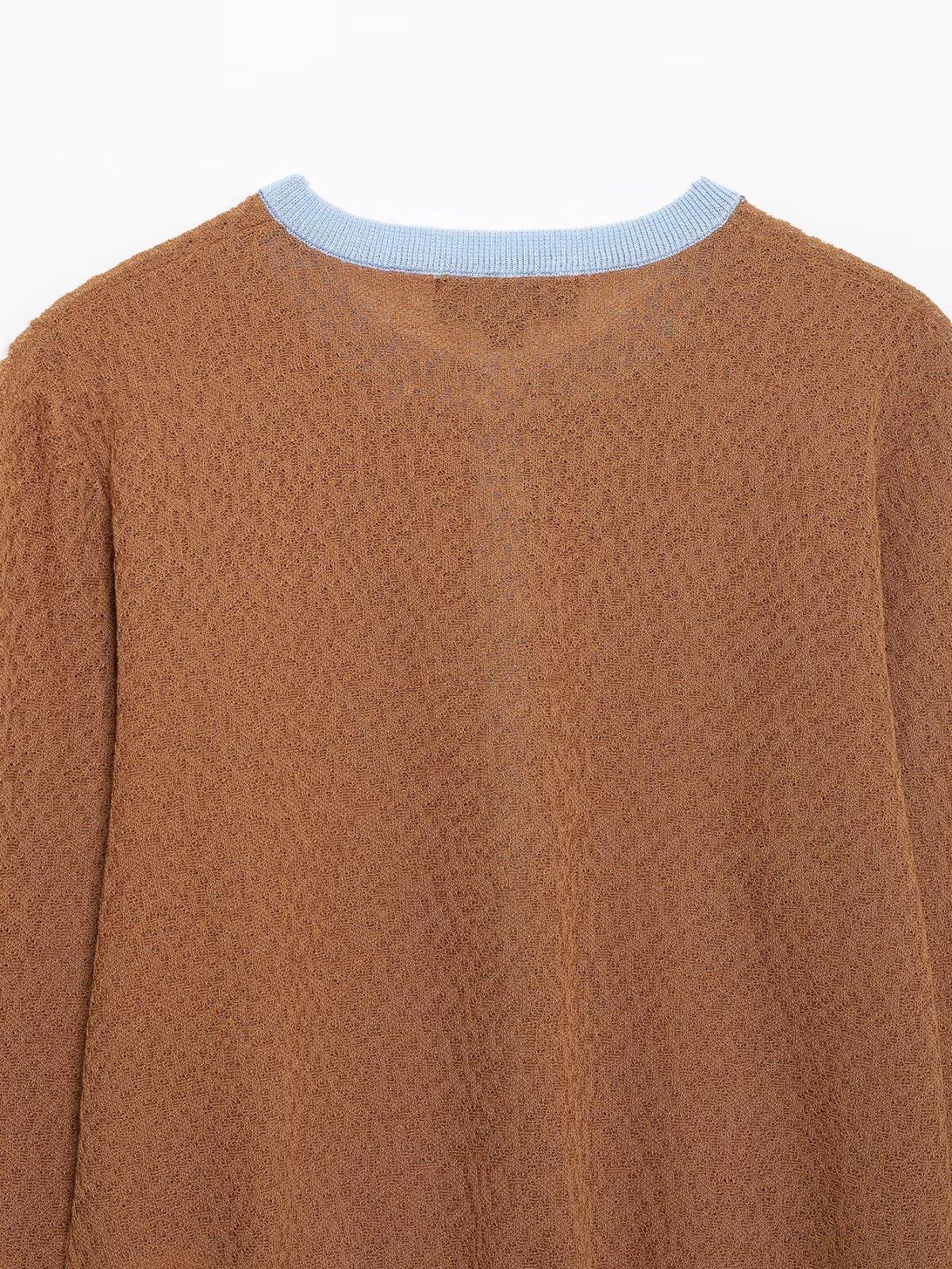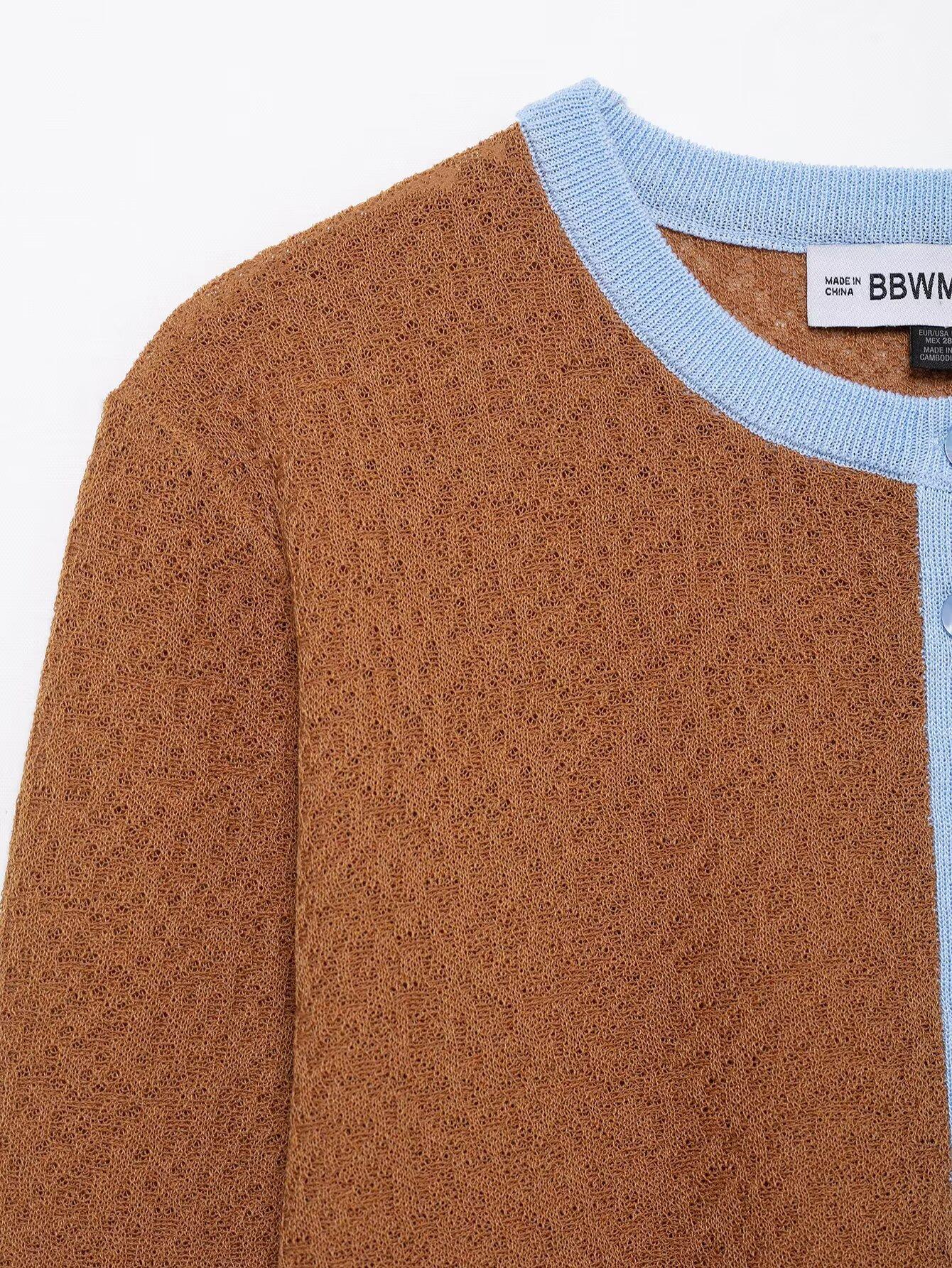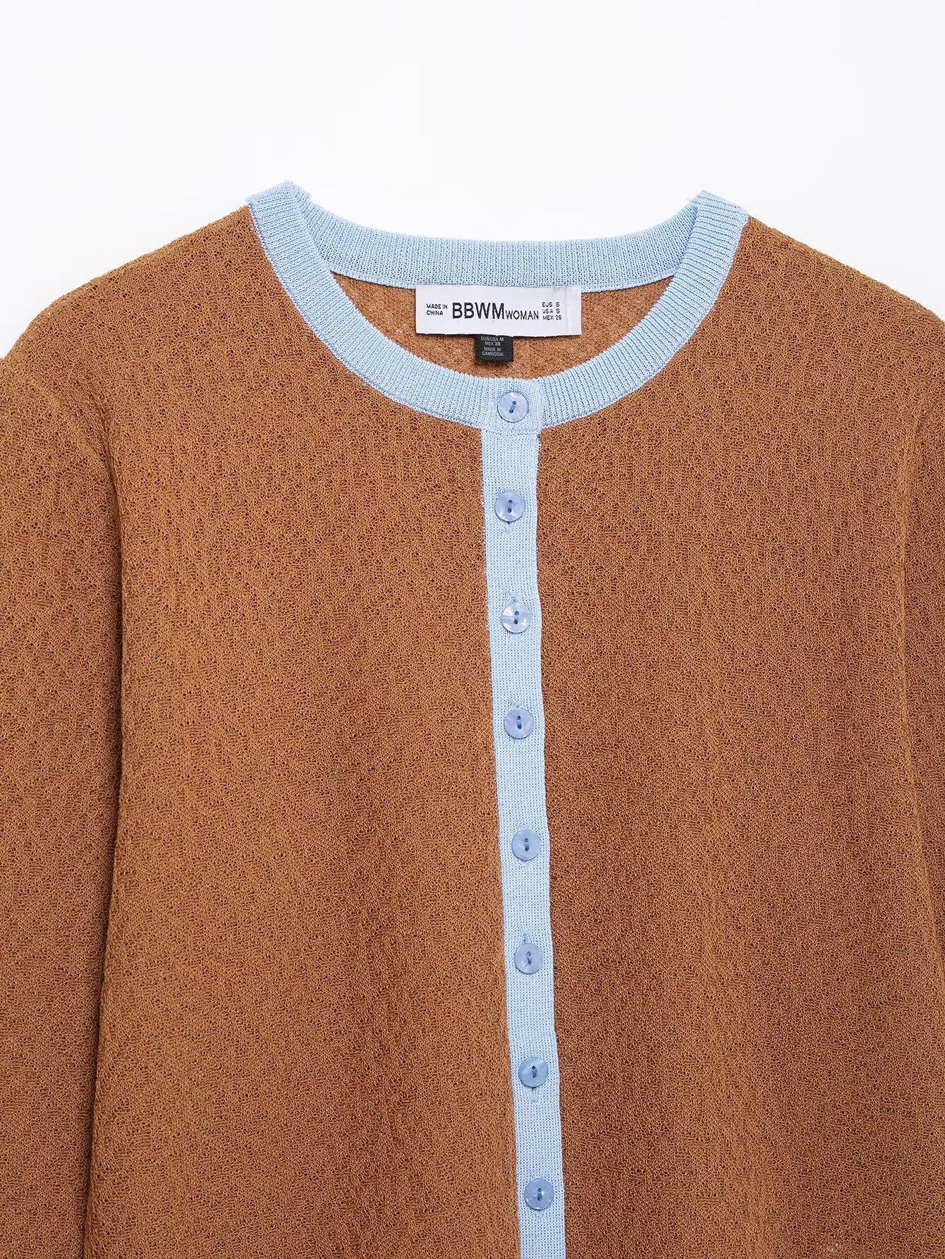 Cárdigan de punto de estilo europeo y americano al por mayor transfronterizo 2025 Moda de primavera Cuello redondo Combinación de colores Top Chaqueta para mujer A36145