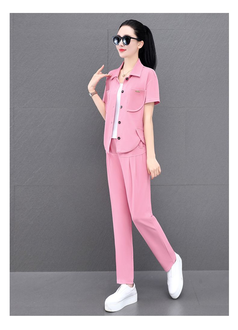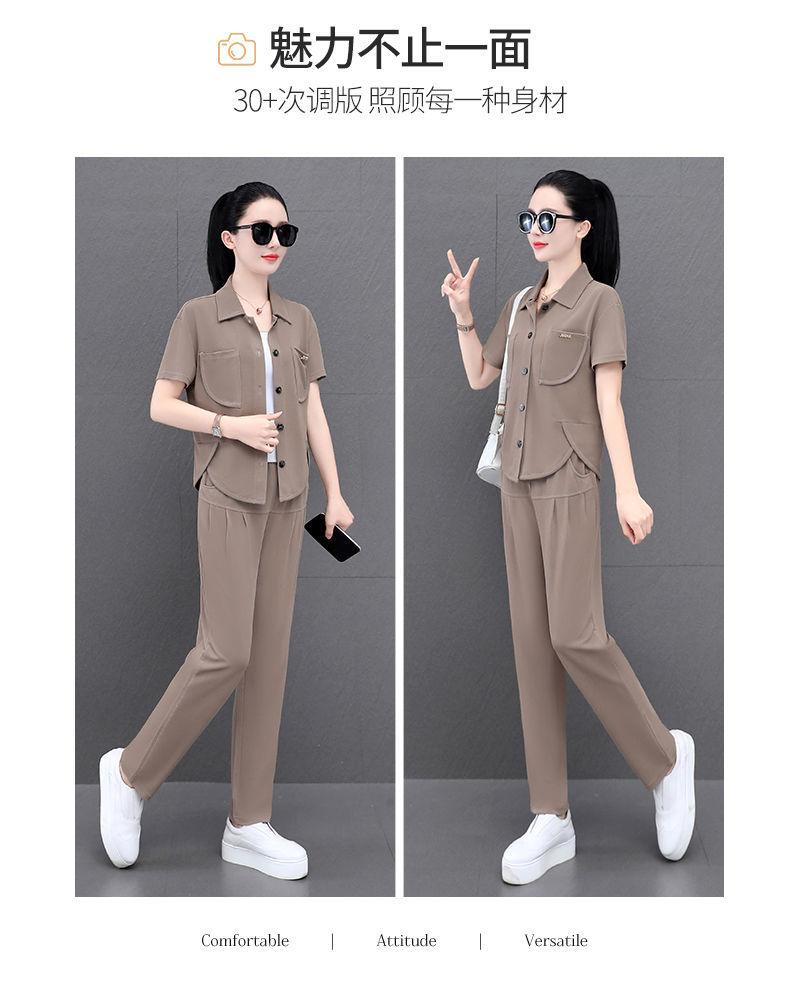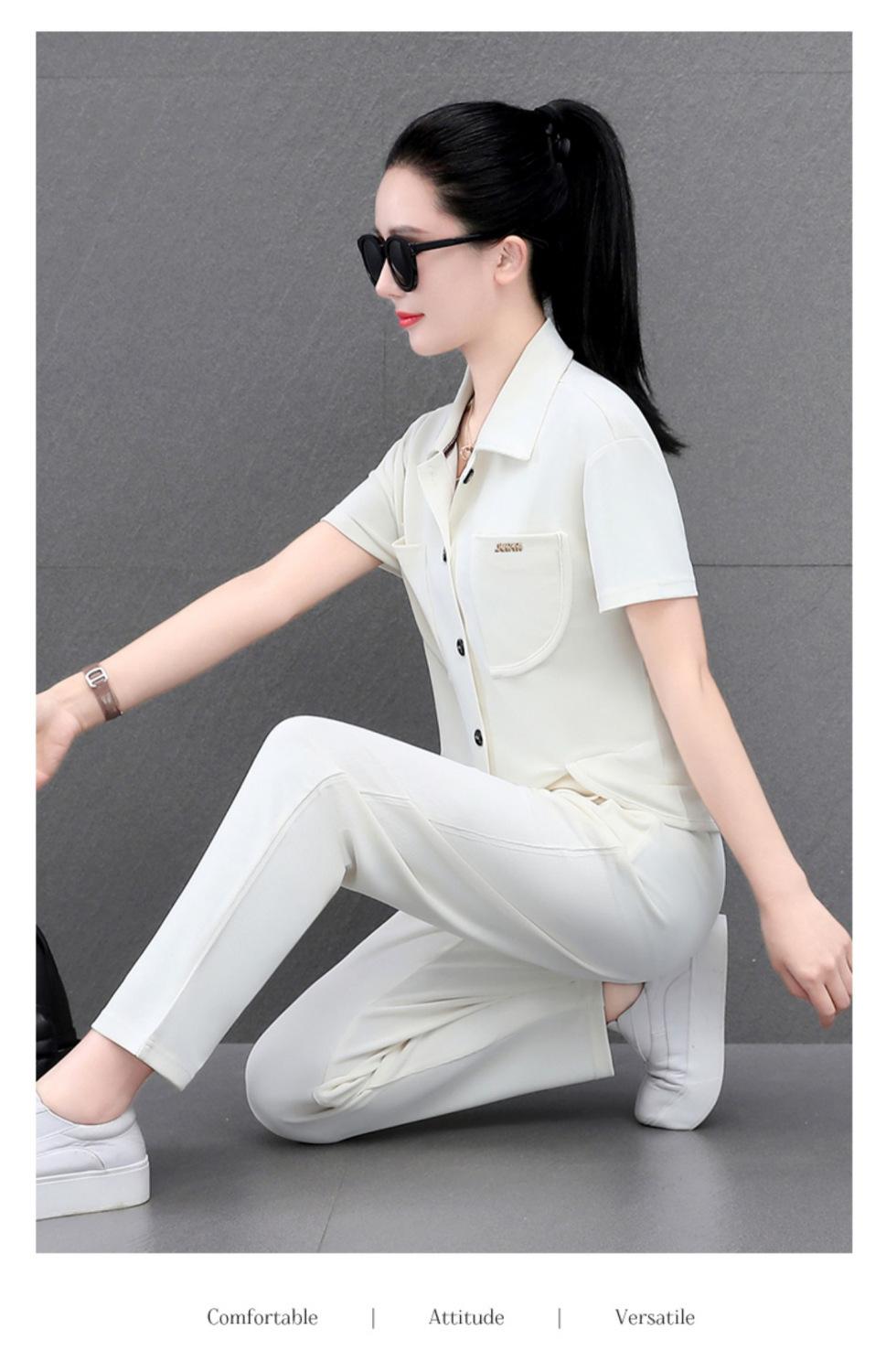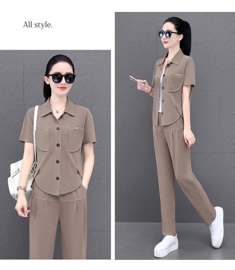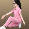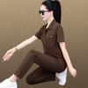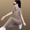 Traje deportivo para mujer, nuevo vestido de verano 2025, estilo occidental, Lel, manga corta, informal, elegante, conjunto de dos piezas, talla grande, antiedad.