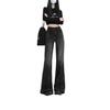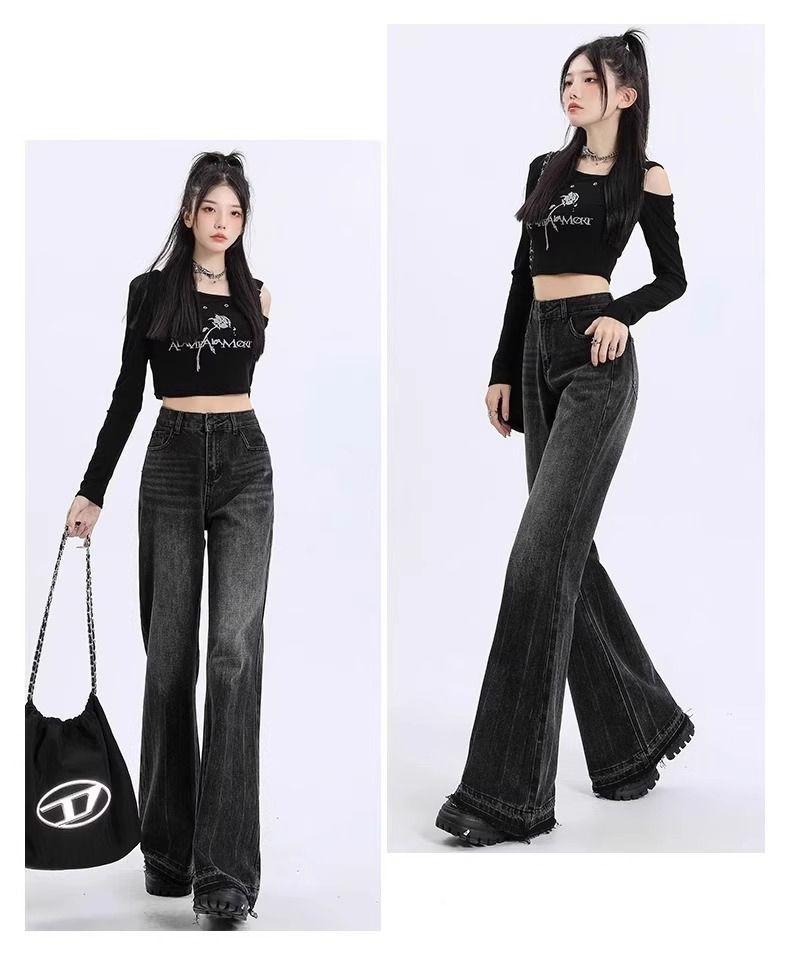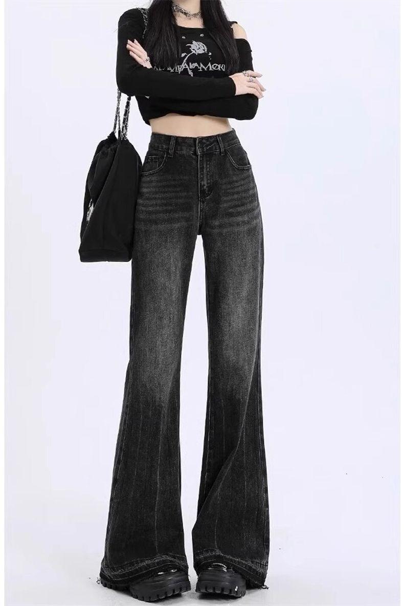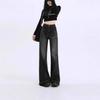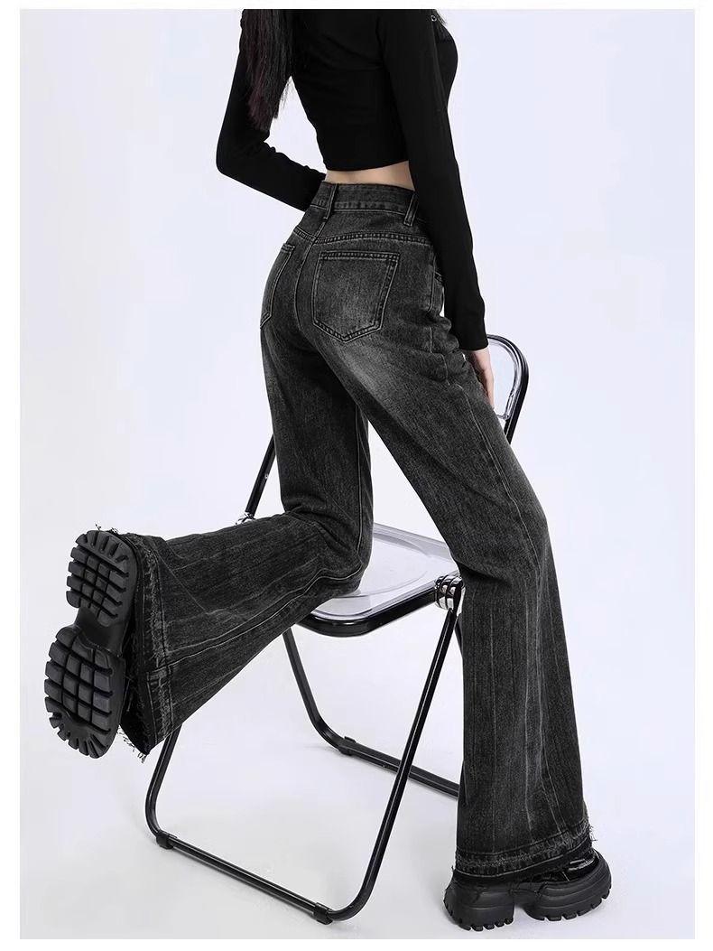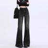 Pantalones vaqueros ajustados de microcintura para mujer, color negro y gris, holgados, de talla grande, elásticos, con diseño de herradura.