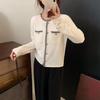 Cárdigan pequeño estilo Chanel de cuello redondo y bolsillo falso de lana especial para otoño, tendencia femenina.