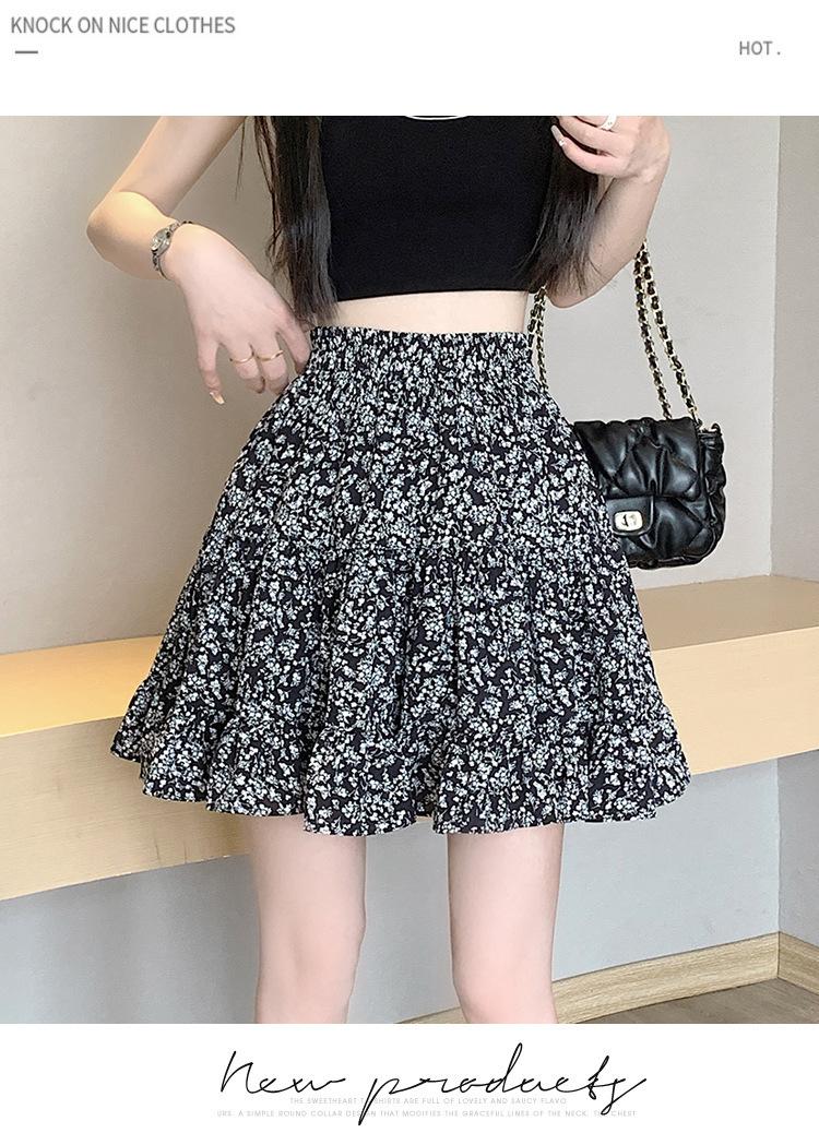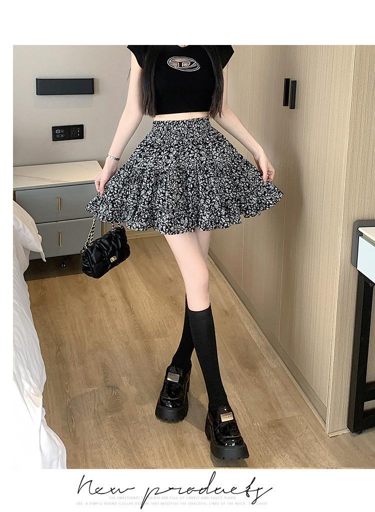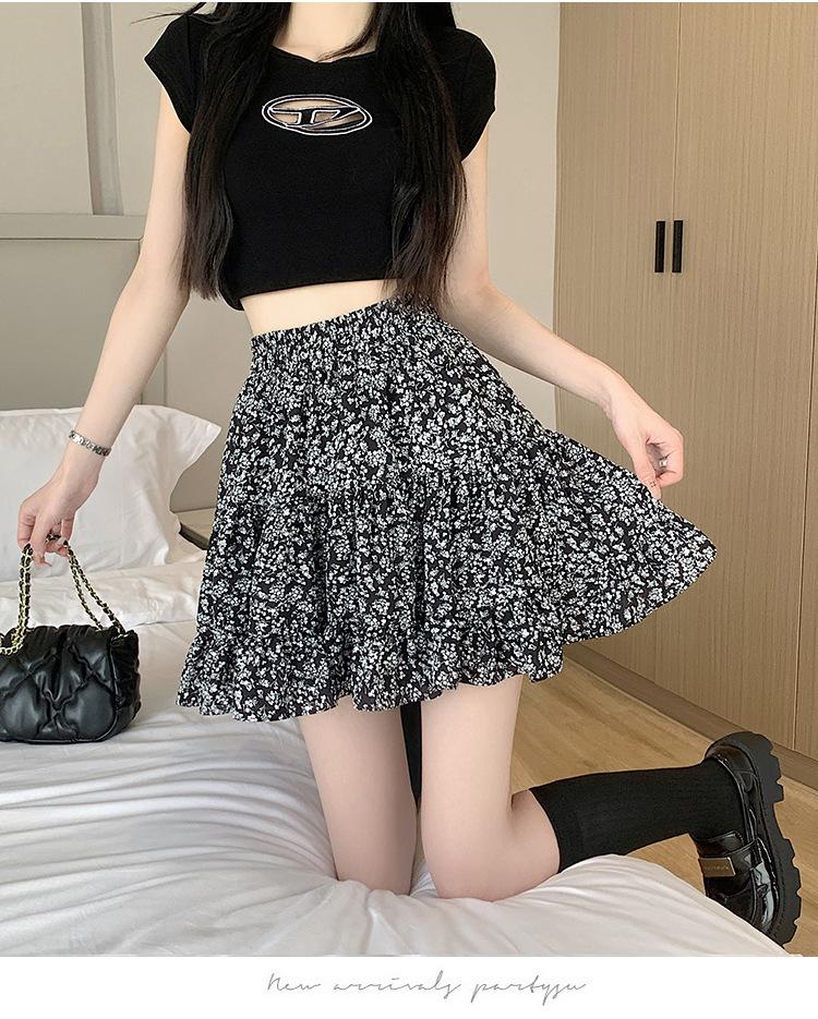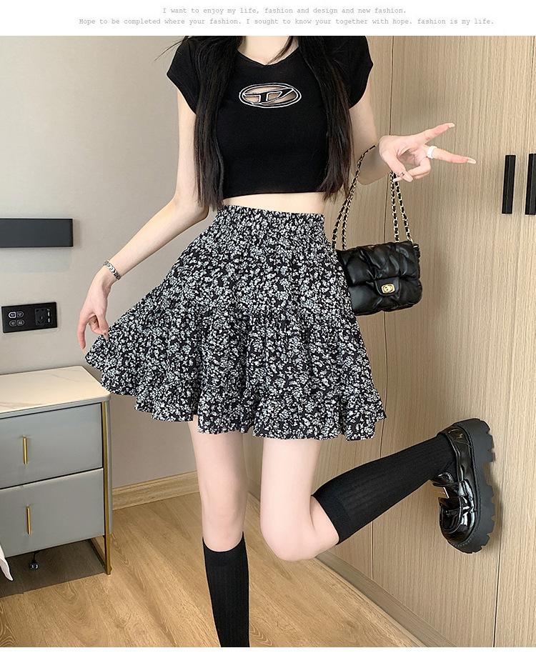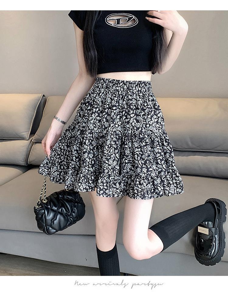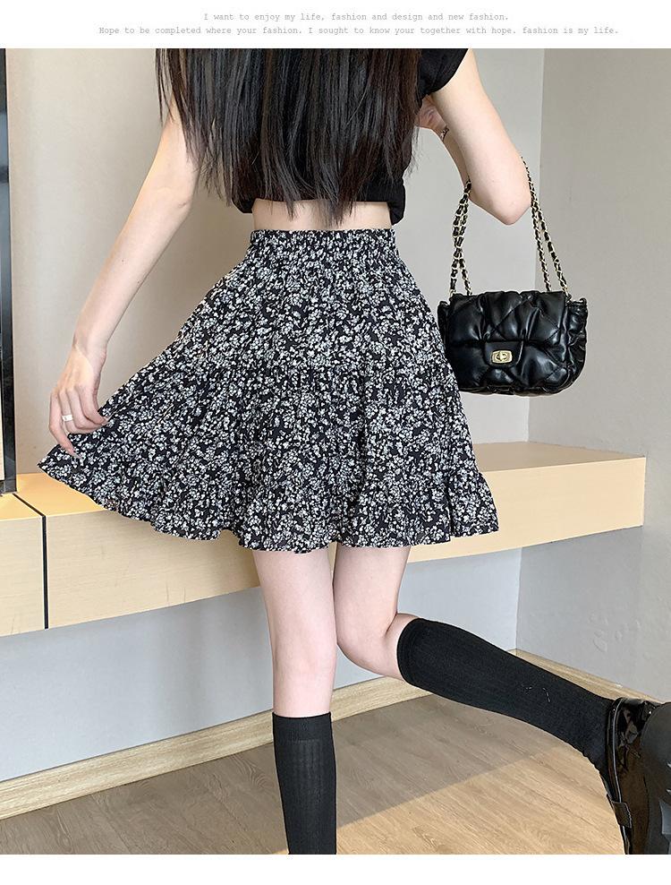 Falda floral negra estilo coreano para mujer, primavera y verano 2025, nuevo estilo, falda pastel, falda corta de corte A pequeña.