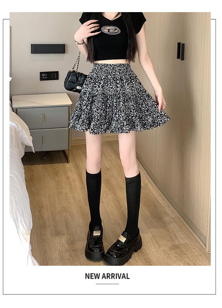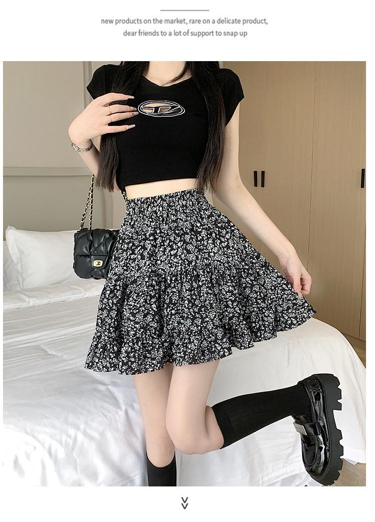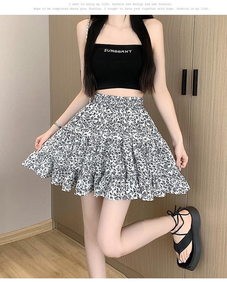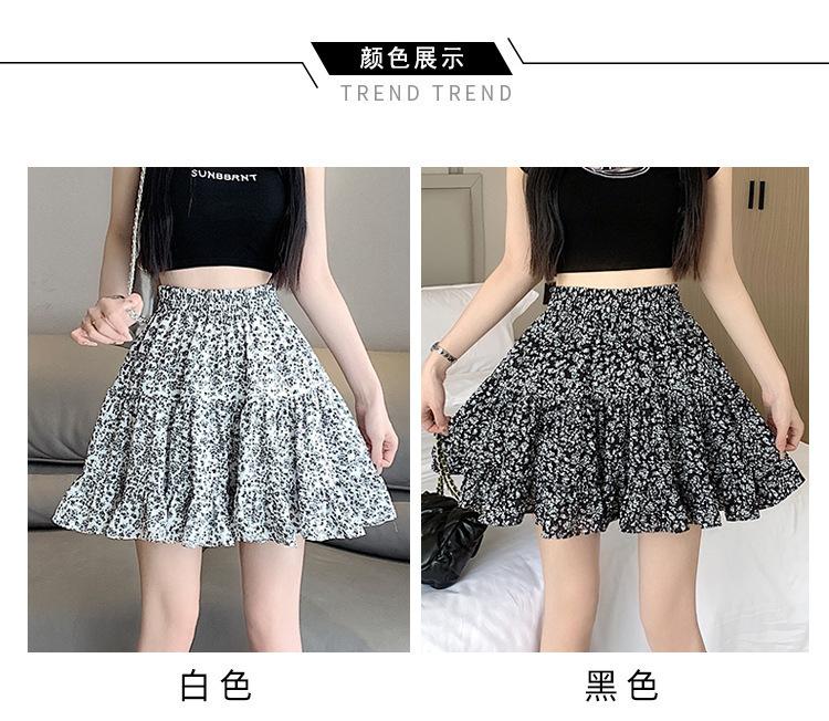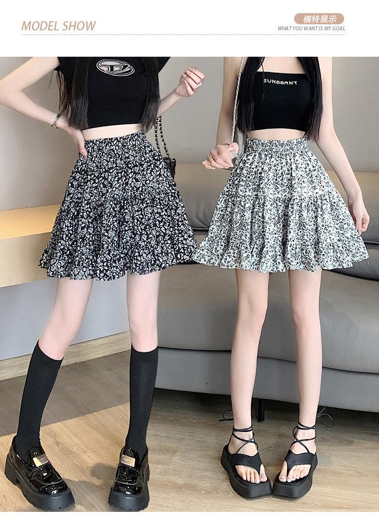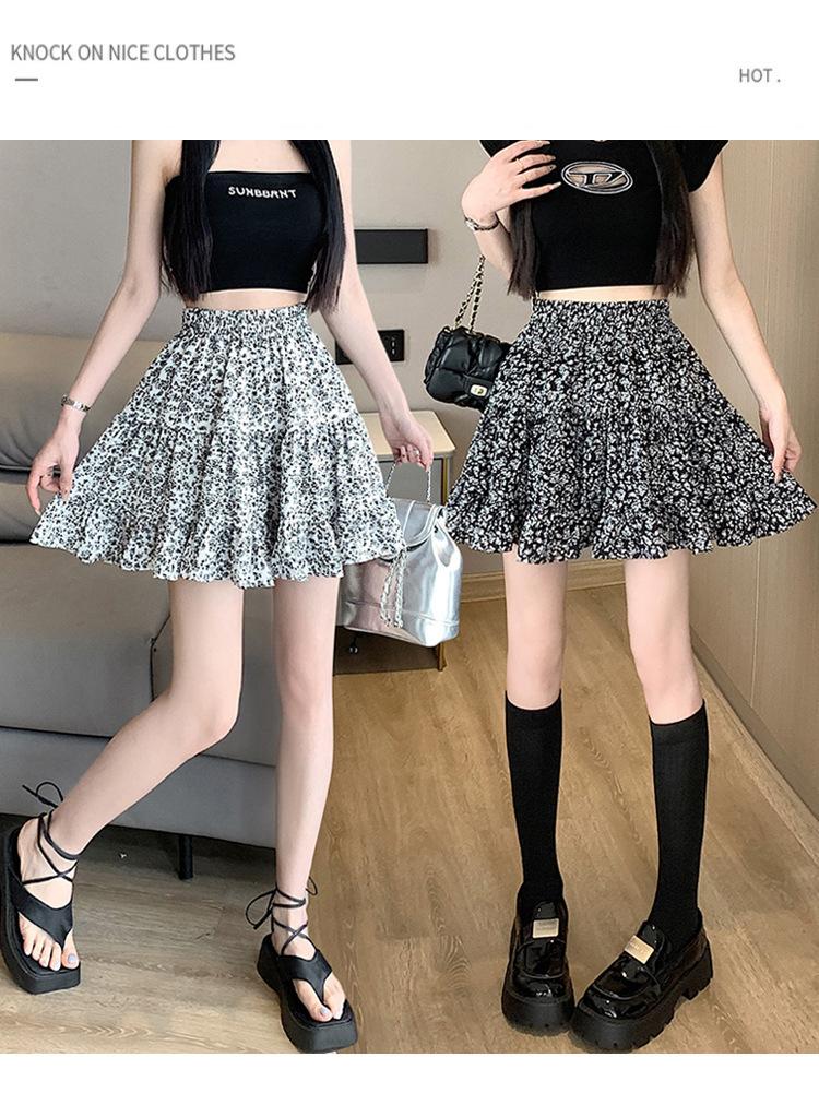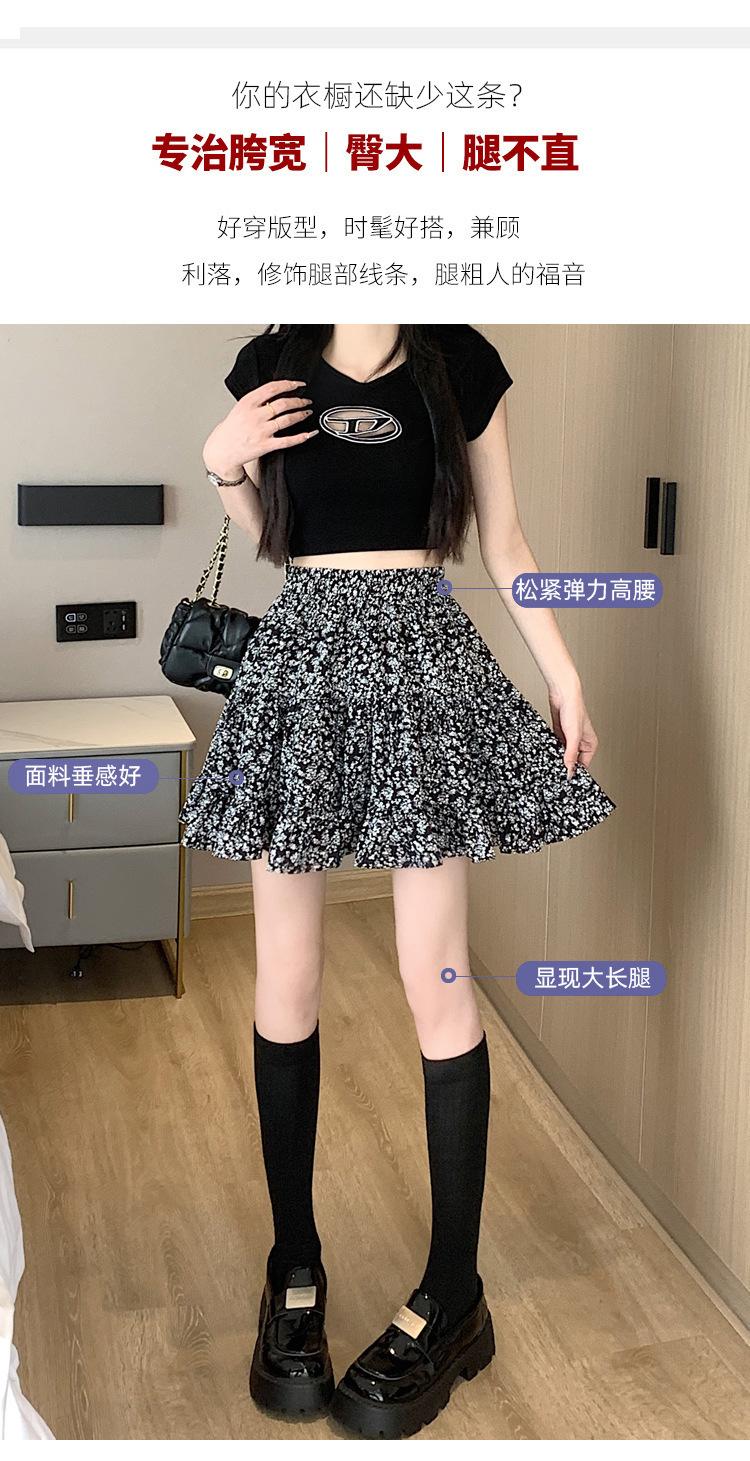 Falda floral negra estilo coreano para mujer, primavera y verano 2025, nuevo estilo, falda pastel, falda corta de corte A pequeña.