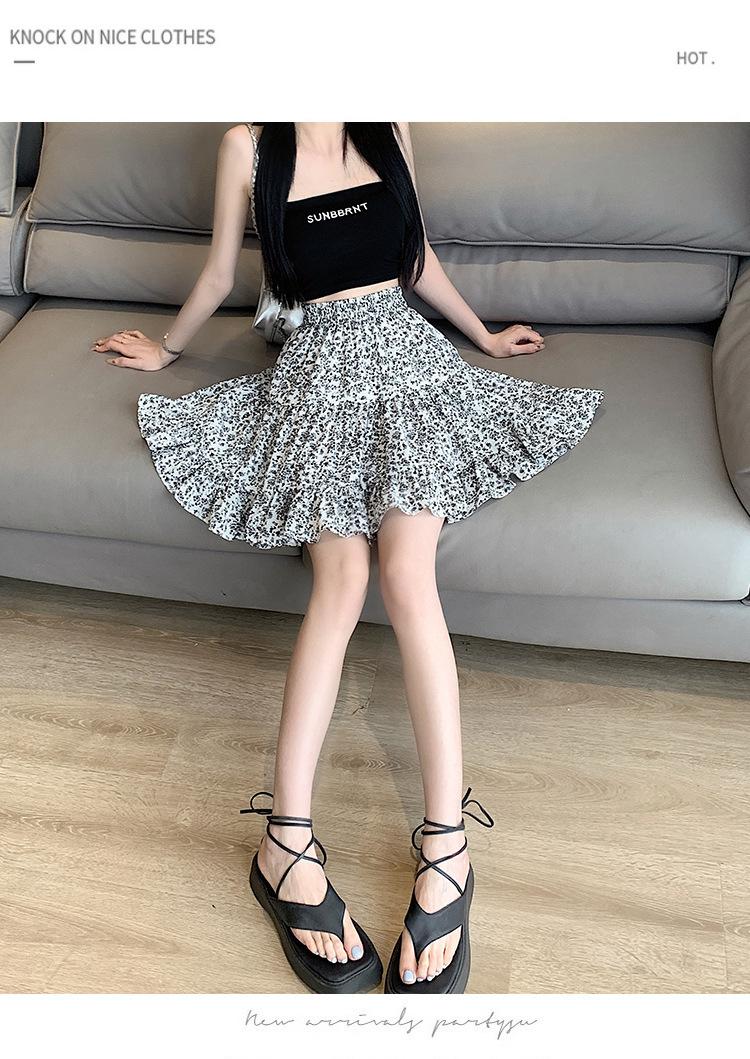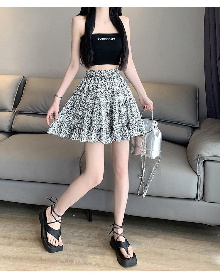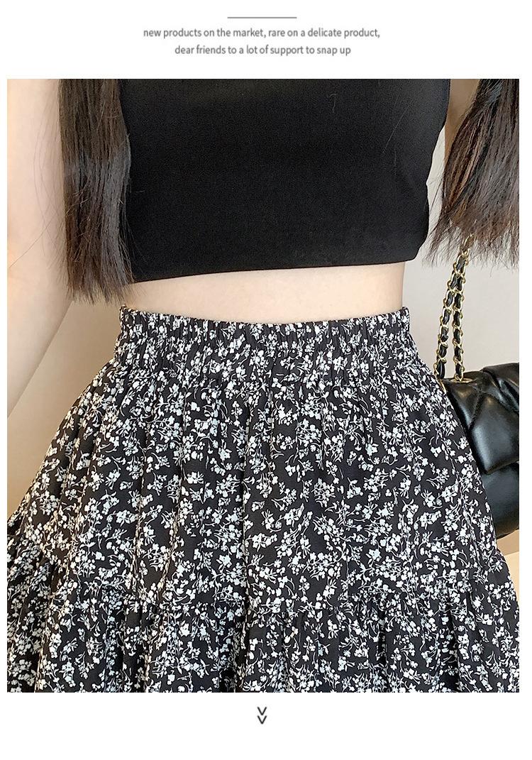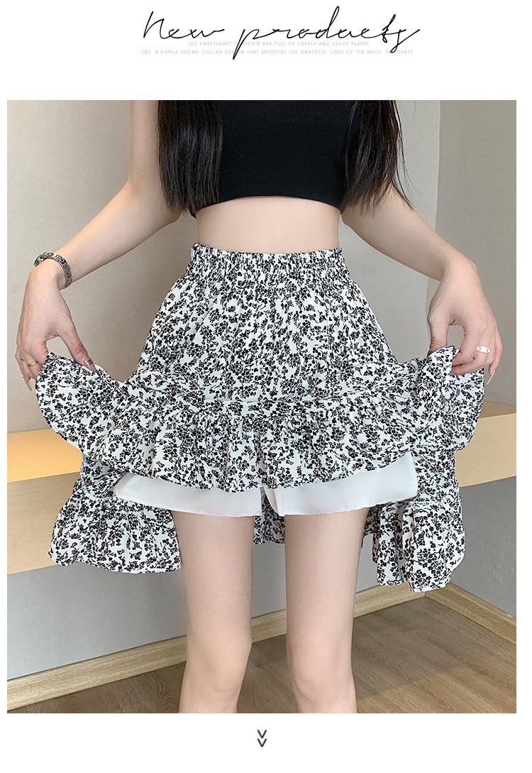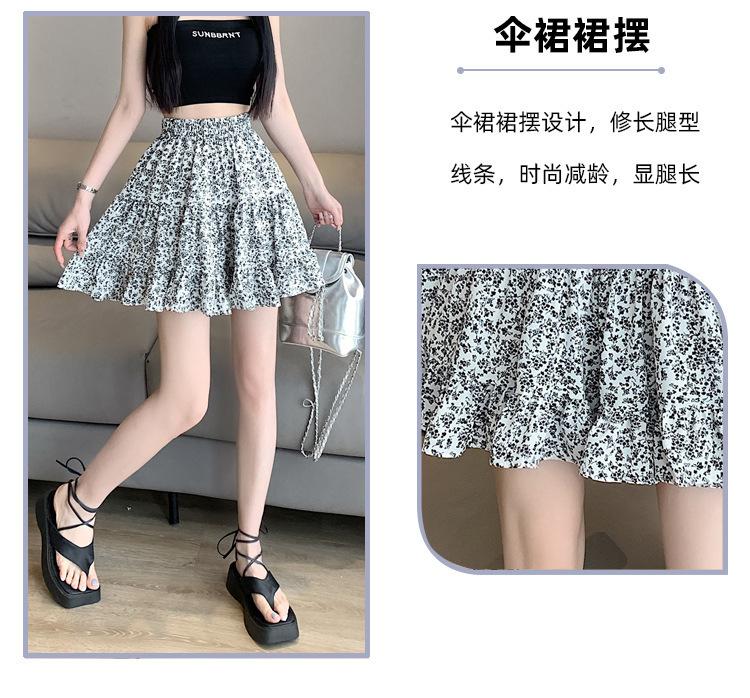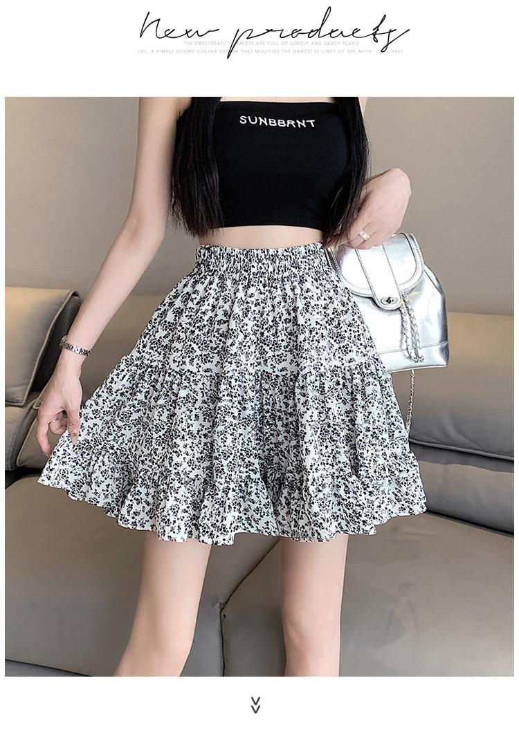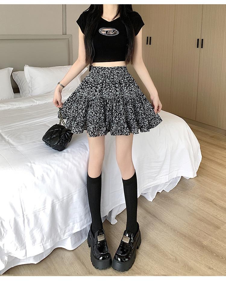 Falda floral negra estilo coreano para mujer, primavera y verano 2025, nuevo estilo, falda pastel, falda corta de corte A pequeña.