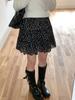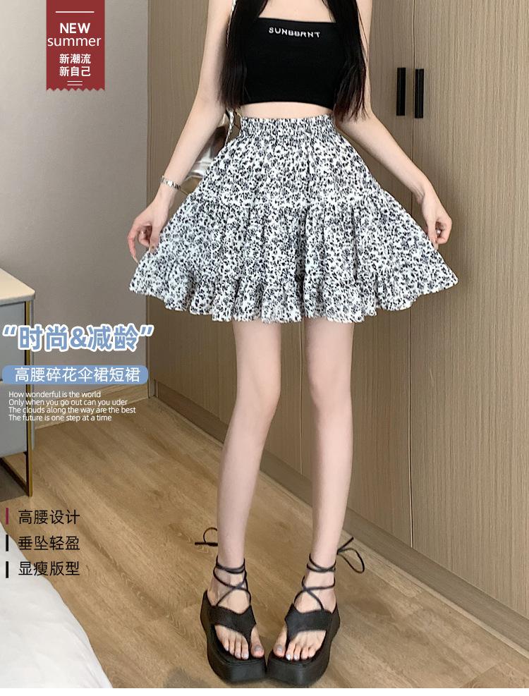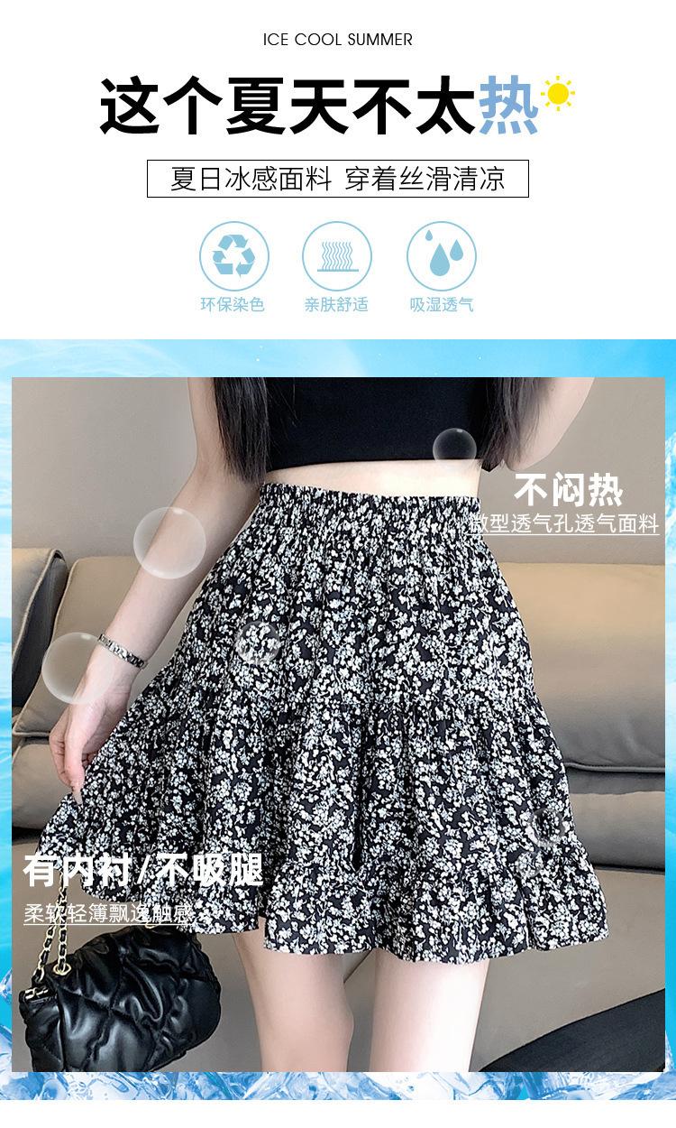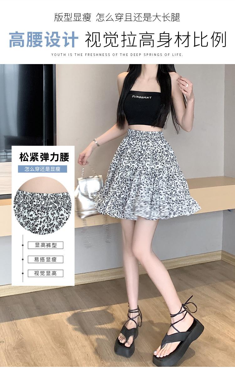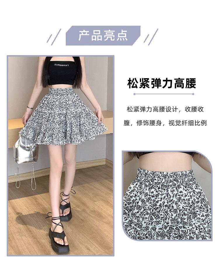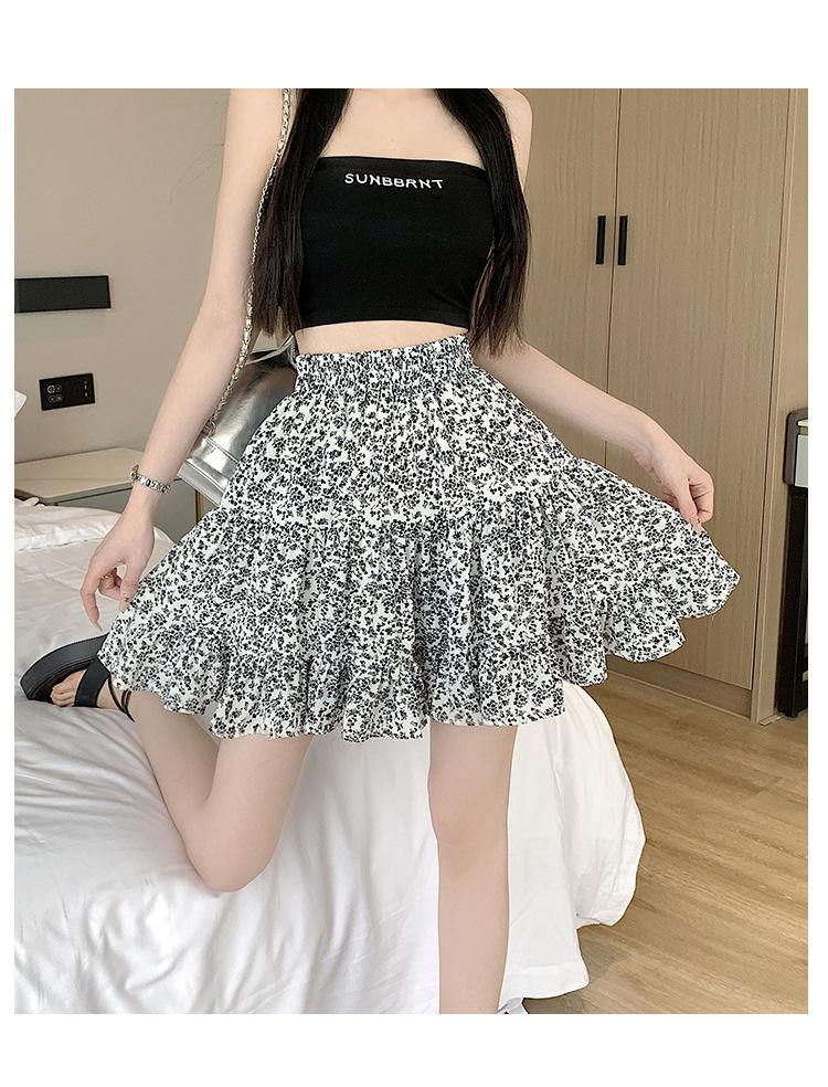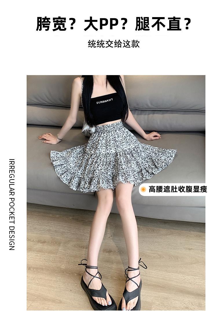 Falda floral negra estilo coreano para mujer, primavera y verano 2025, nuevo estilo, falda pastel, falda corta de corte A pequeña.