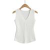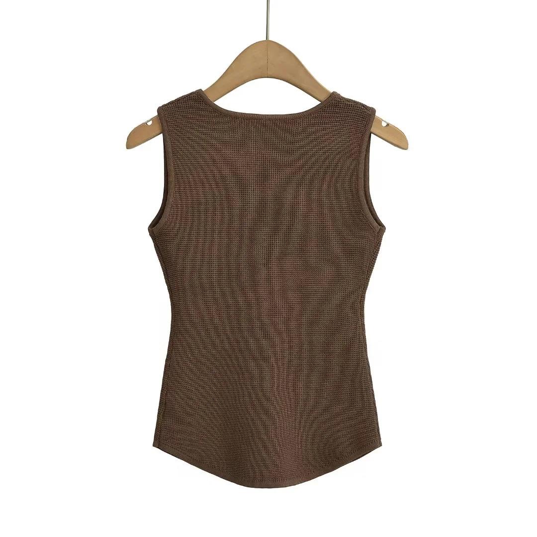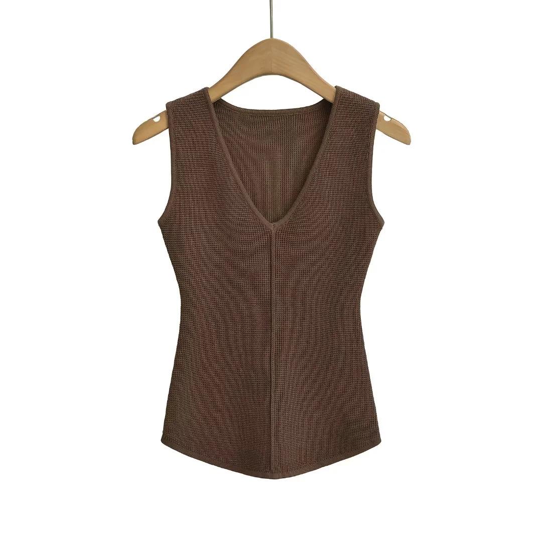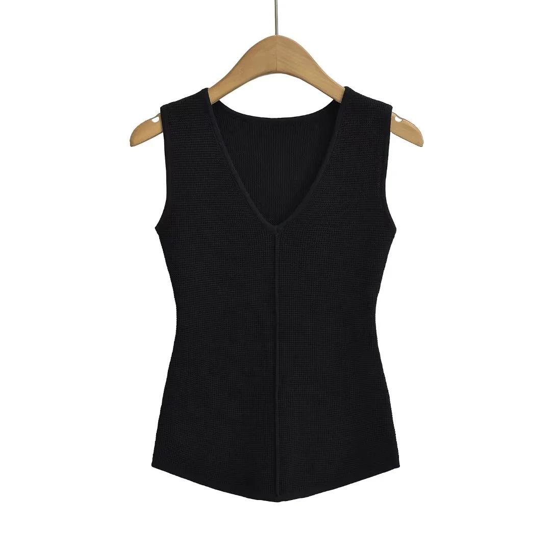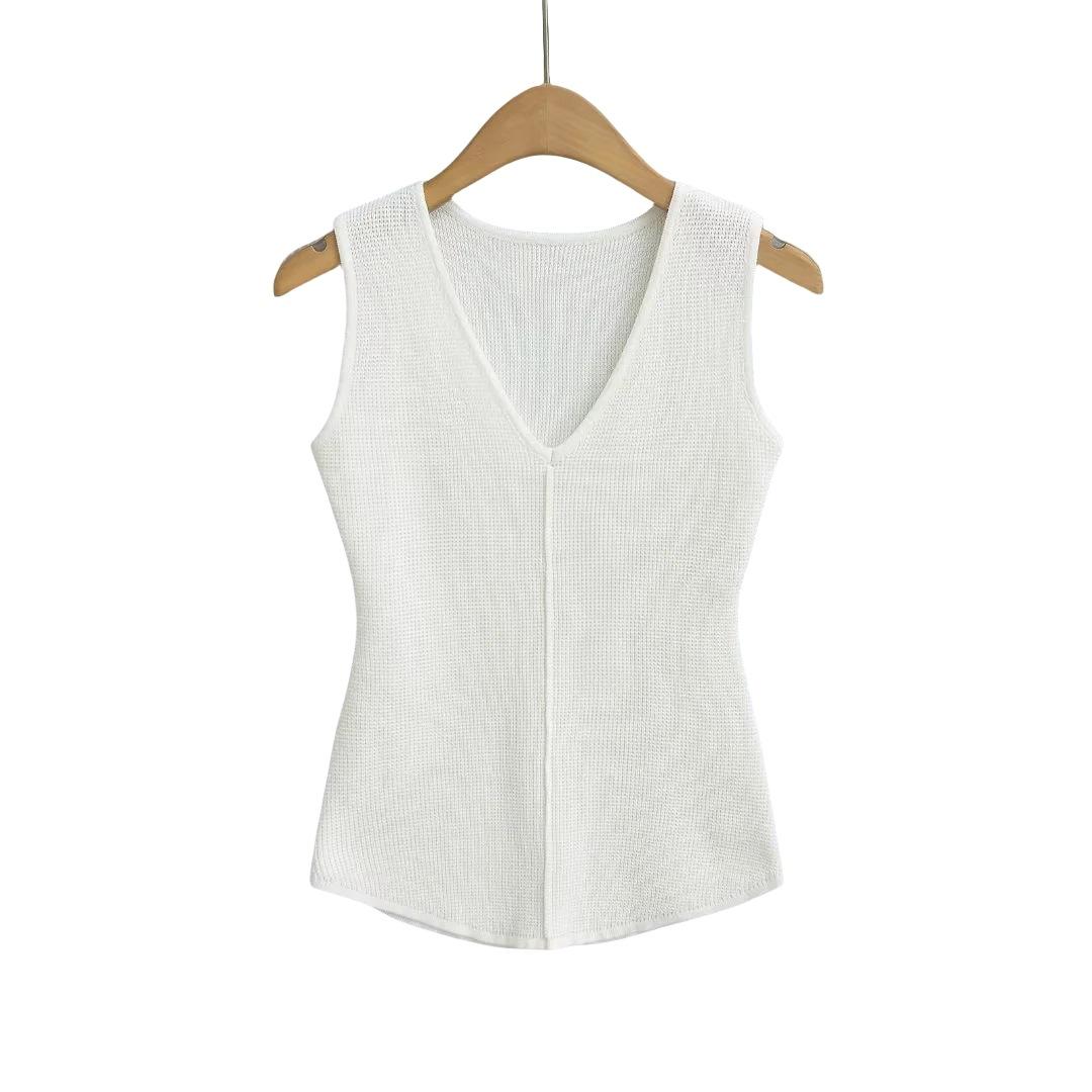 Verano Nuevo Americano Retro Camisola Cuello V para Mujer Ajustada Sin Mangas Top de Punto