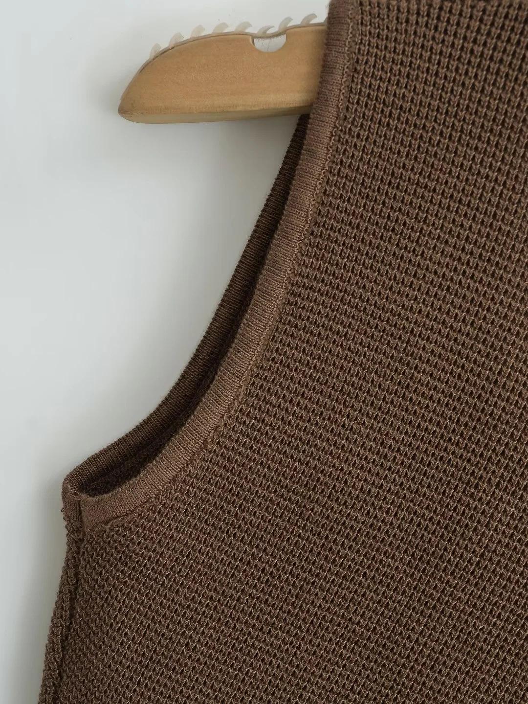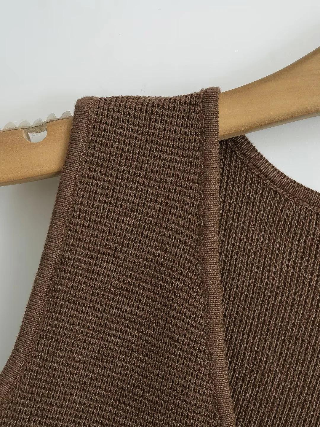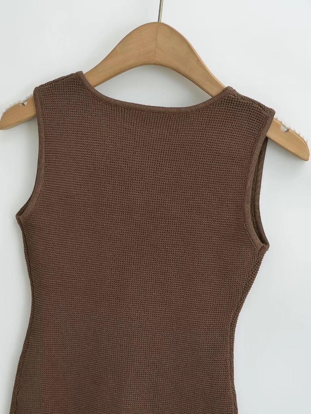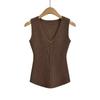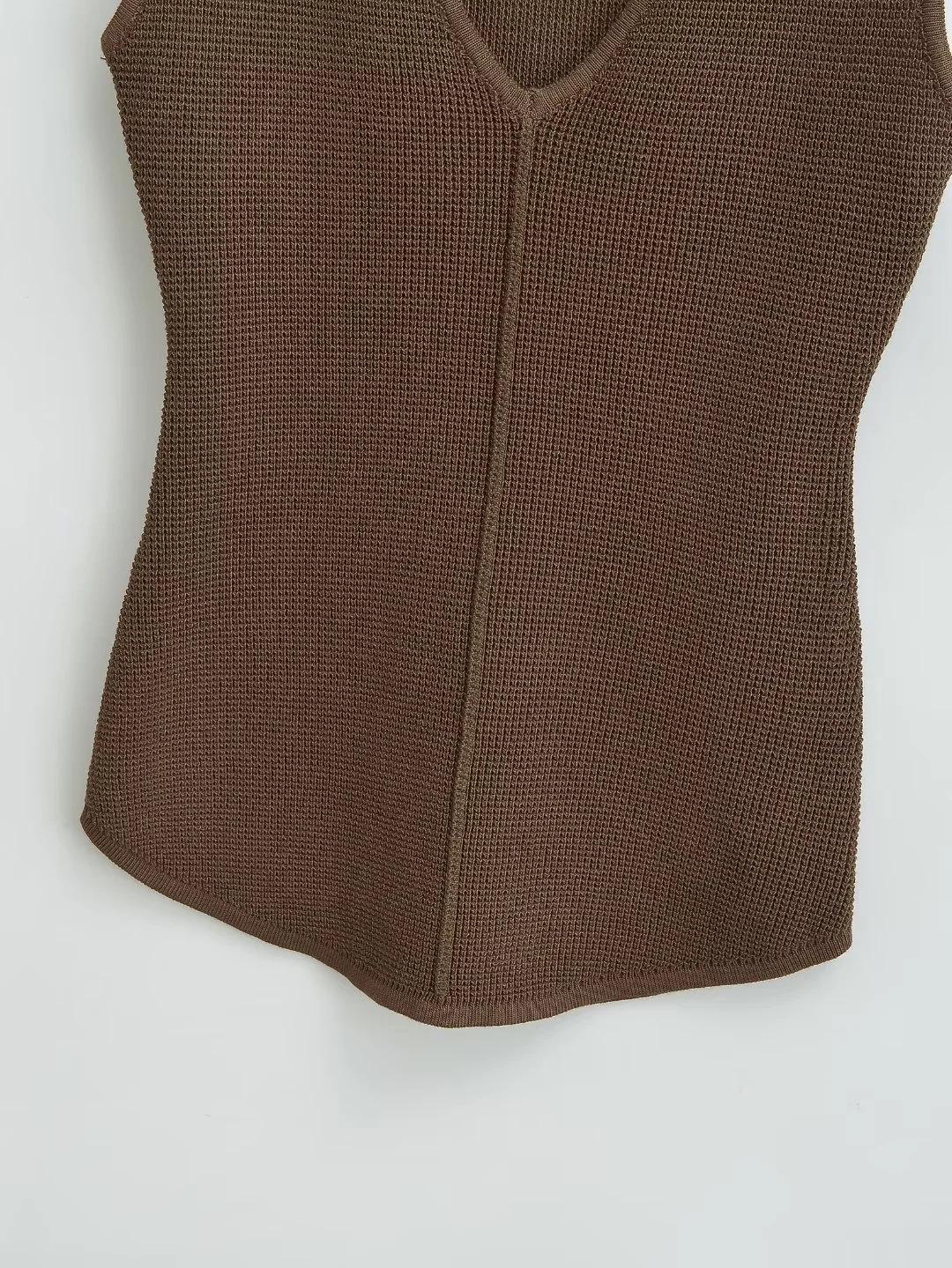 Verano Nuevo Americano Retro Camisola Cuello V para Mujer Ajustada Sin Mangas Top de Punto