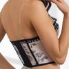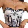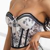 Ropa interior sin tirantes transfronteriza de ajuste ceñido, cintura de plástico, fruncido de malla estampada en contraste, aro de acero, ballena, copa para el busto, corsé europeo y americano para mujer
