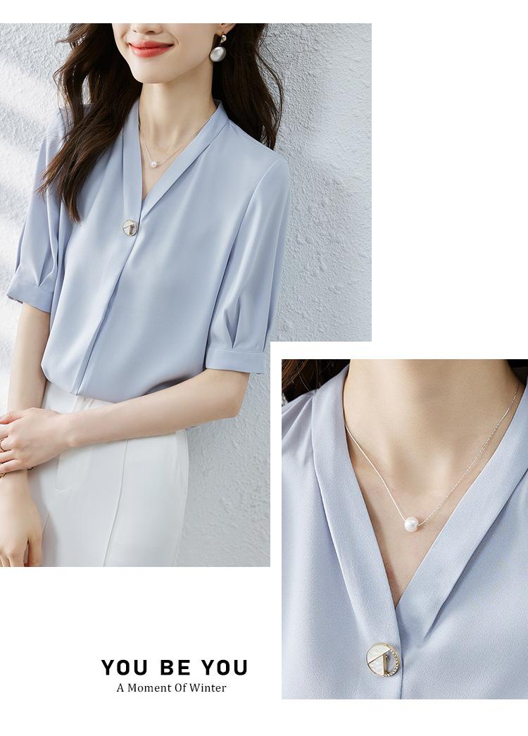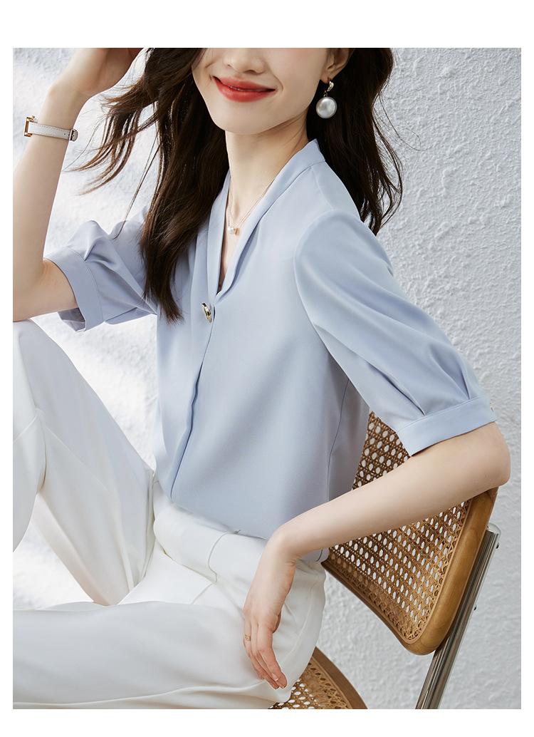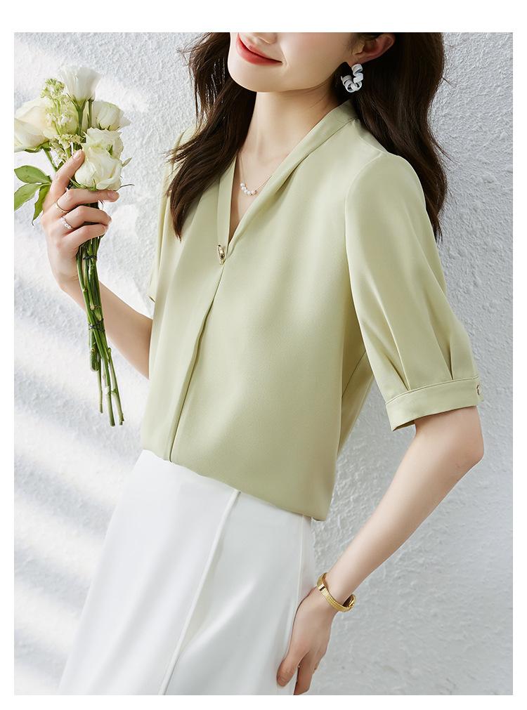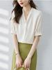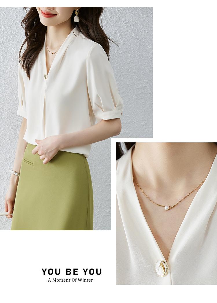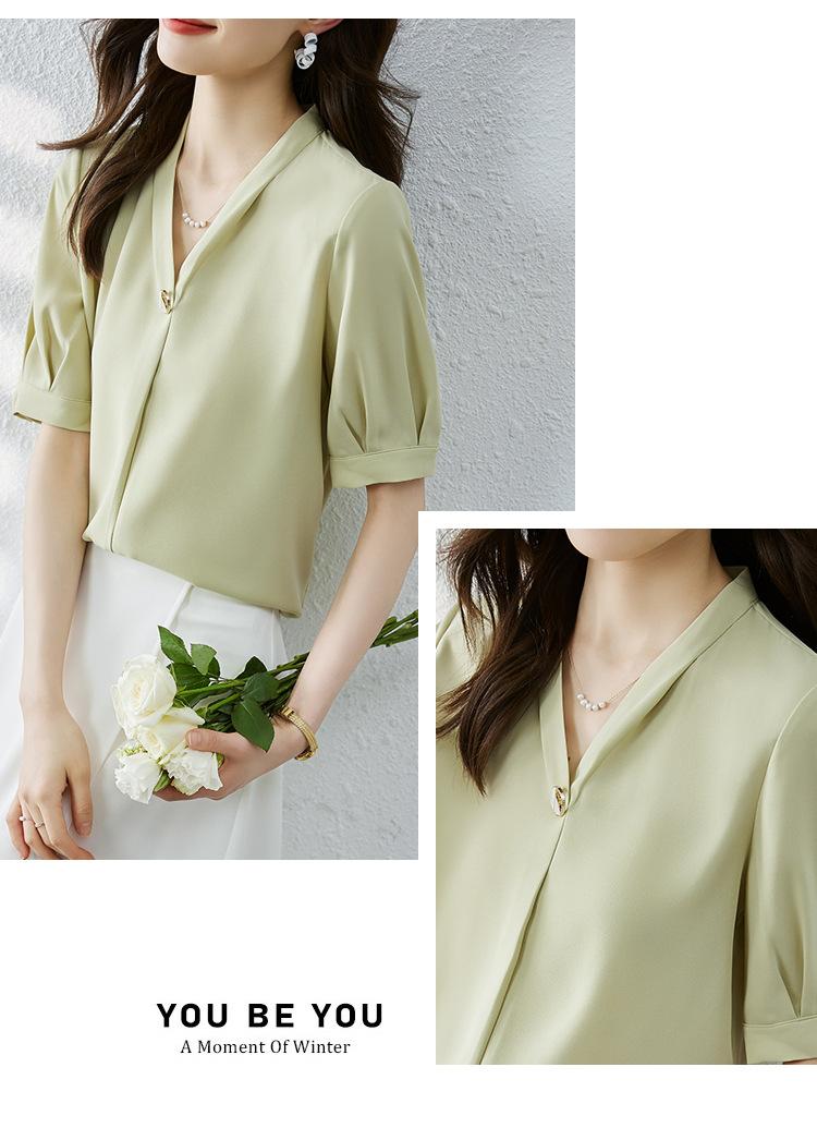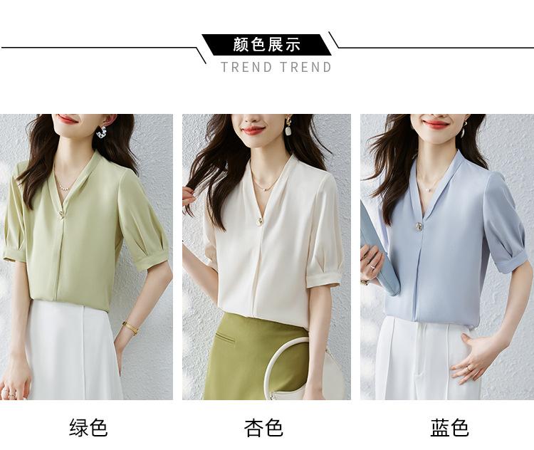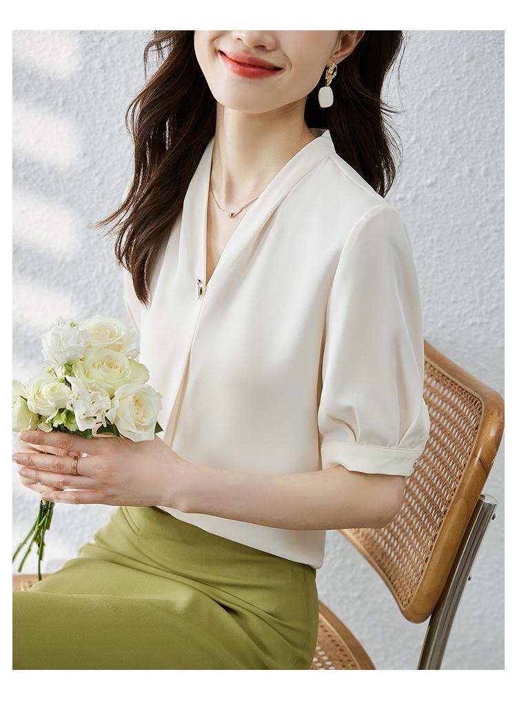 Camisa de Satén con Cuello en V Estilo Francés para Mujer Verano Nueva Elegante Ropa de Trabajo Ropa de Trabajo Profesional Camisa de Manga Corta a la Moda