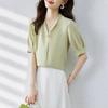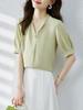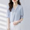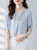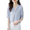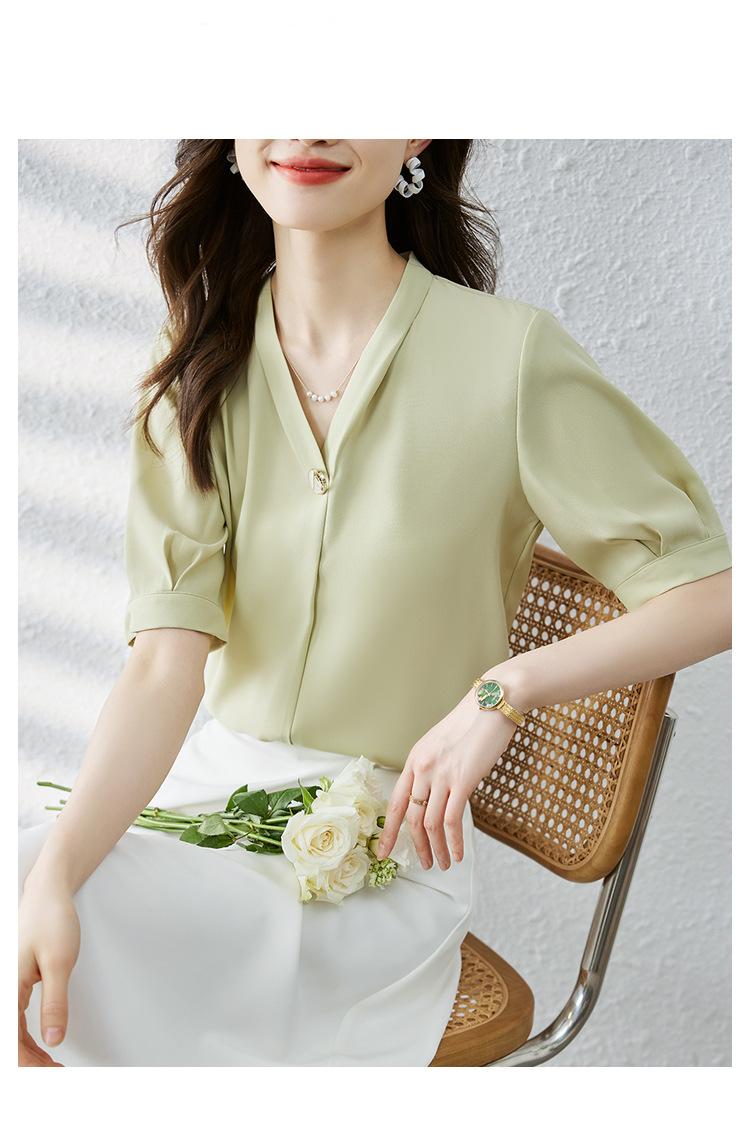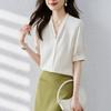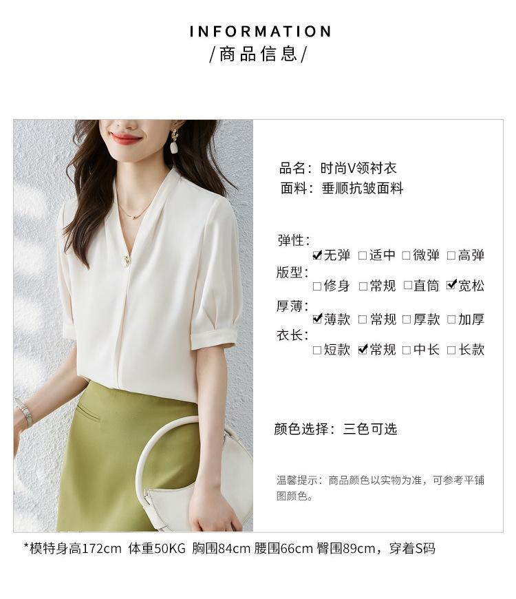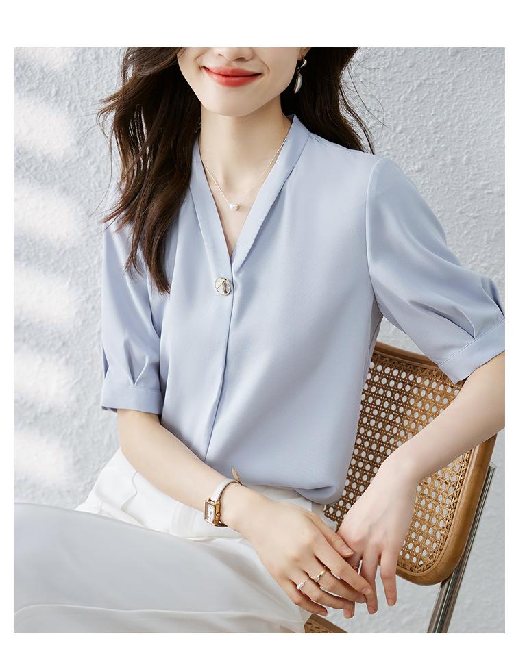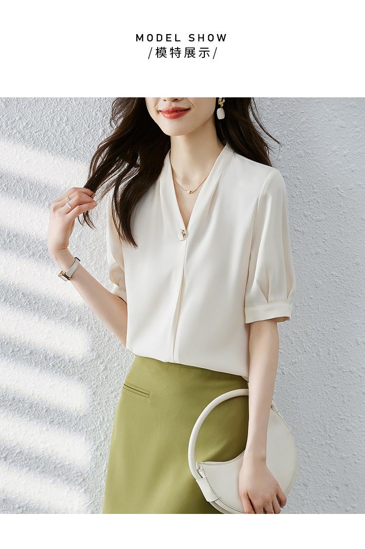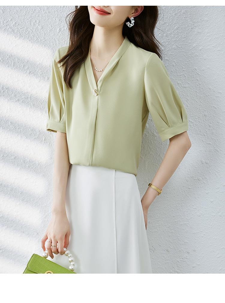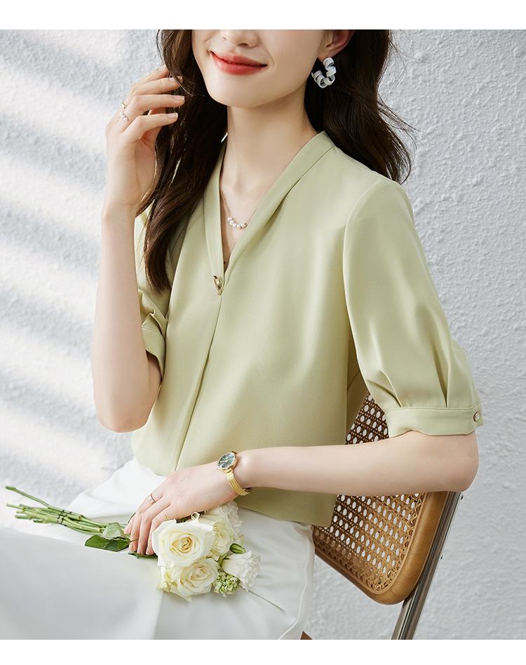 Camisa de Satén con Cuello en V Estilo Francés para Mujer Verano Nueva Elegante Ropa de Trabajo Ropa de Trabajo Profesional Camisa de Manga Corta a la Moda