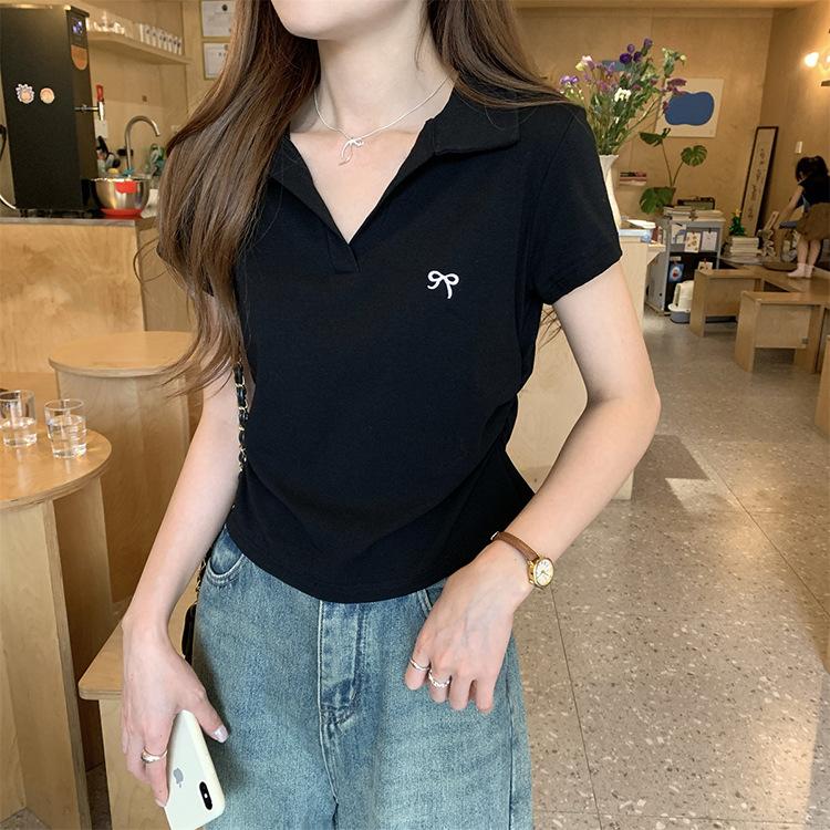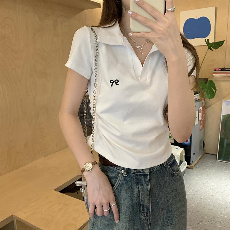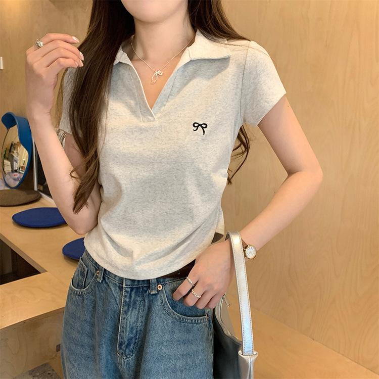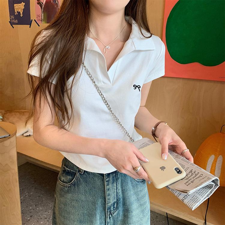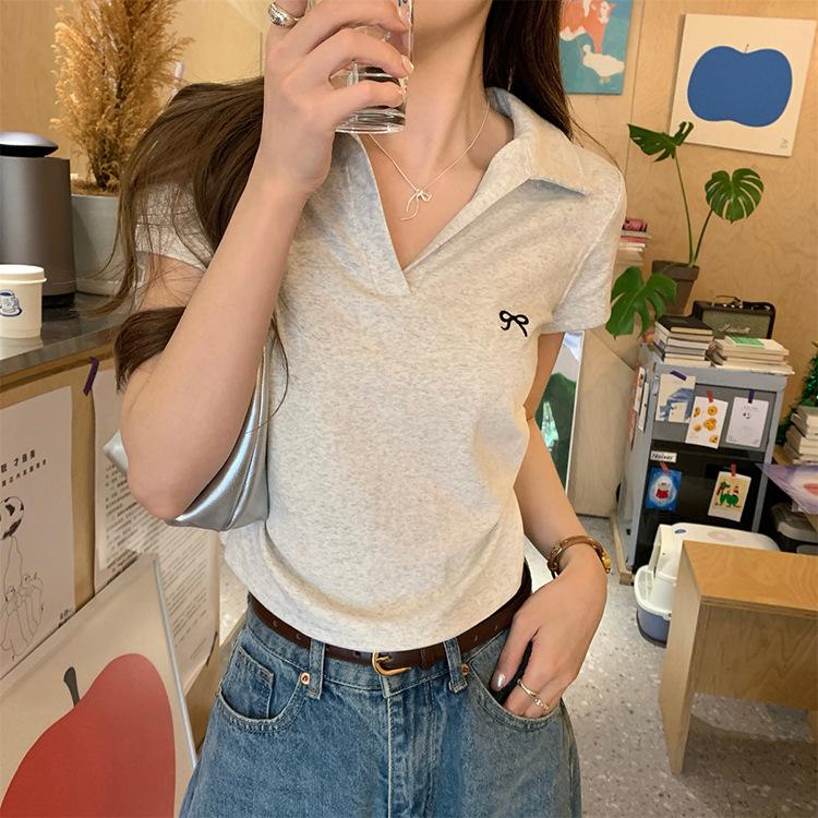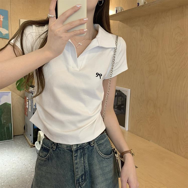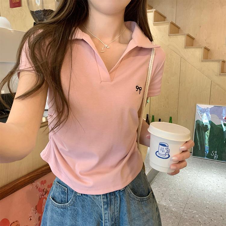 Playera Polo de Manga Corta para Mujer 2025 Verano Nuevo Diseño Nicho Dulce Hottie Casual Algodón Top