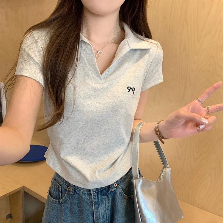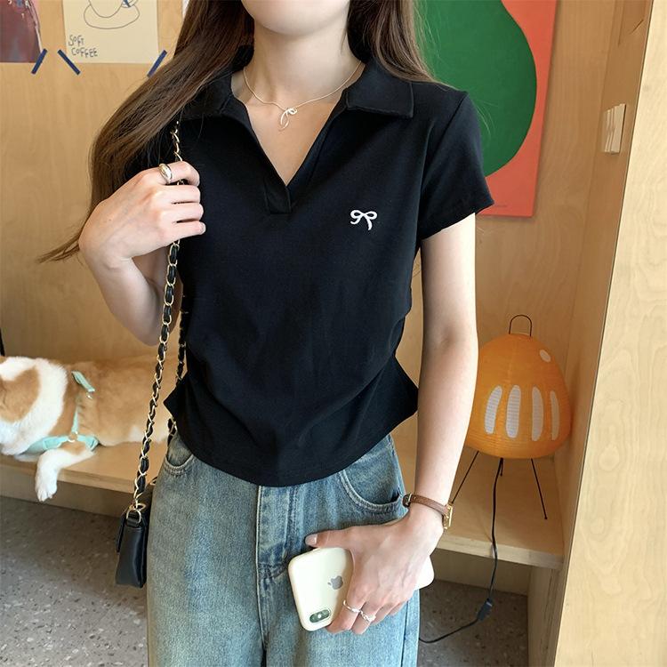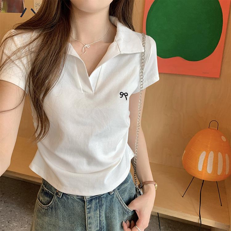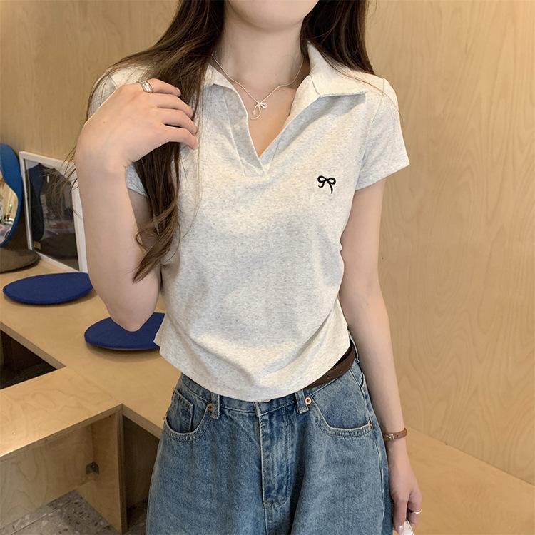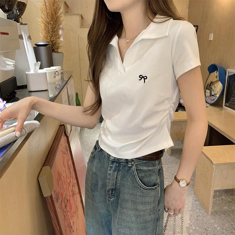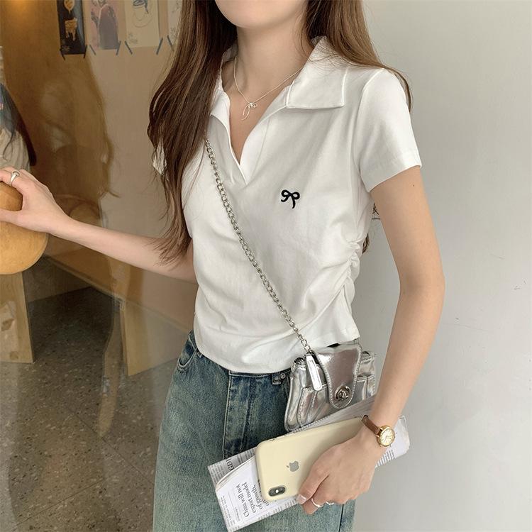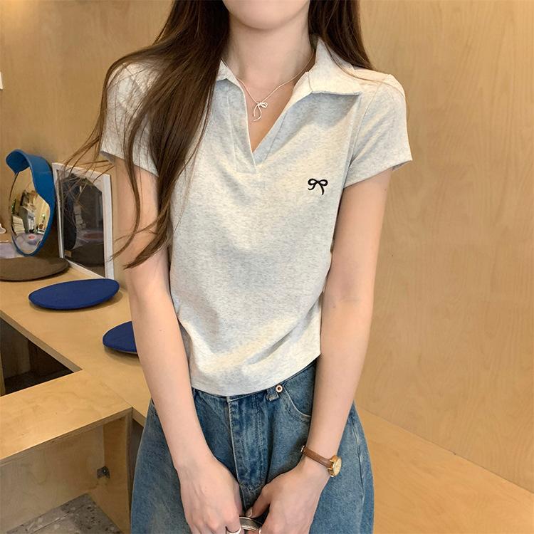 Playera Polo de Manga Corta para Mujer 2025 Verano Nuevo Diseño Nicho Dulce Hottie Casual Algodón Top