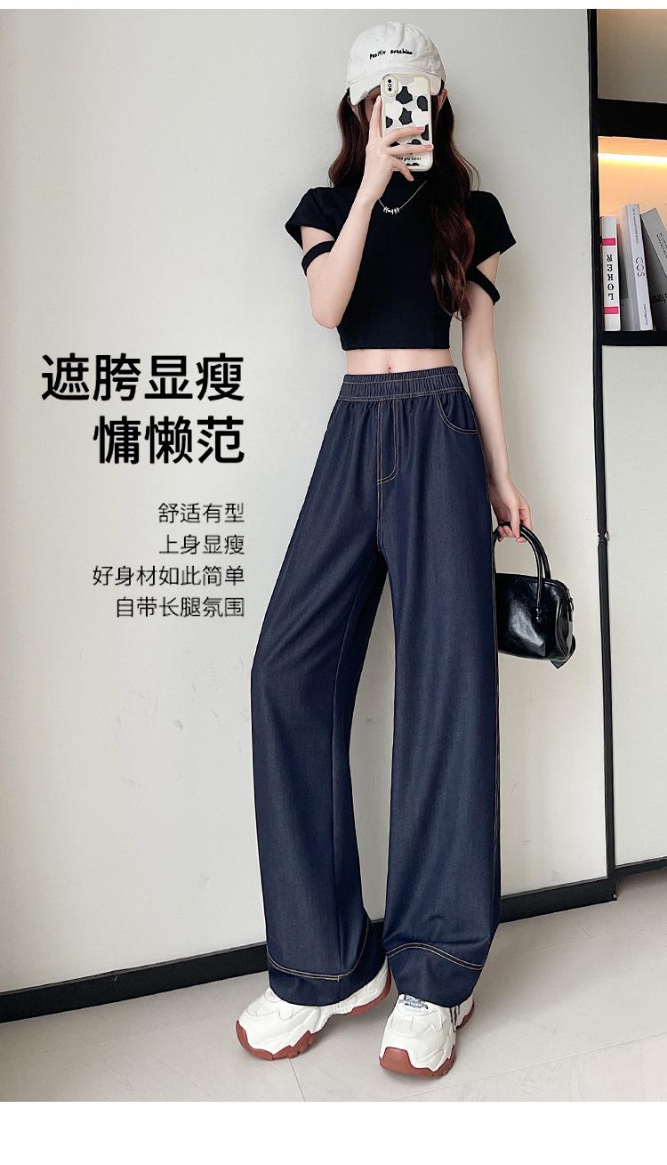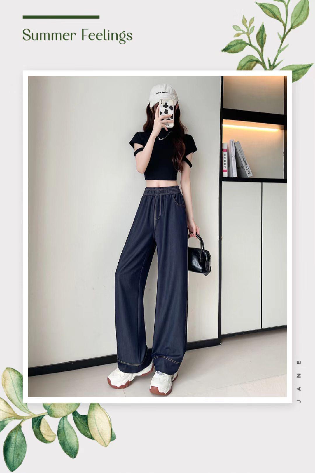 Jeans Retro de Pierna Ancha de Tencel para Mujer Verano Delgados 2025 Nuevos Casuales de Cintura Alta Holgados Versátiles Pantalones Rectos