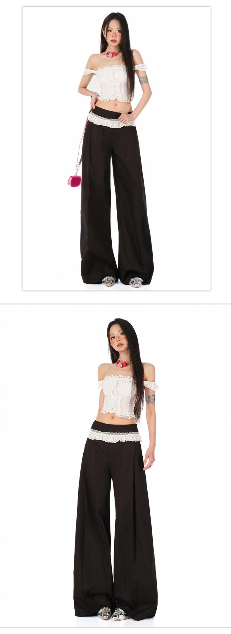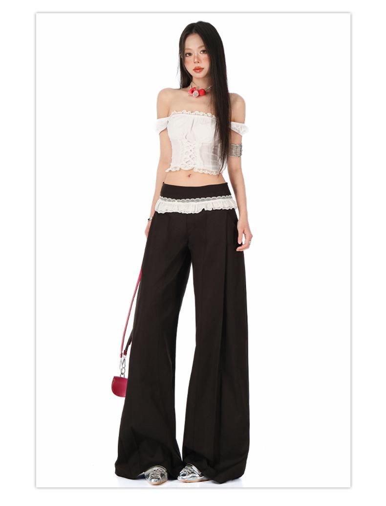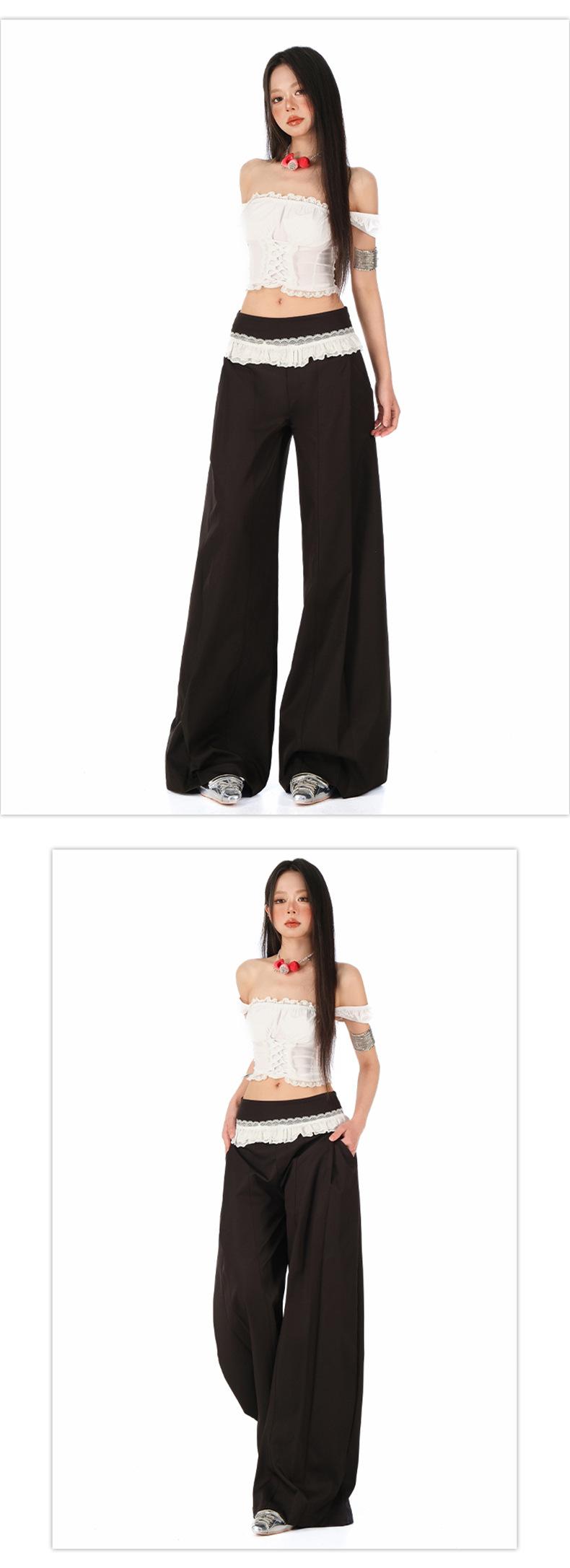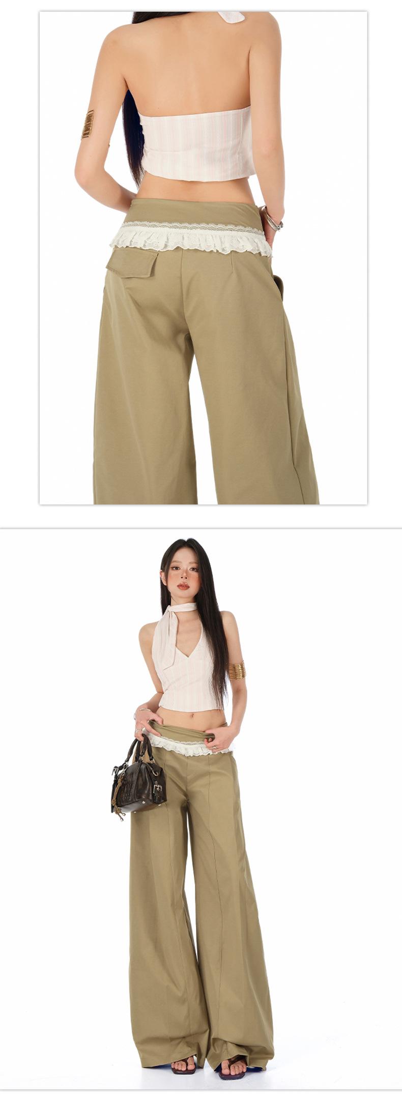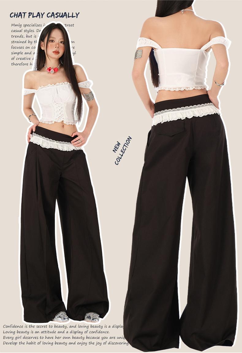 Ropa de Mujer de Seda Naranja# Pantalones Casuales con Costuras de Encaje Retro Americano para Mujer Verano 2025 Pantalones Holgados Plisados de Pierna Ancha