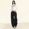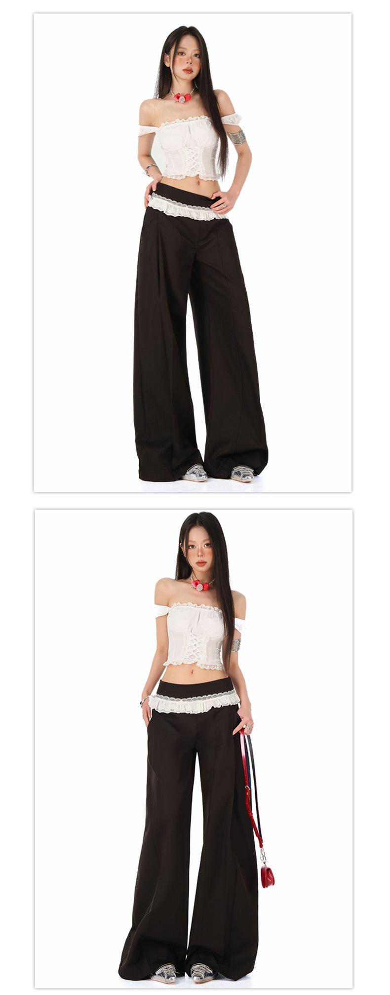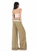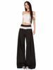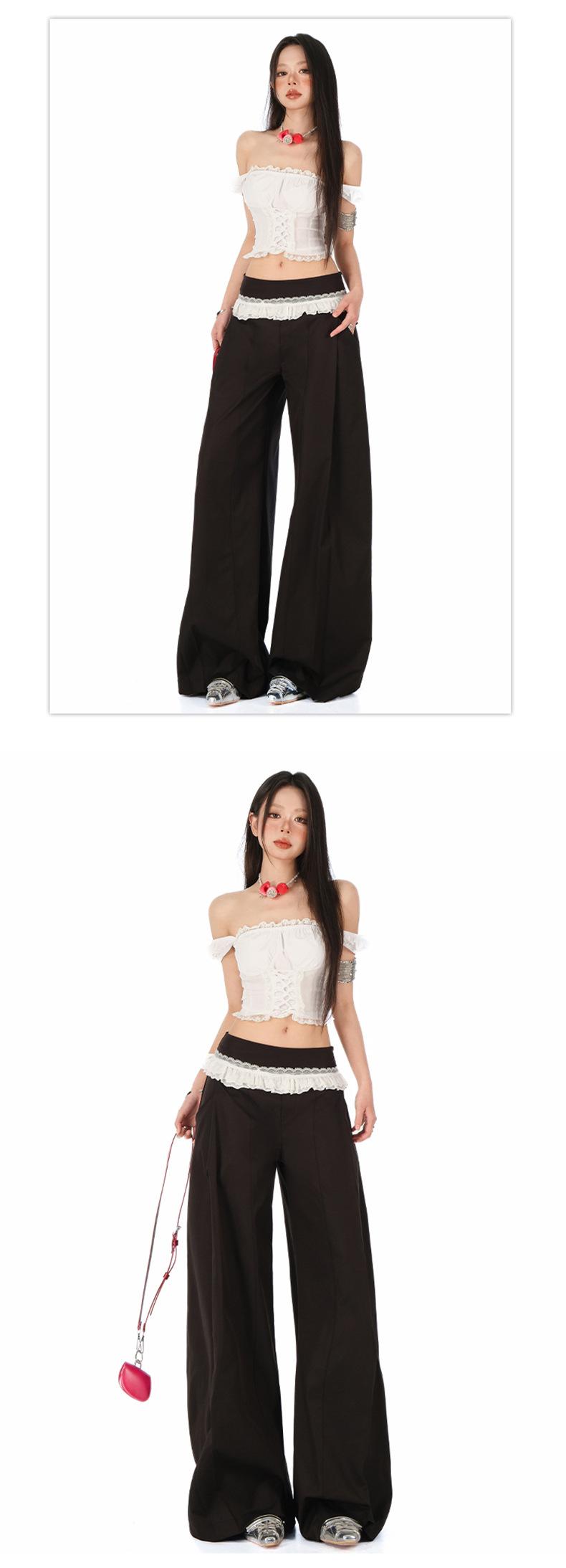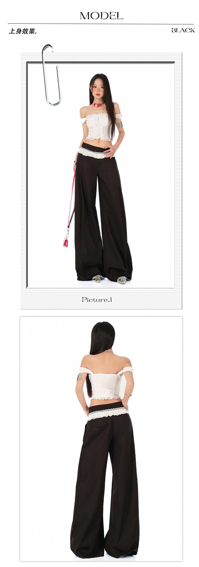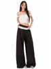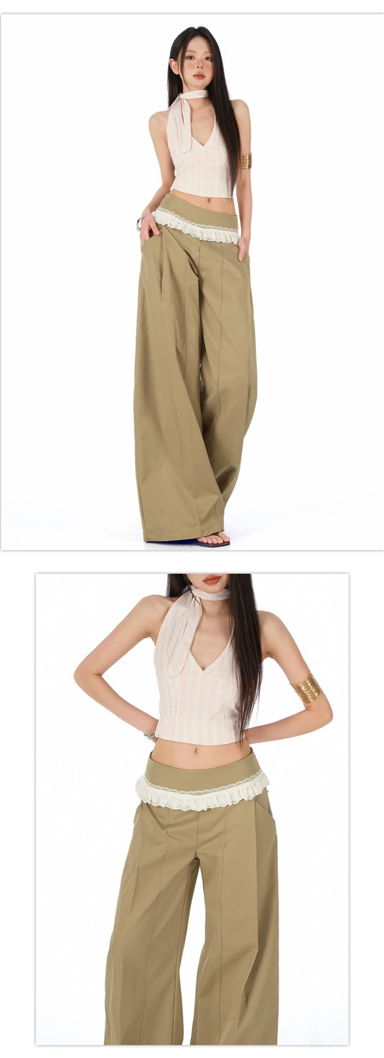 Ropa de Mujer de Seda Naranja# Pantalones Casuales con Costuras de Encaje Retro Americano para Mujer Verano 2025 Pantalones Holgados Plisados de Pierna Ancha