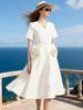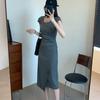 Vestido de gasa con escote en V y manga larga para mujer, primavera y otoño de 2025, con cintura francesa, falda floral negra de alta gama