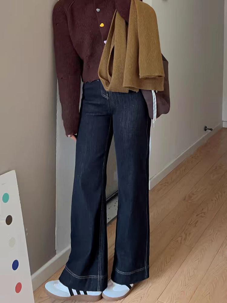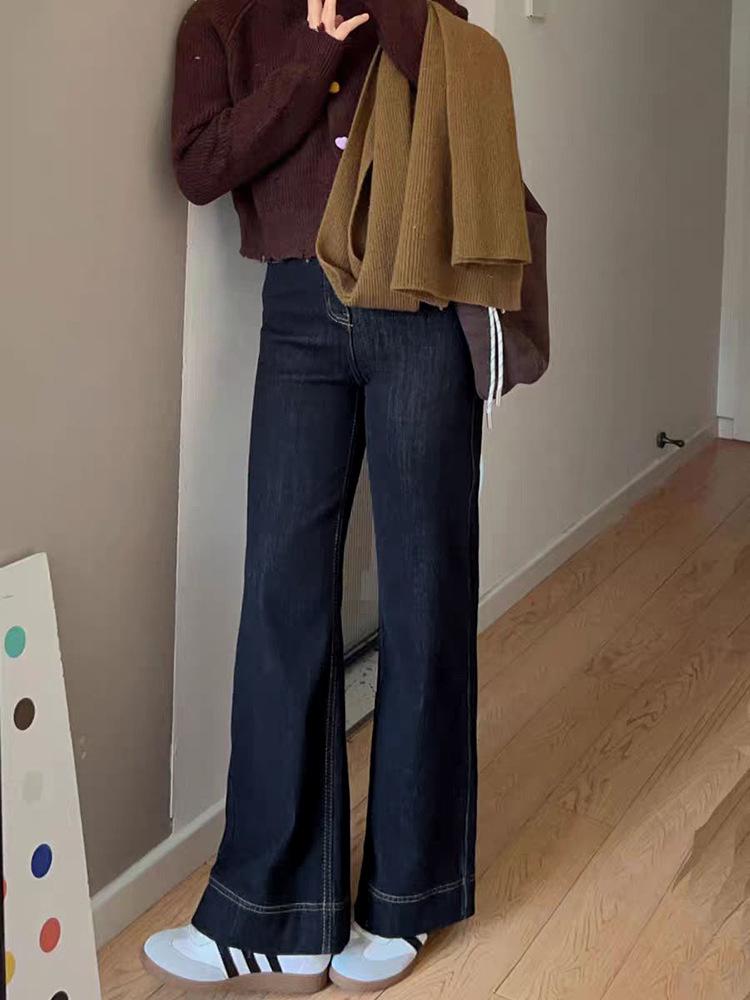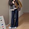 Pantalones vaqueros de pierna ancha para mujer, primavera y otoño 2025, recién llegados, talla grande, para chicas gorditas, cintura alta, adelgazantes, pantalones rectos sueltos