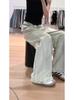 Pantalones vaqueros de pierna ancha lavados de color claro vintage para mujer, primavera y otoño 2025, nuevos pantalones rectos holgados y adelgazantes de cintura alta