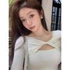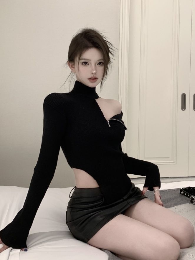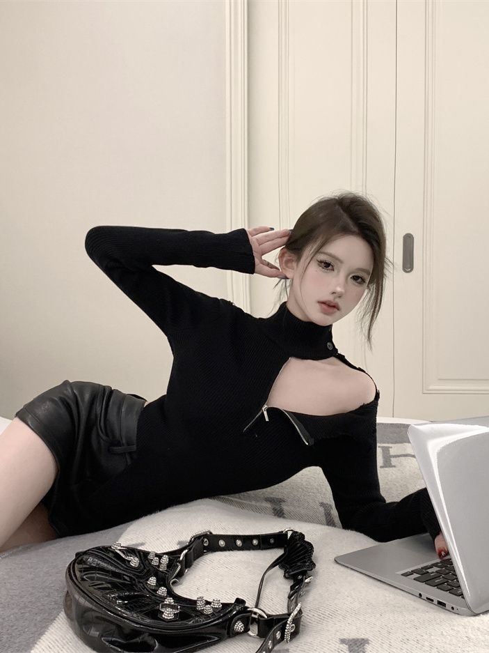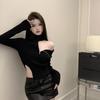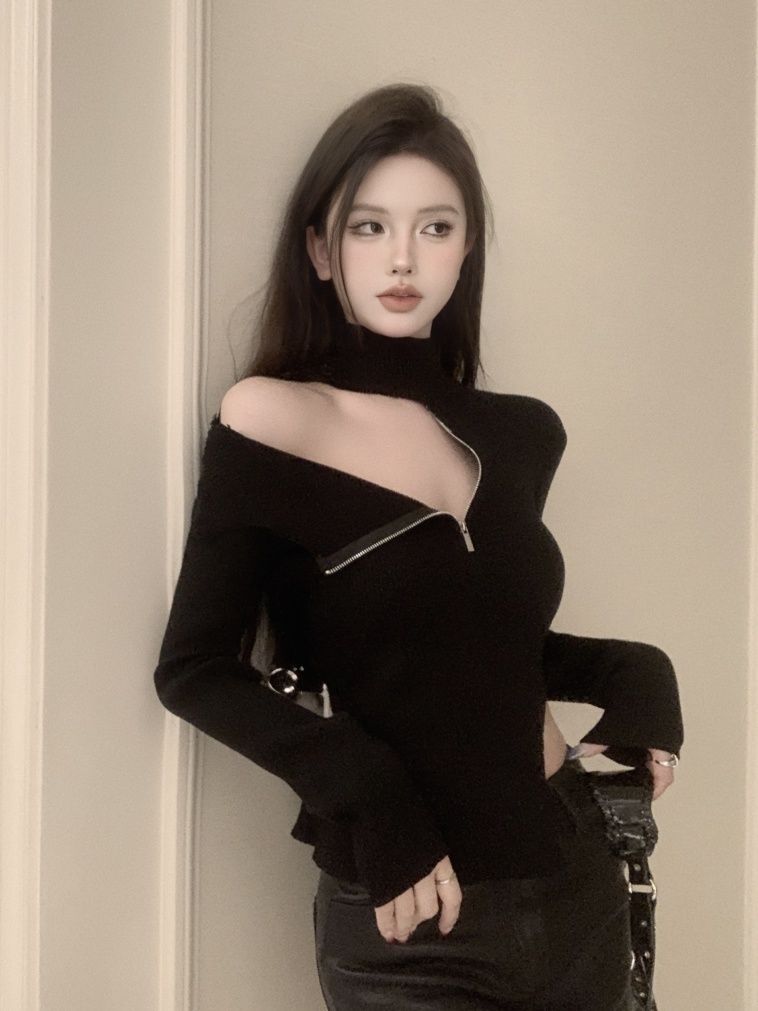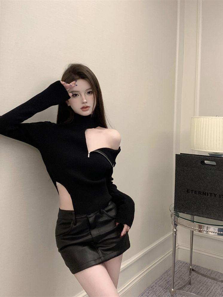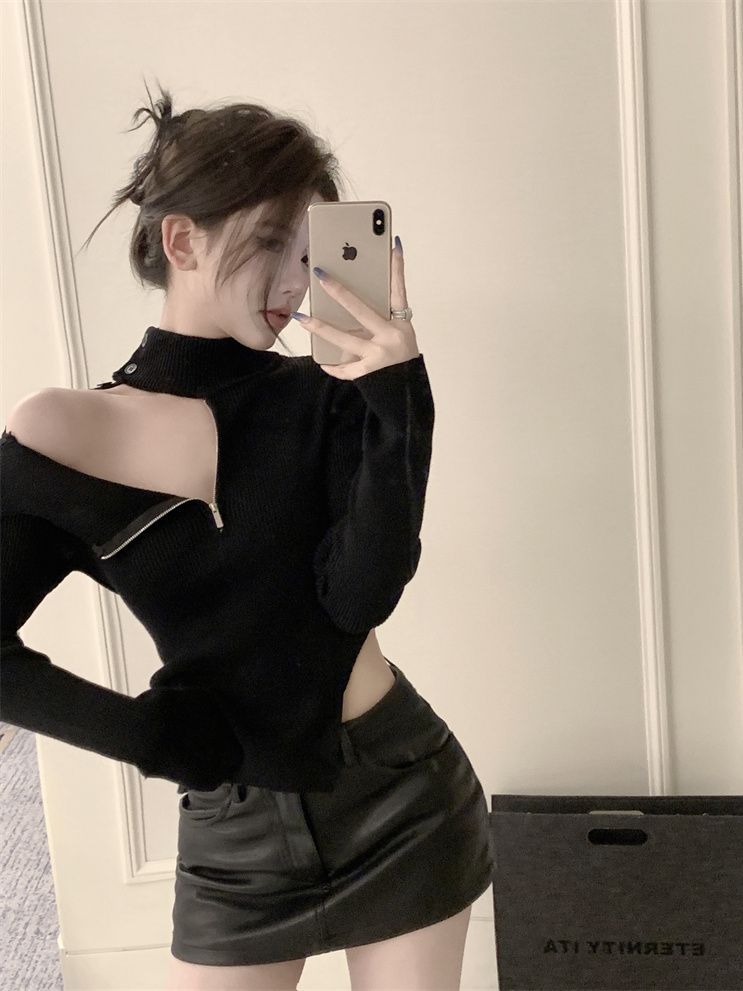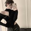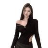 Camiseta de manga larga de punto con hombros descubiertos y diseño sexy de Spice Girl, estilo entallado y adelgazante, para mujer