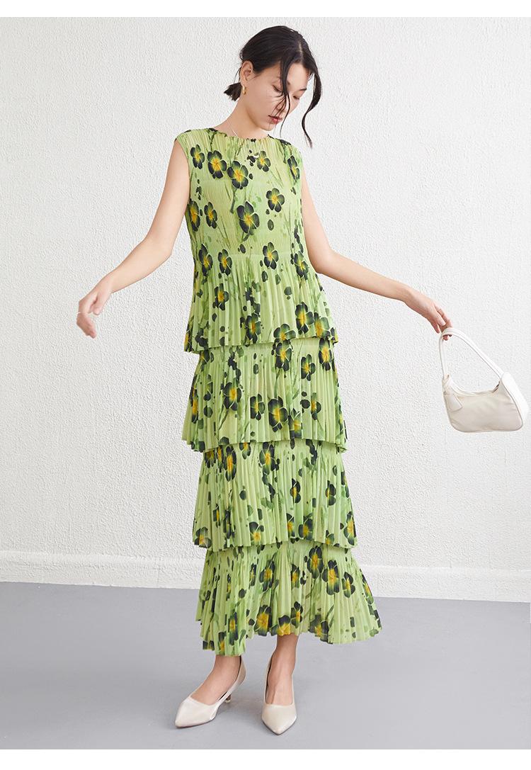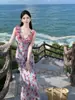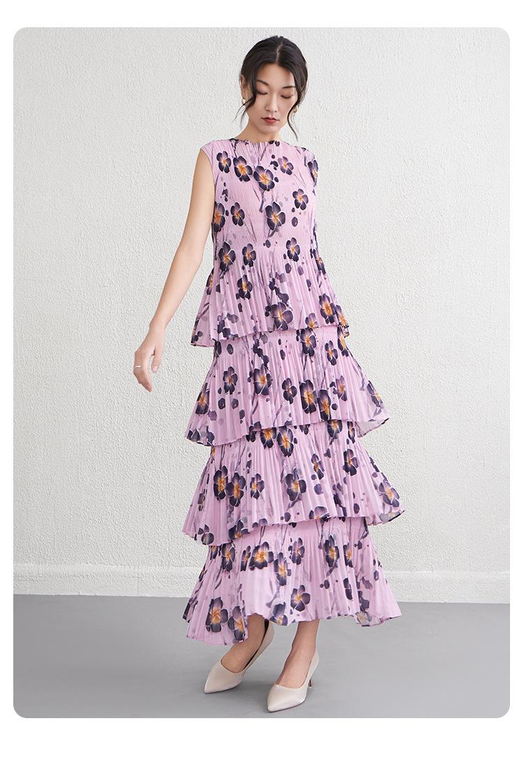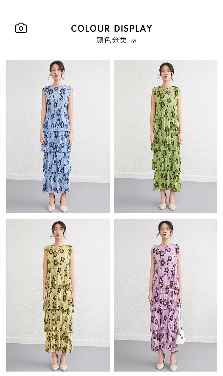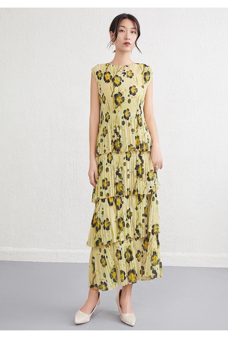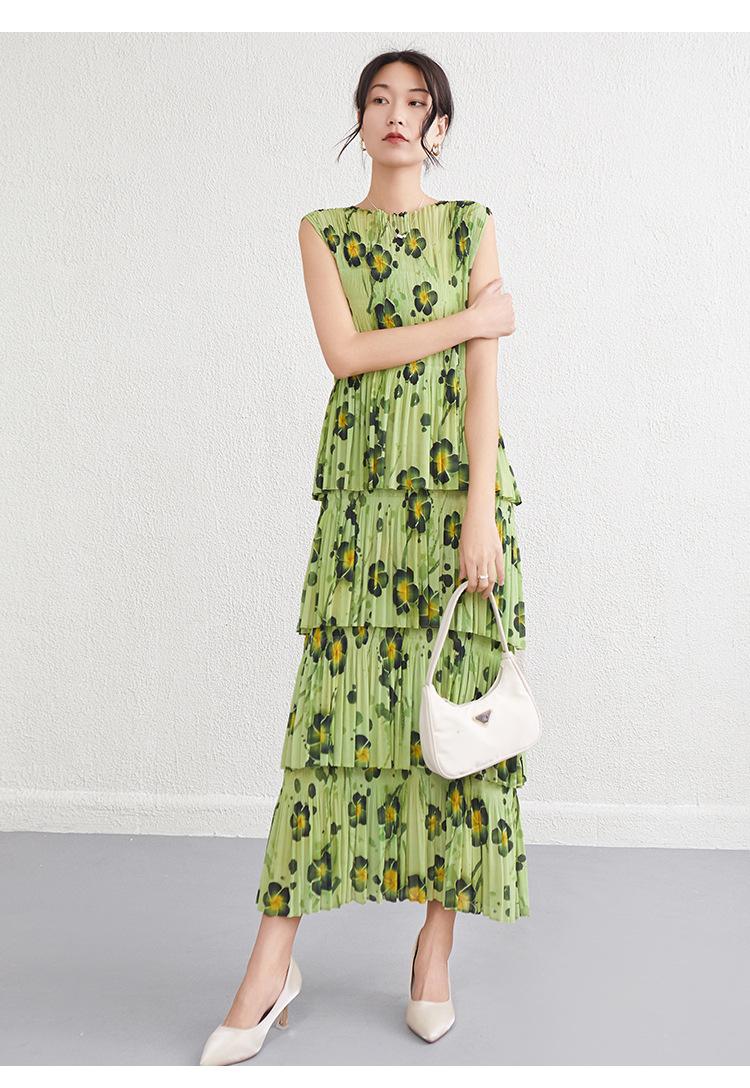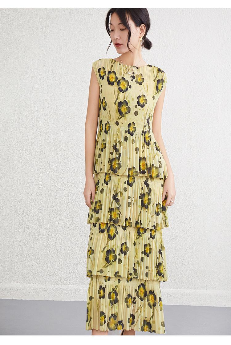 Vestido largo floral retro francés nuevo de verano para mujer, ropa de alta gama para mujer, vestido de playa elegante y adelgazante Miyake