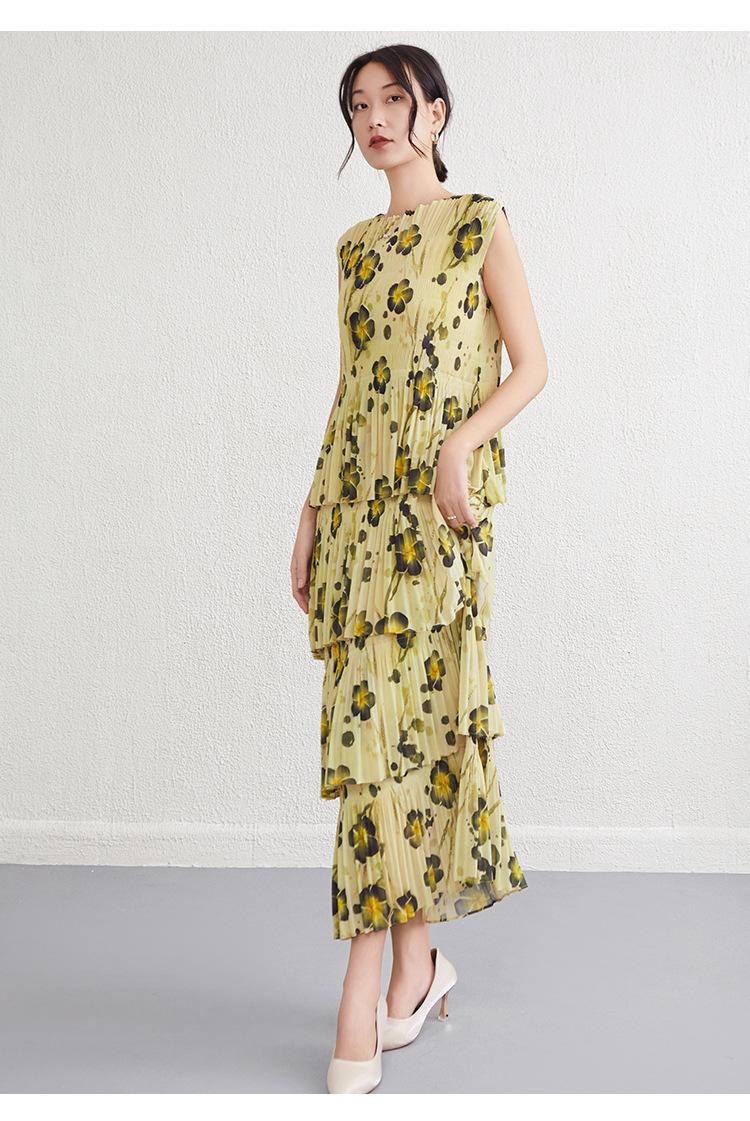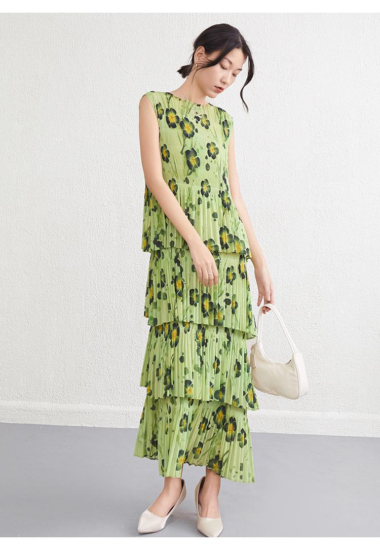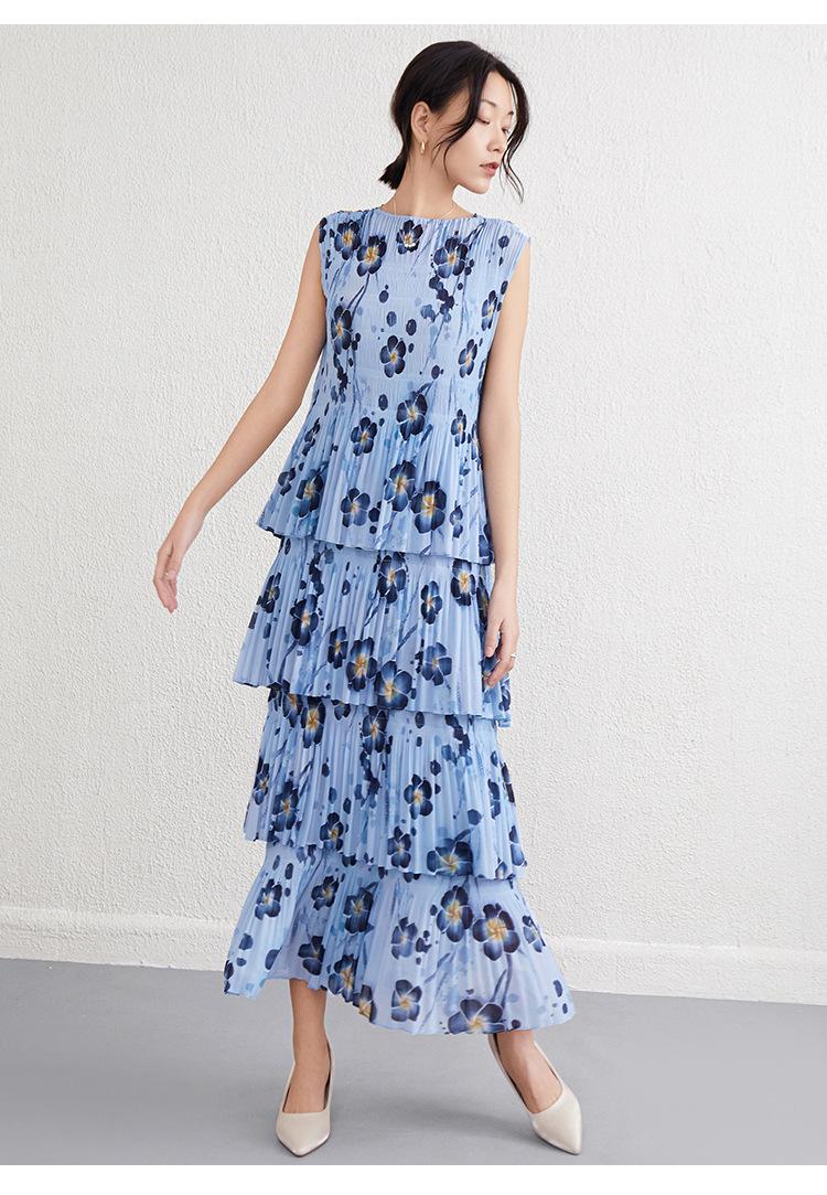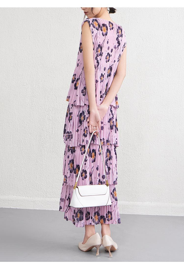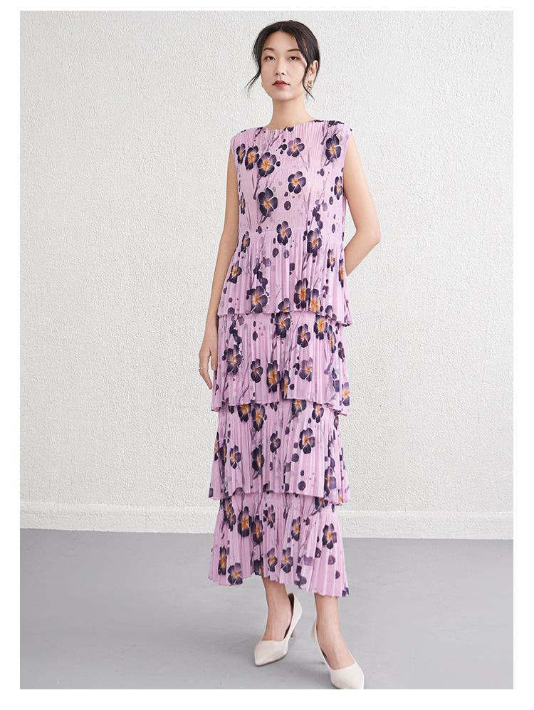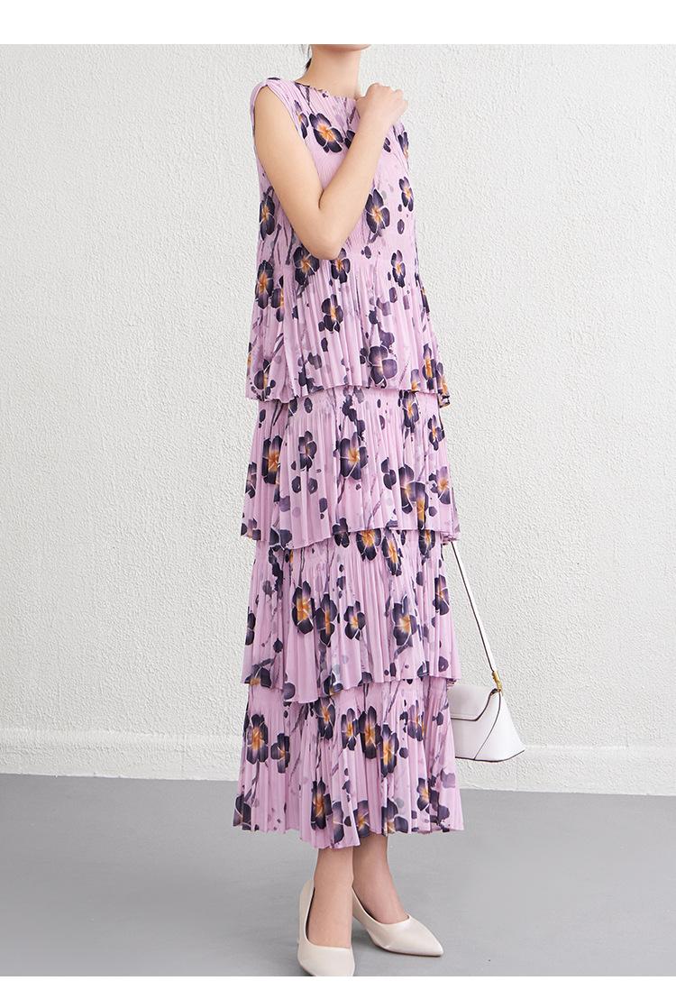 Vestido largo floral retro francés nuevo de verano para mujer, ropa de alta gama para mujer, vestido de playa elegante y adelgazante Miyake