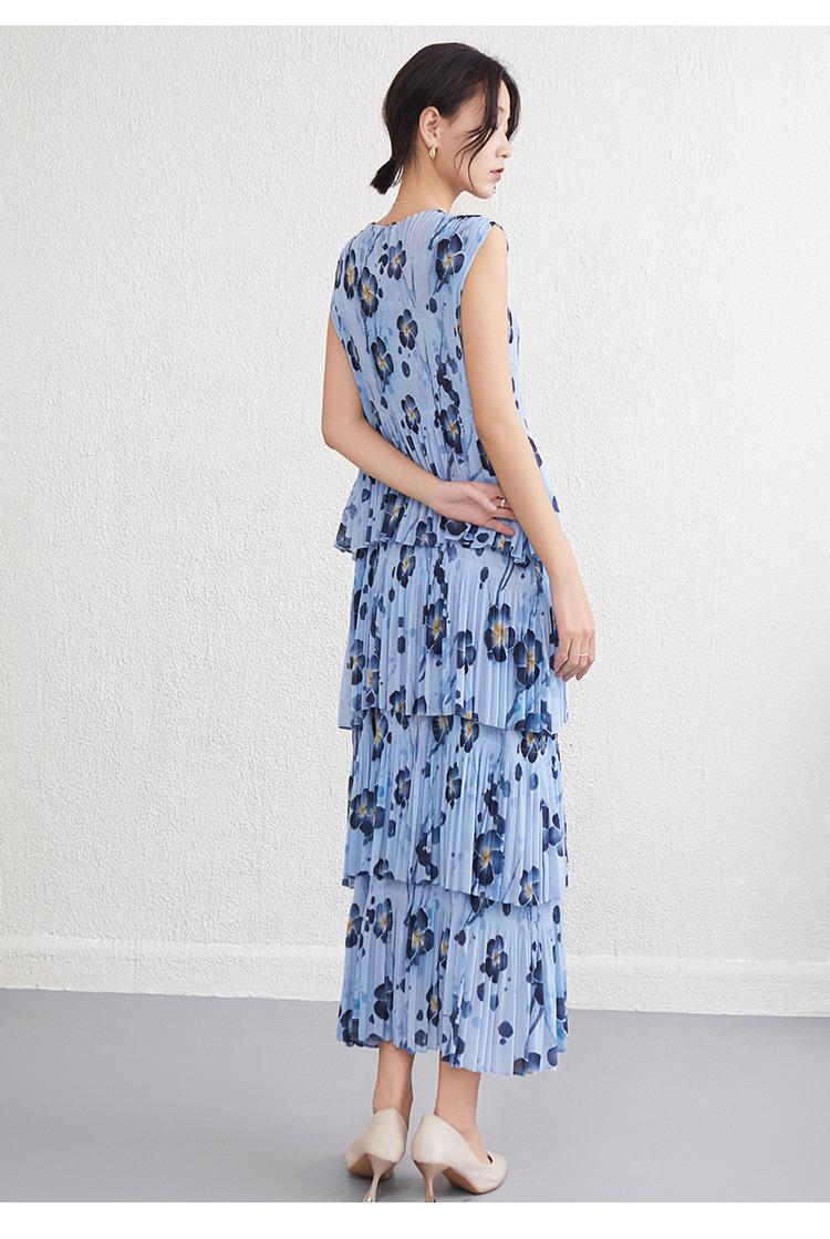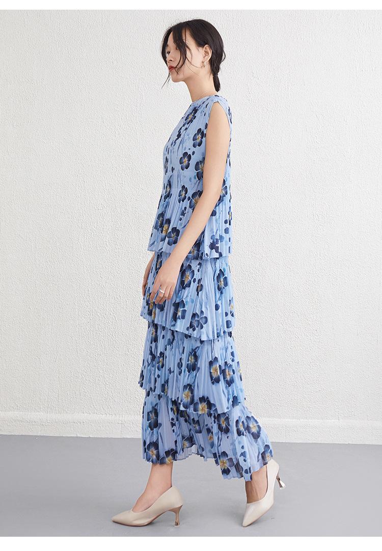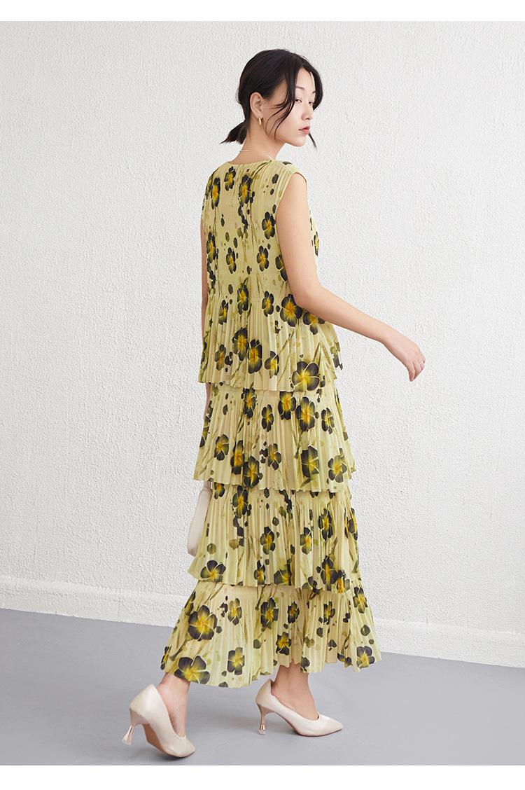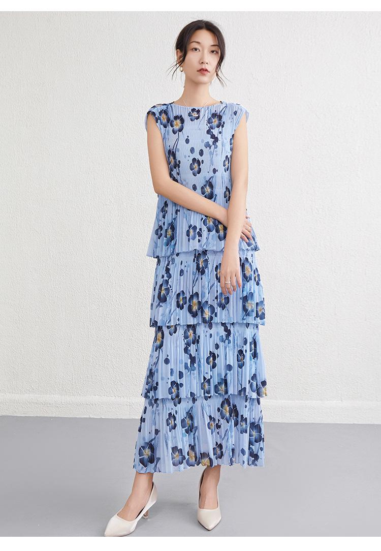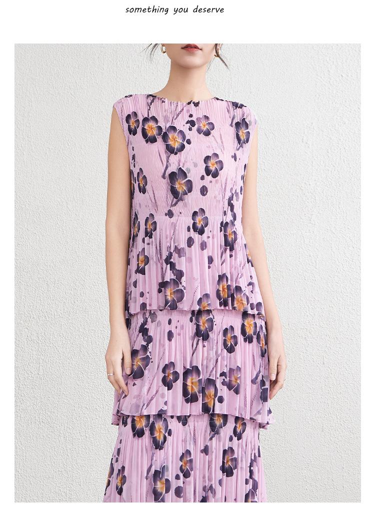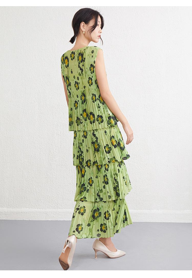 Vestido largo floral retro francés nuevo de verano para mujer, ropa de alta gama para mujer, vestido de playa elegante y adelgazante Miyake