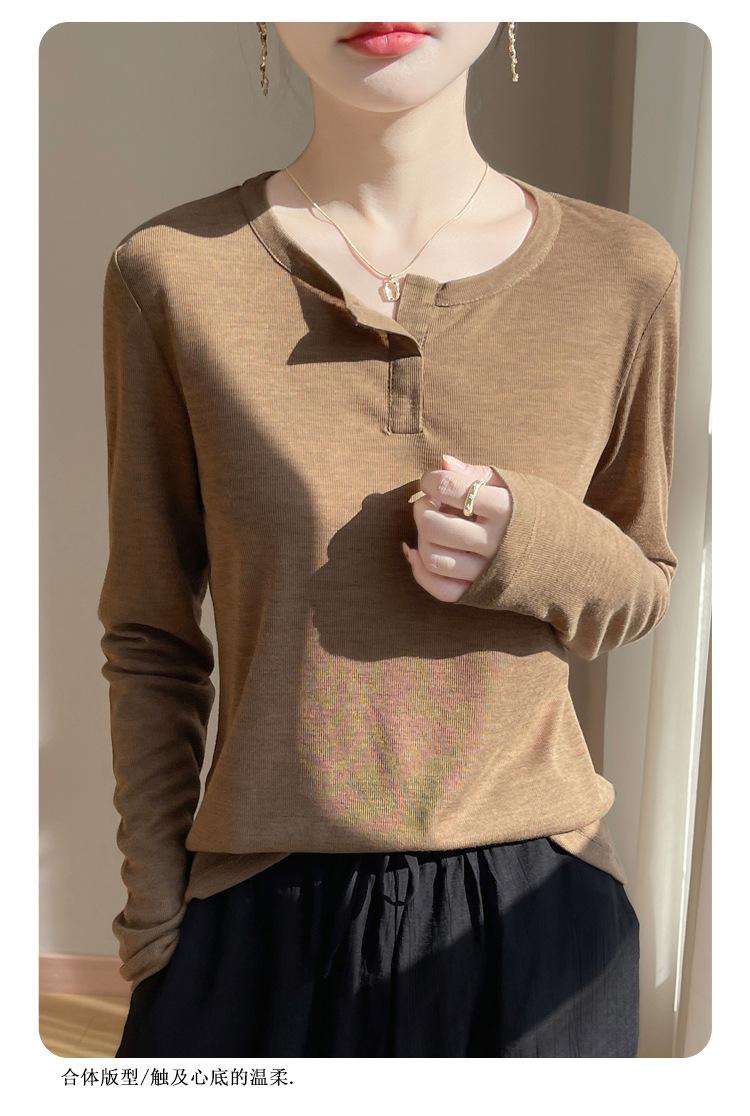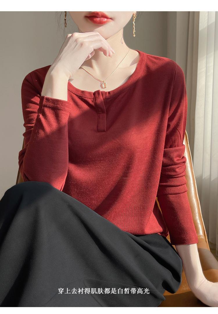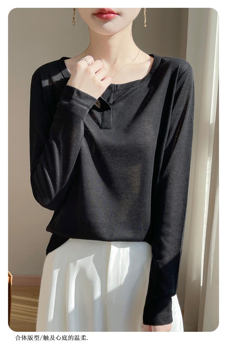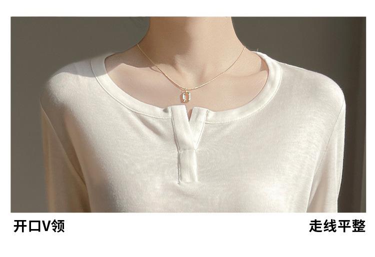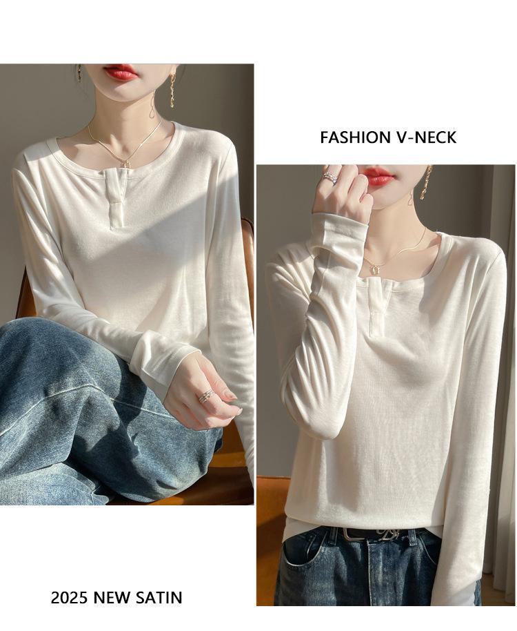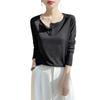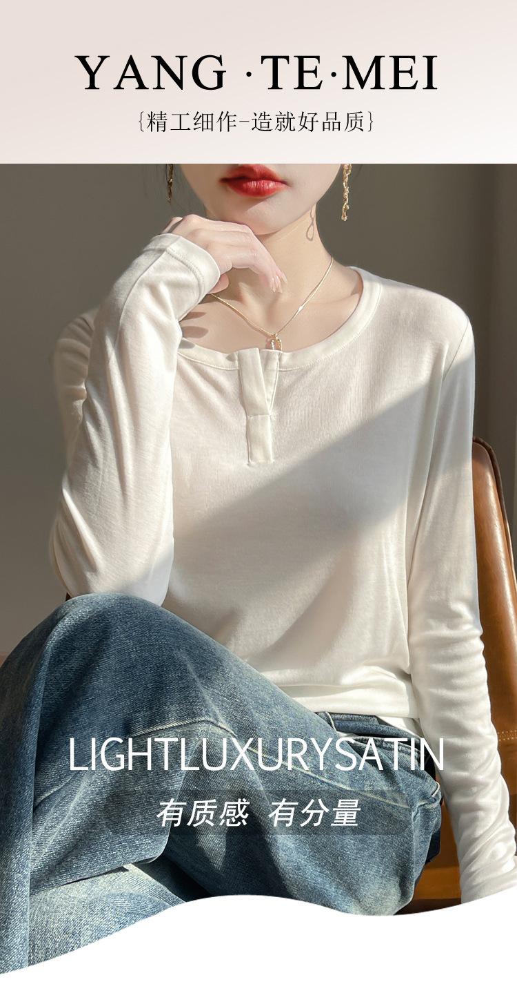 Playera de Fondo de Lyocell Transfronteriza de Cuello Redondo y Corte Slim Estilo Coreano de Manga Larga para Verano 2025 Nueva Ropa de Punto para Mujer