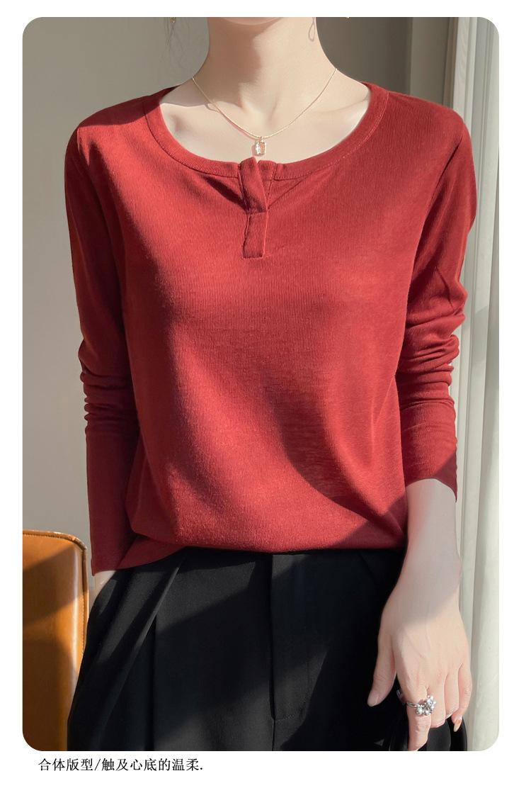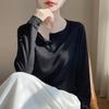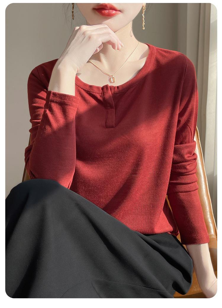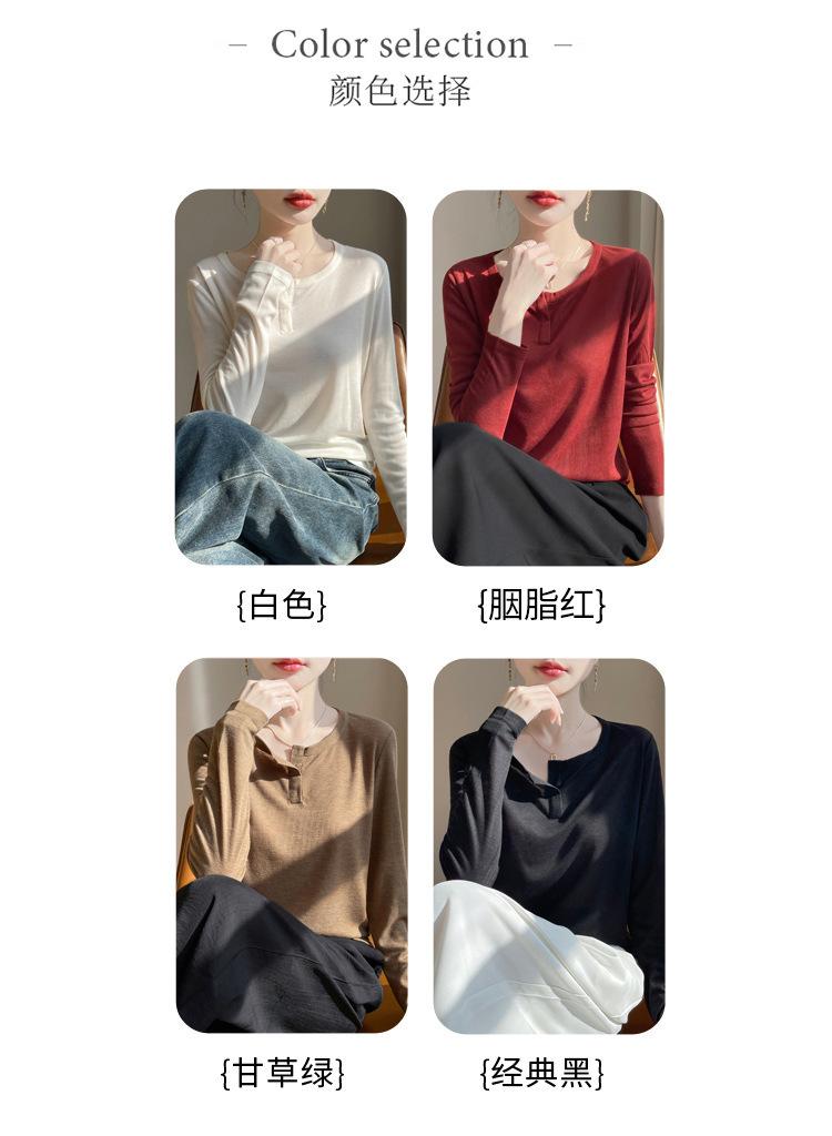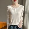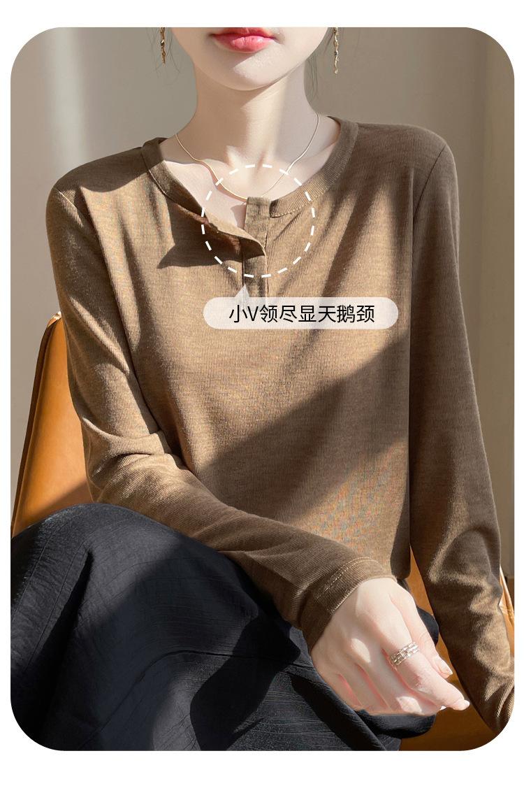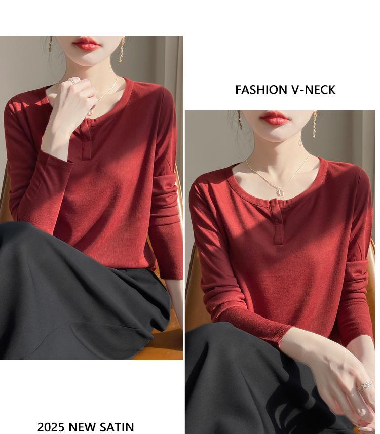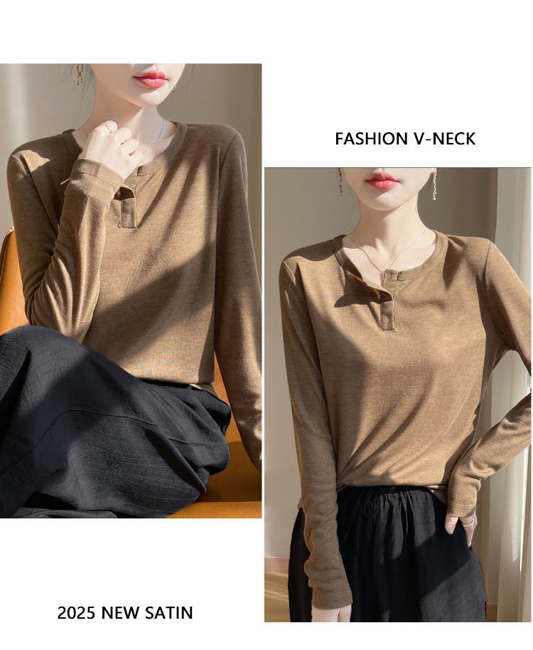Playera de Fondo de Lyocell Transfronteriza de Cuello Redondo y Corte Slim Estilo Coreano de Manga Larga para Verano 2025 Nueva Ropa de Punto para Mujer