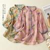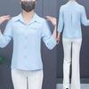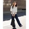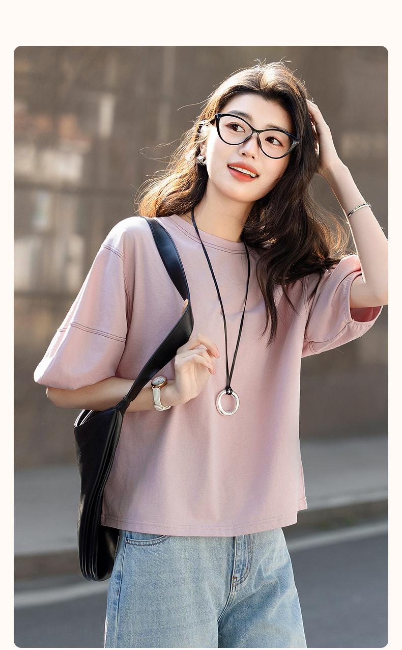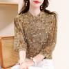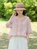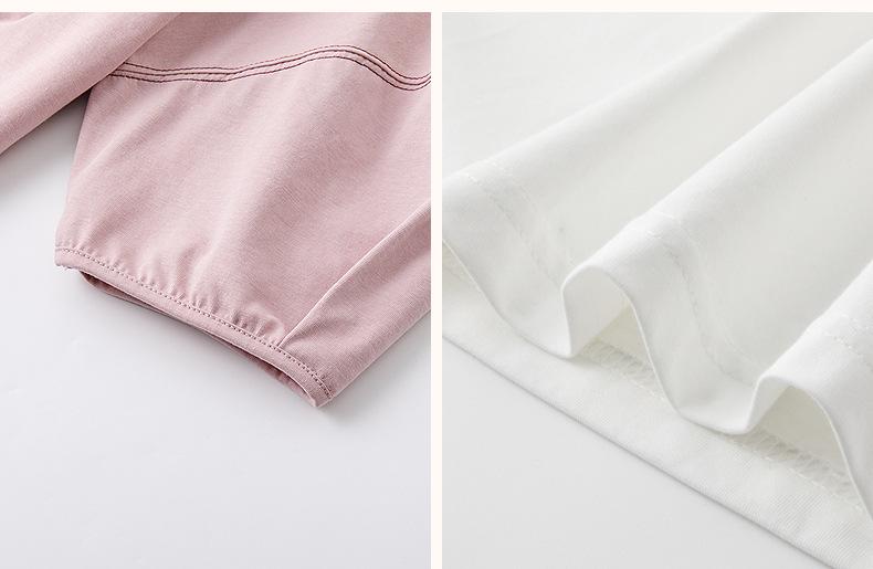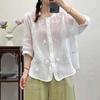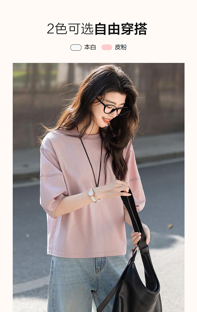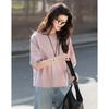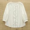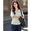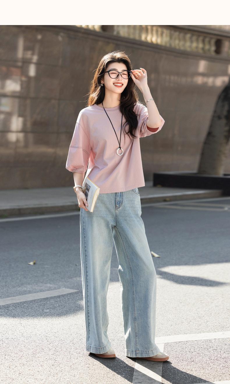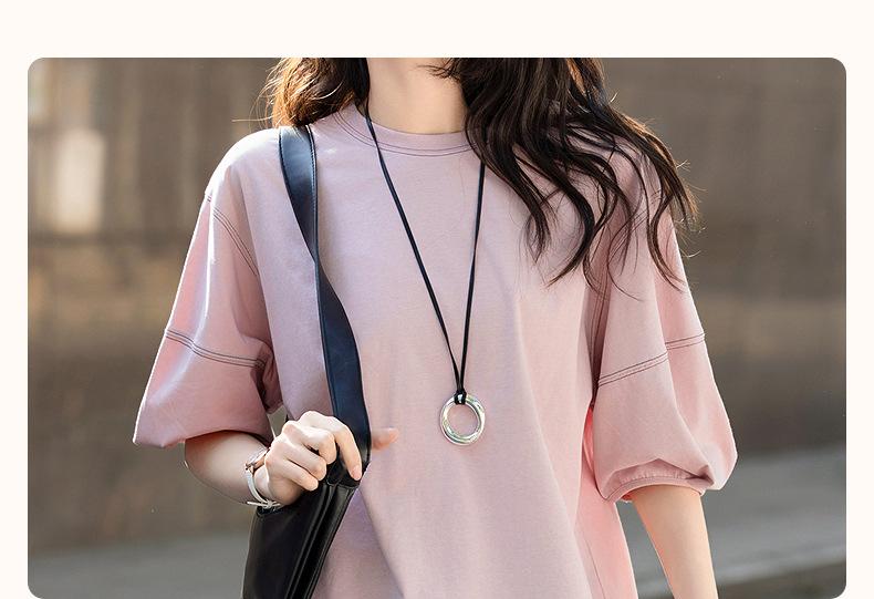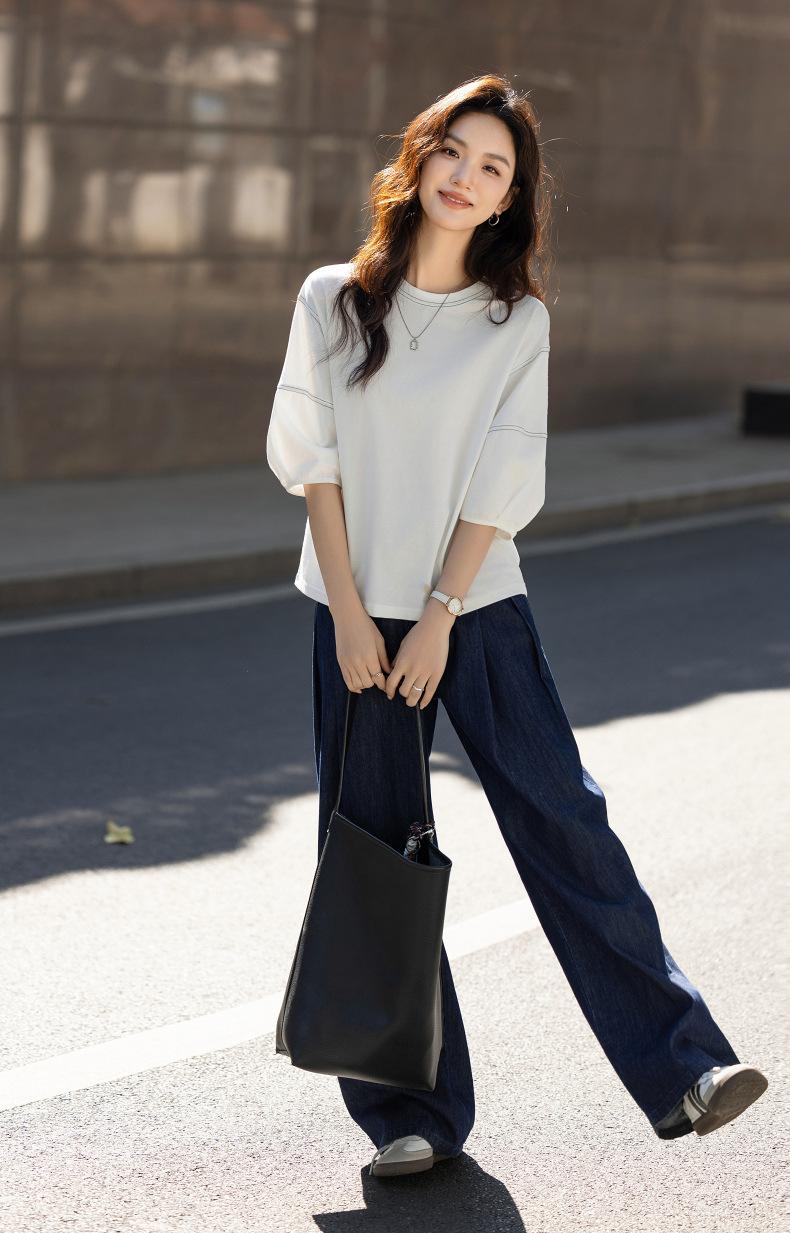 Demana Blusa de Manga Tres Cuartos para Mujer 2025 Primavera y Verano Nueva Cuello Redondo Línea de Contraste Decorativa Casual Manga Linterna