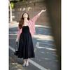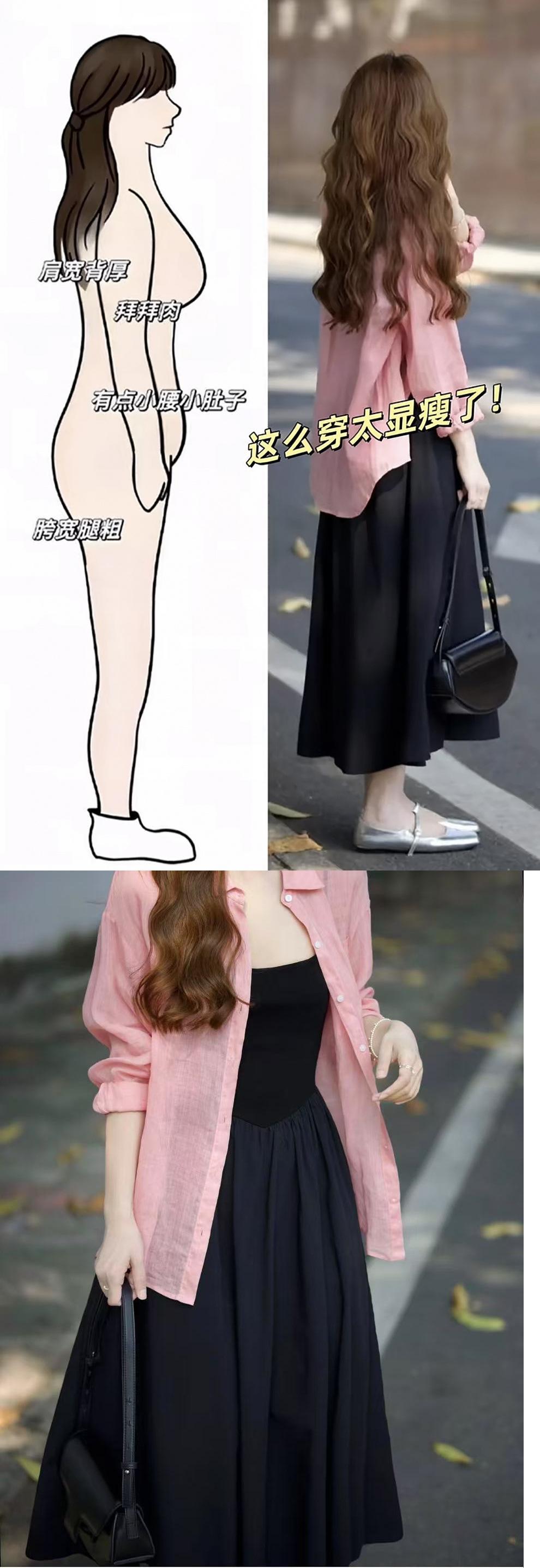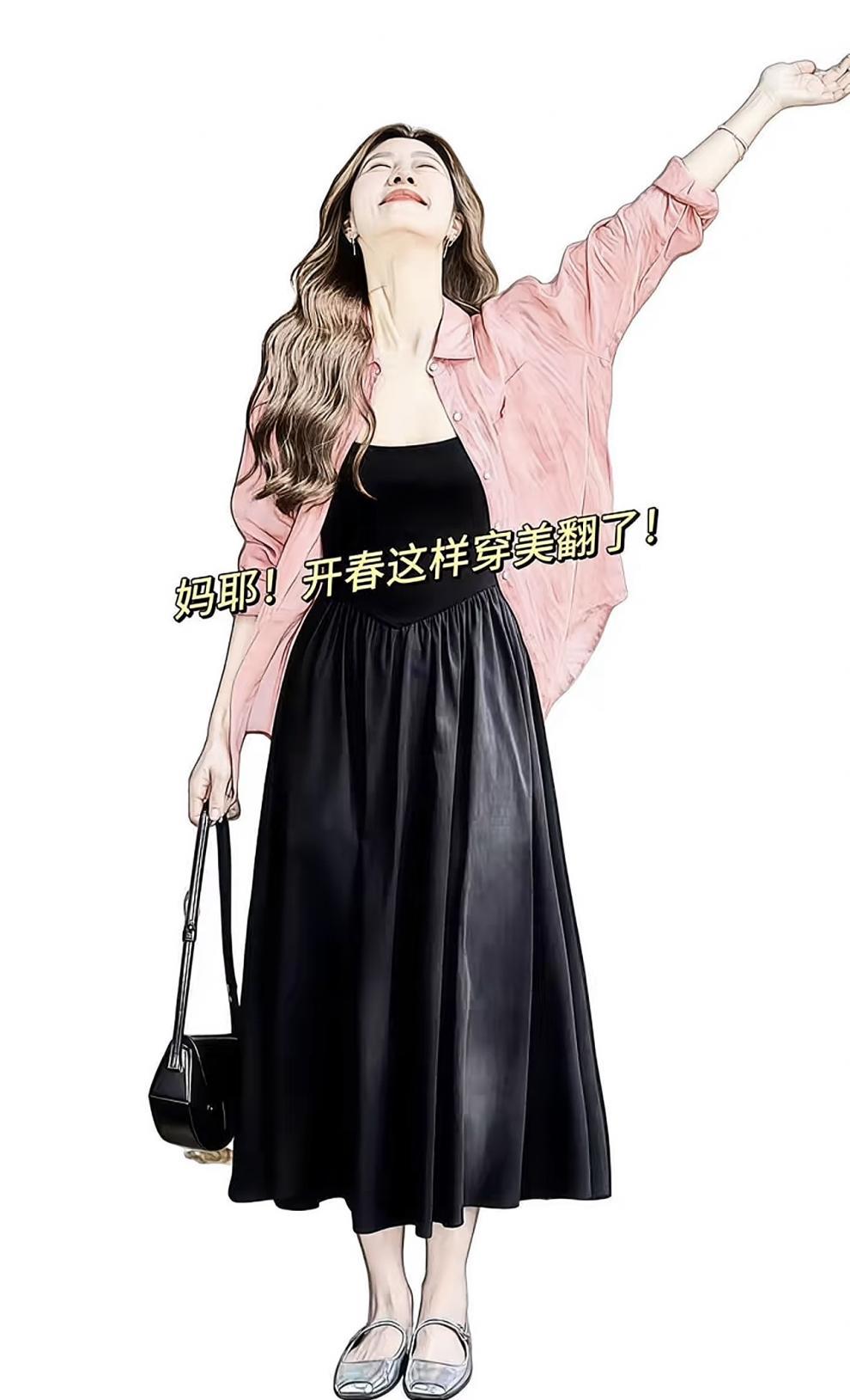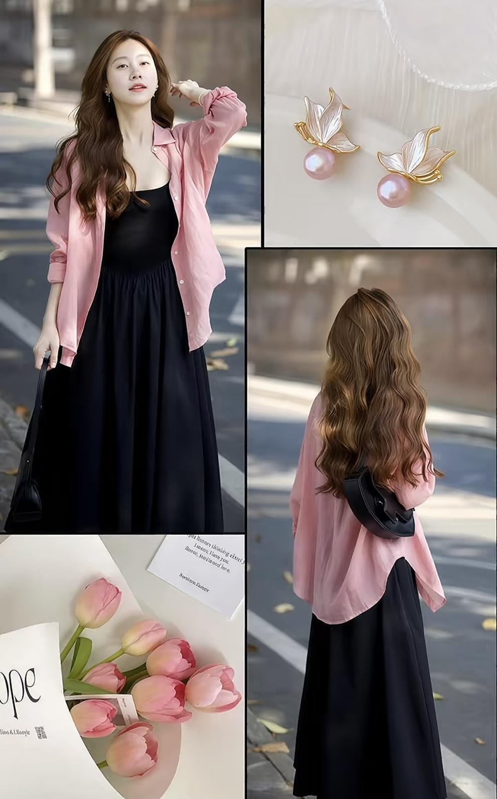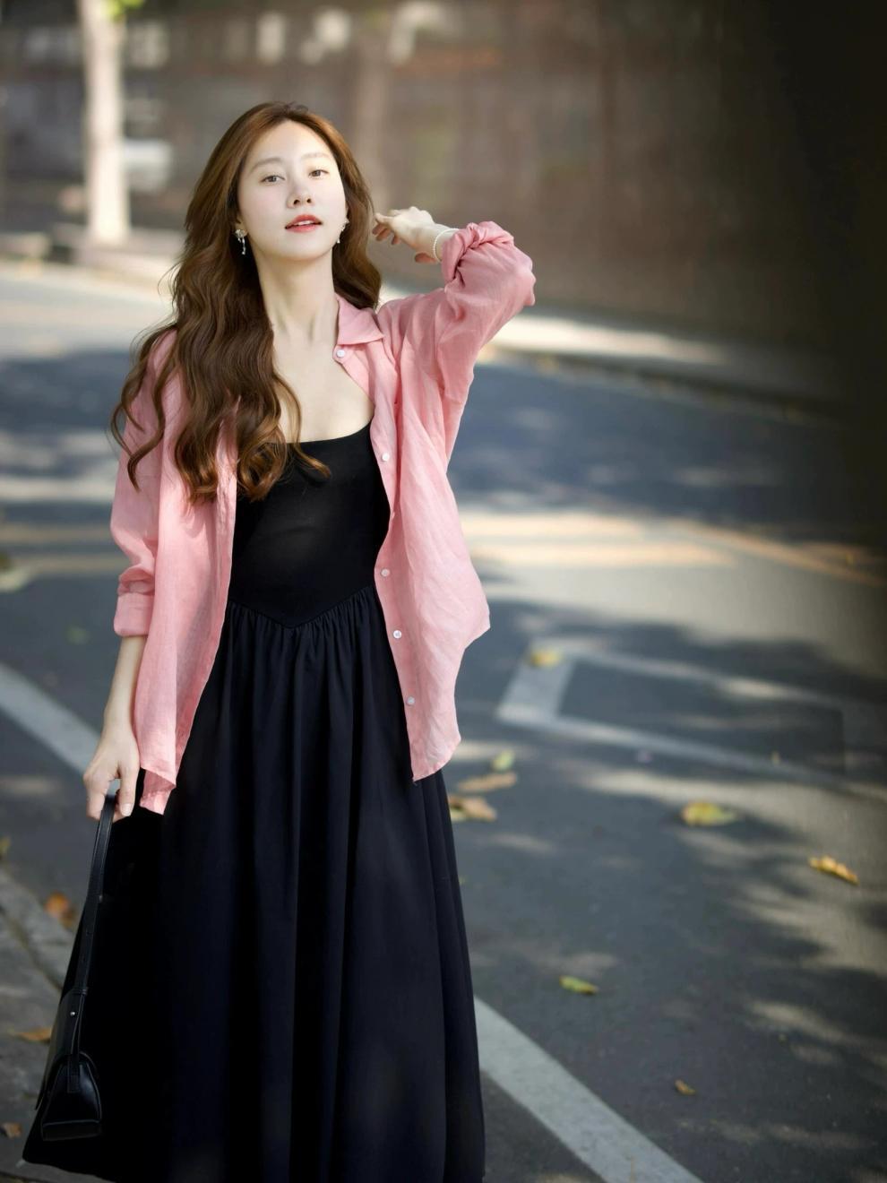 Pink shirt, Black sundress, Pink shirt + black sundress suit