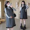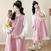 En stock 2025 nuevo vestido de maternidad adelgazante para mujeres embarazadas chaleco falda + camisa de algodón traje de dos piezas de talla grande para mujeres embarazadas
