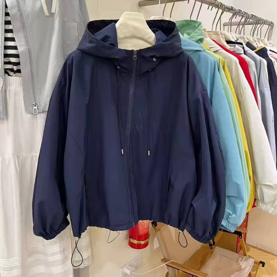 25 Chaqueta Cortavientos Holgada Adelgazante con Capucha para Protección Solar de Primavera y Verano para Mujer Estilo Casual Versátil para Viajar