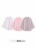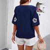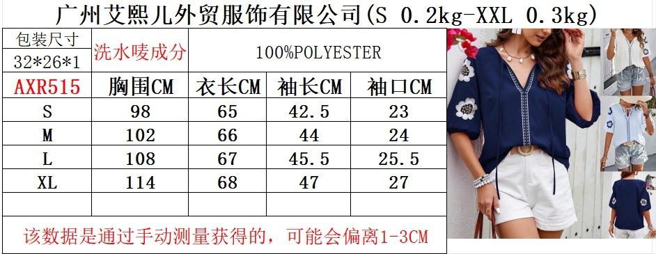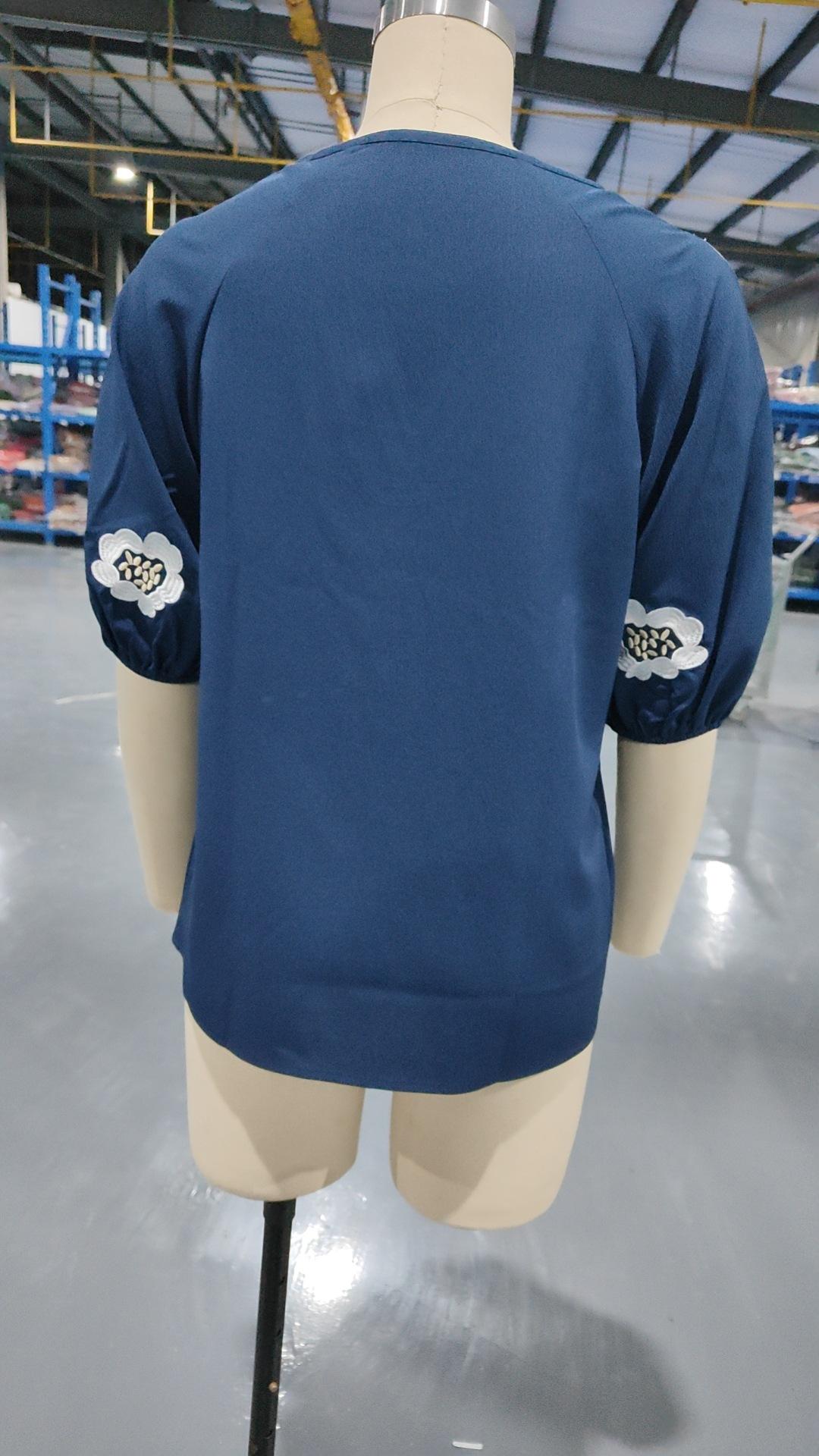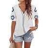 Camisa de manga larga con cuello en V bordado, color liso, holgada, para mujer, primavera y verano 2025, estilo europeo y americano.