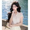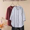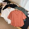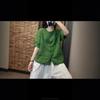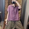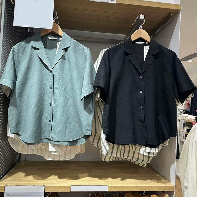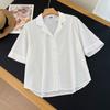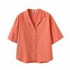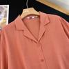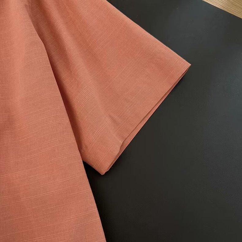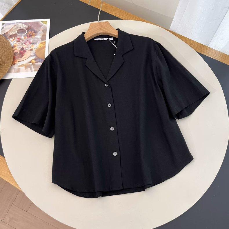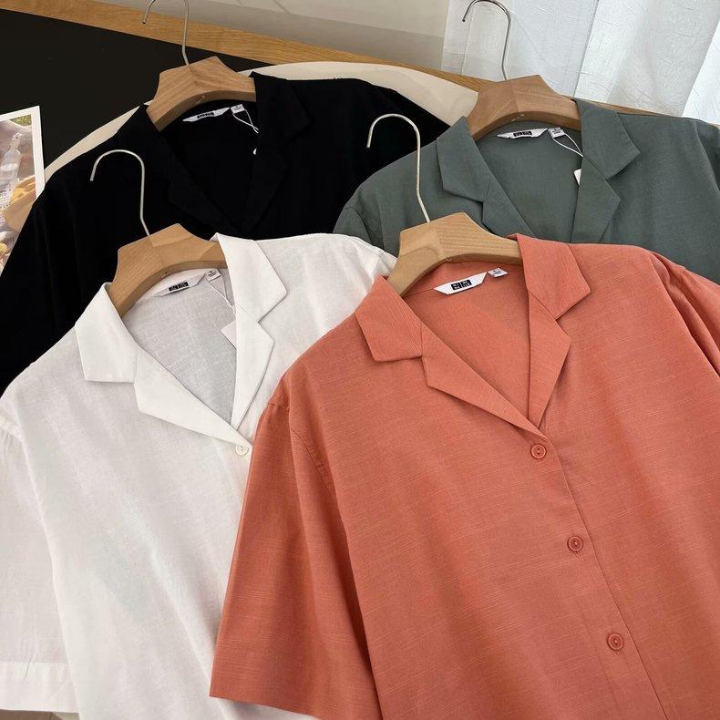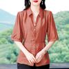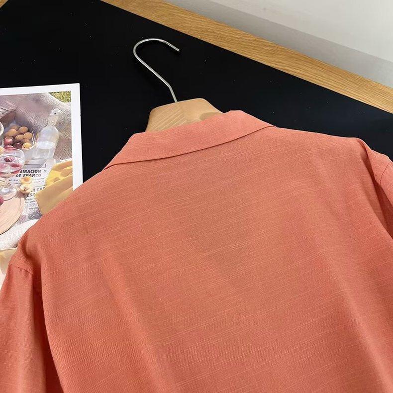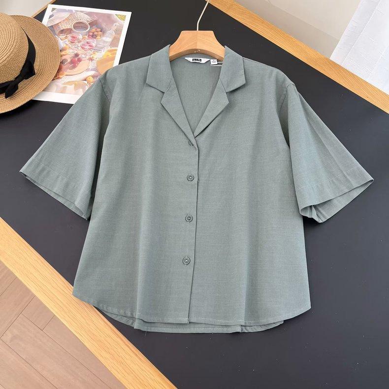 2025 Primavera y Verano Nueva Camisa de Color Sólido con Cuello Abierto para Mujer Casual para Ir al Trabajo Manga Corta Camisa de Lino para Mujer Y475651