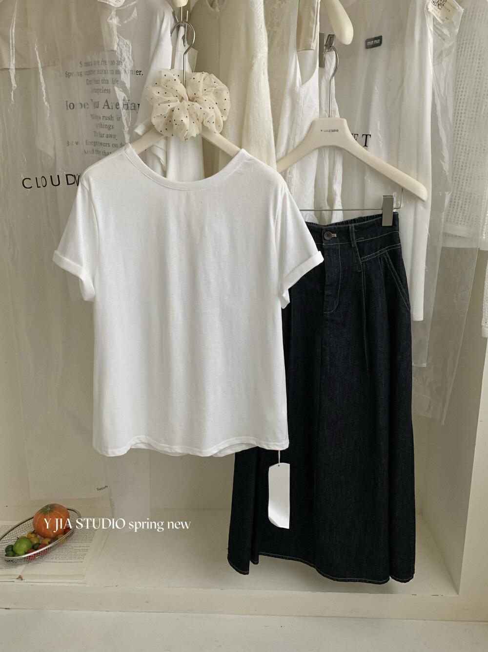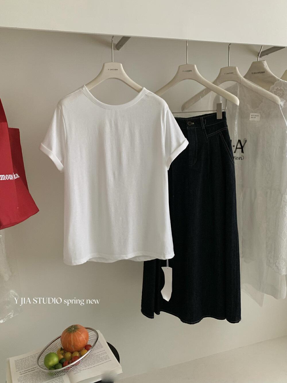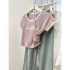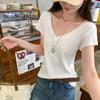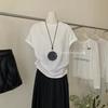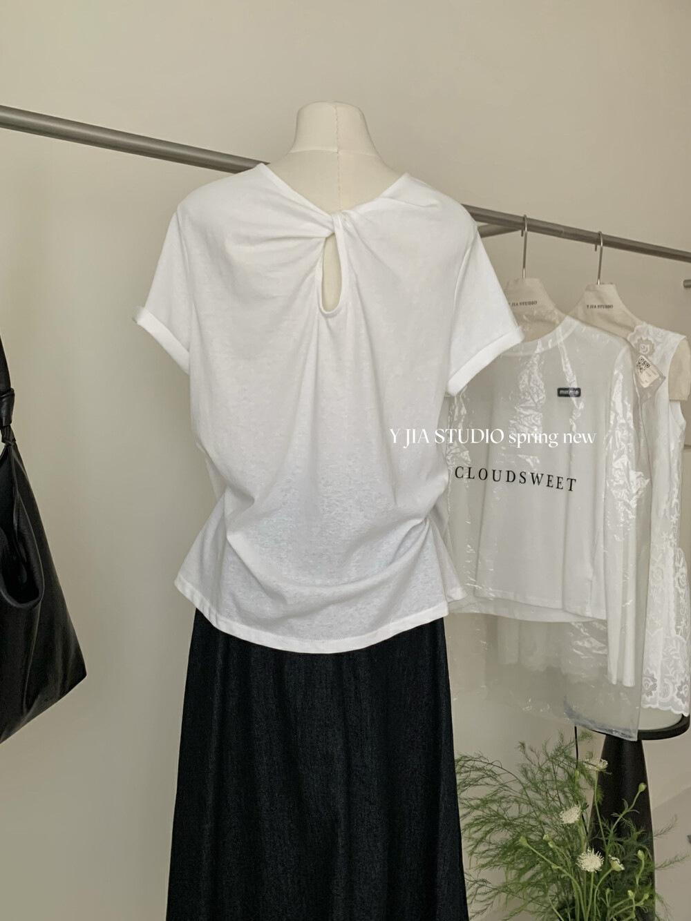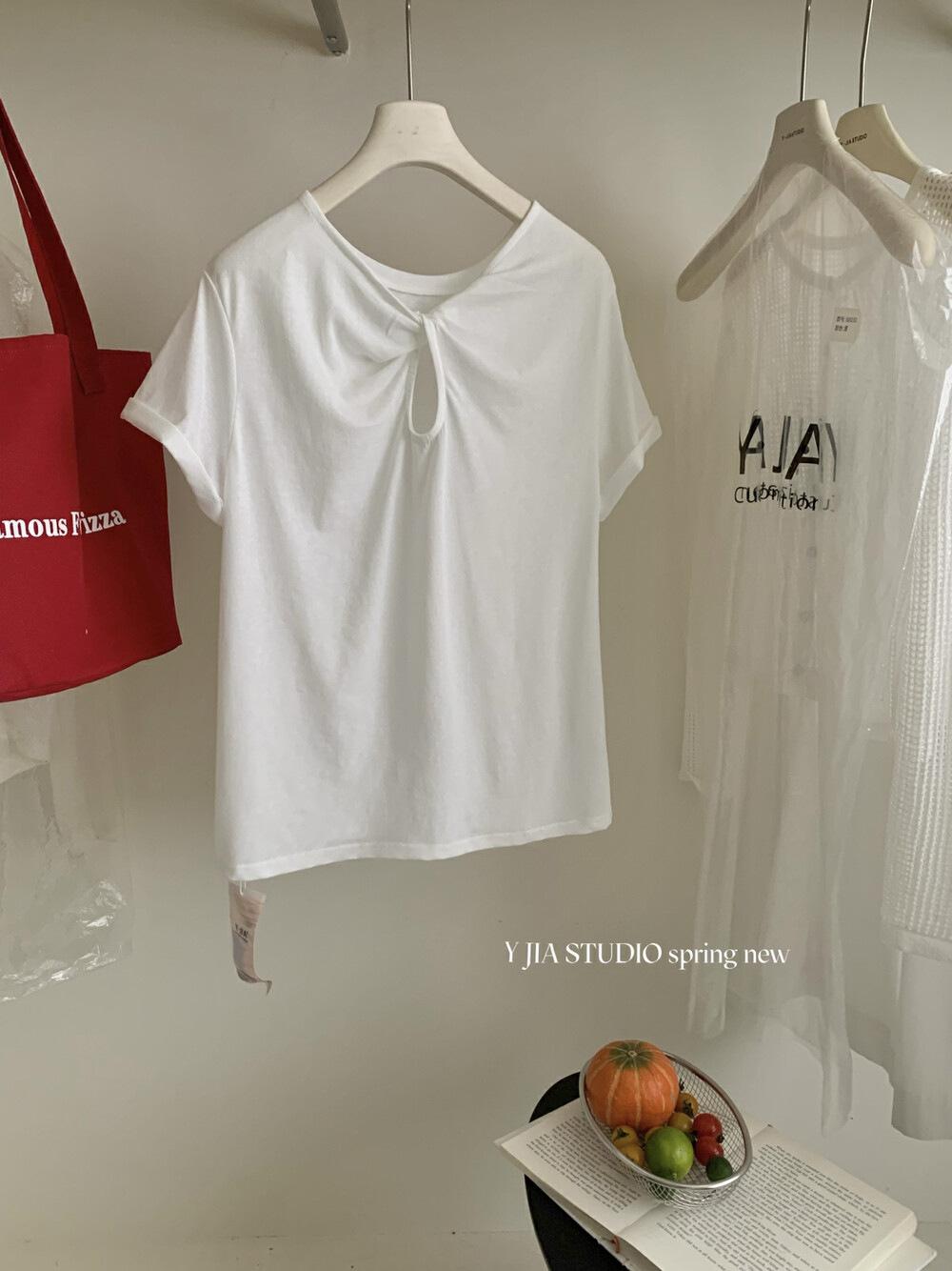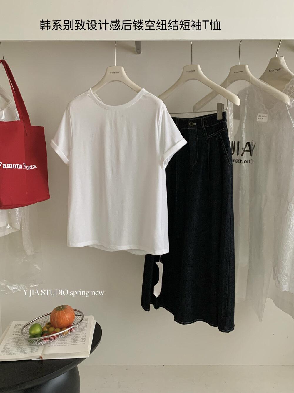 Y.Jia Diseño Chic Estilo Coreano Corte en la Espalda Nudo Camiseta de Manga Corta para Mujer Verano Suelta y Versátil Top