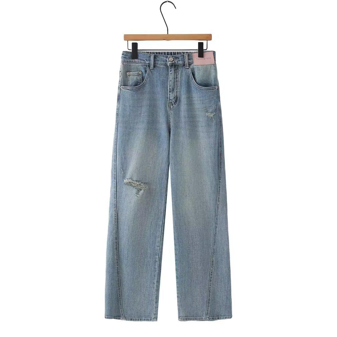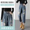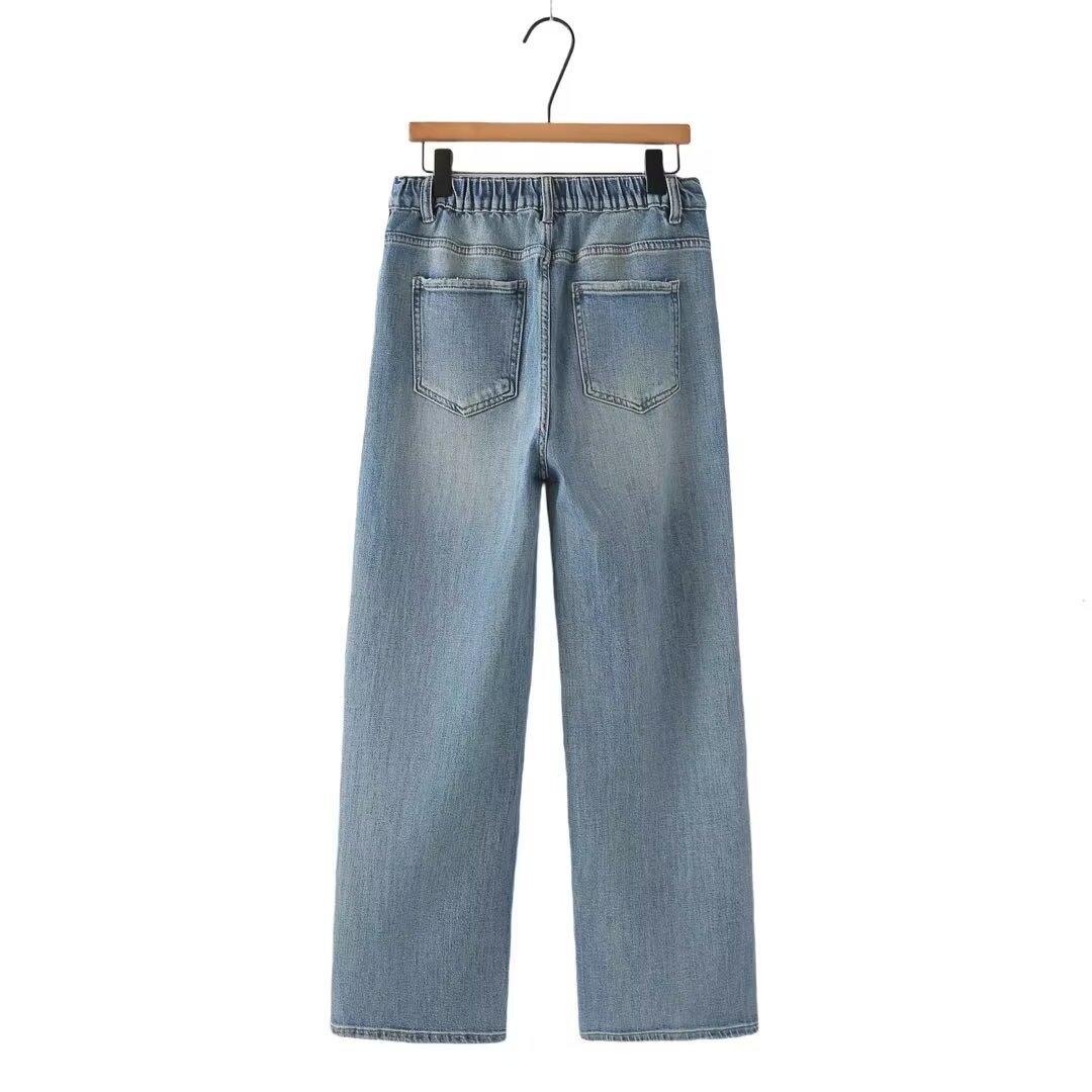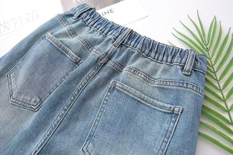 Pantalones vaqueros Niu Da Xia para chica gordita, de primavera y verano, talla grande, cintura alta, elásticos, sueltos, ajustados, rotos, con pierna recta, 8091