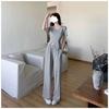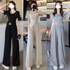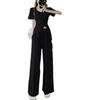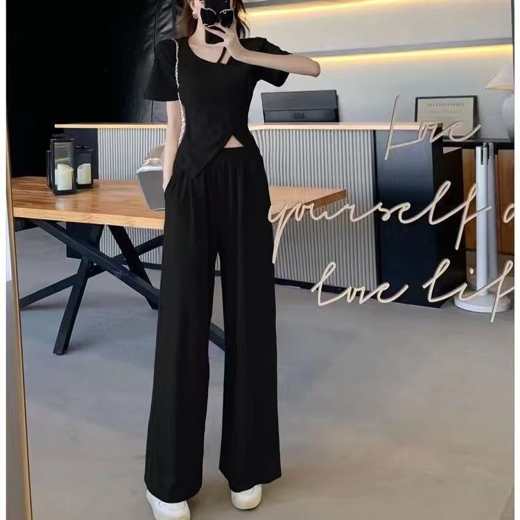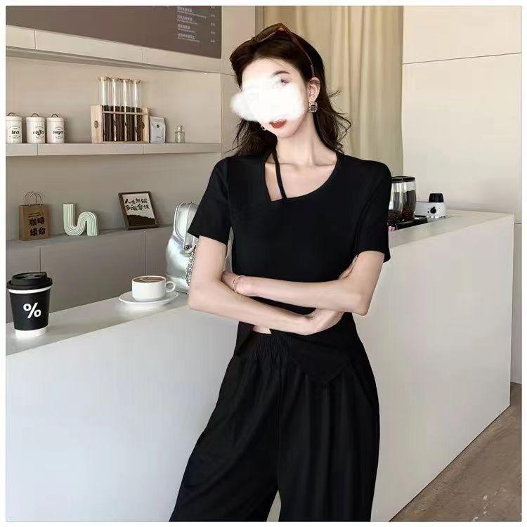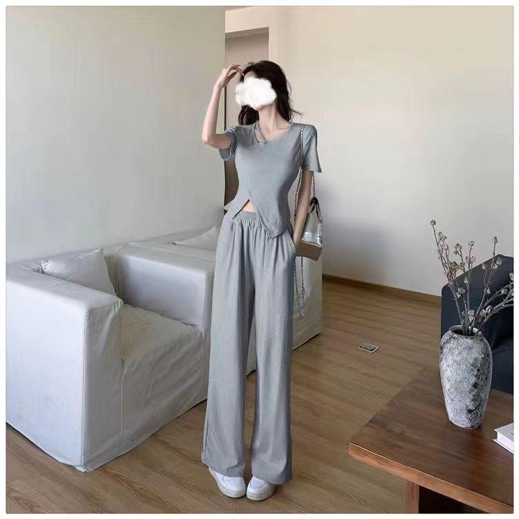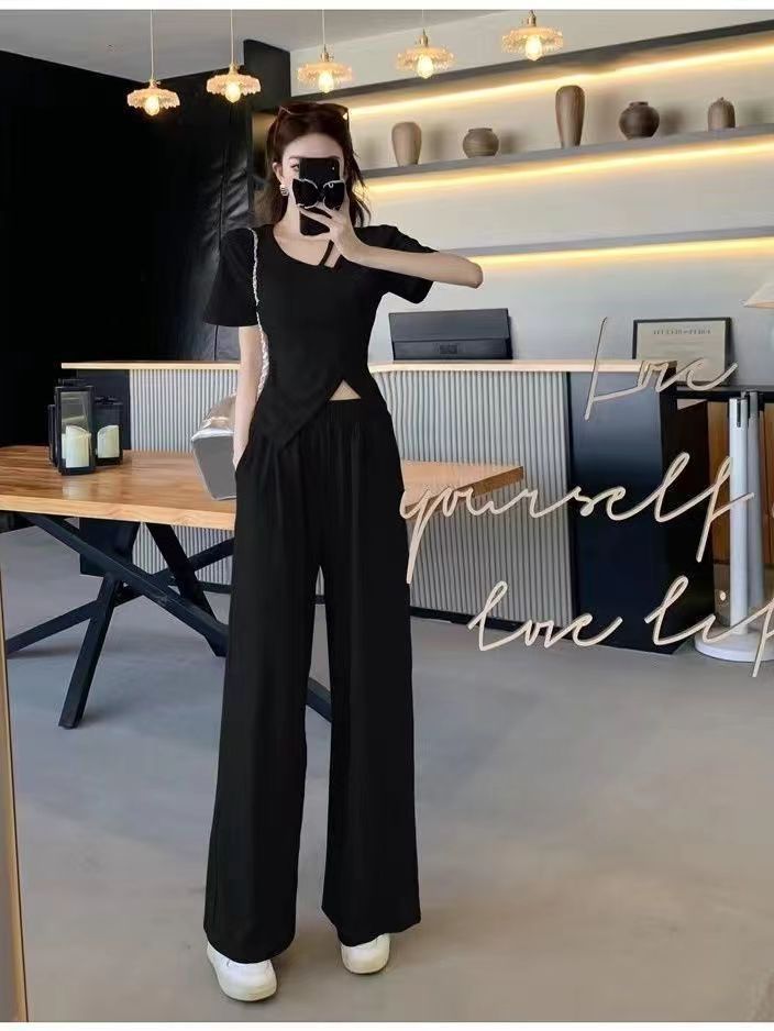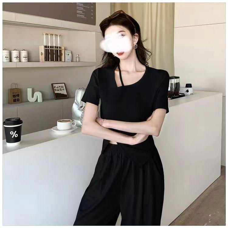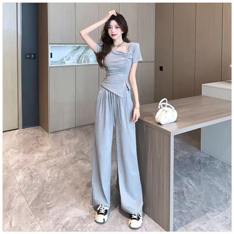 Moda de Verano Nuevo traje Top Nicho Irregular Slim de Alta Gama Suelto Combinable Pantalones de Pierna Ancha Conjunto de Dos Piezas